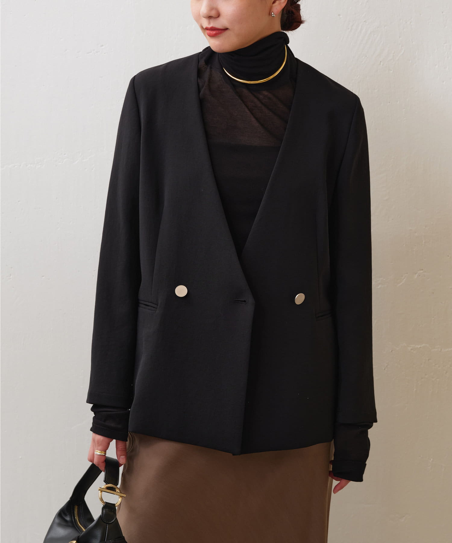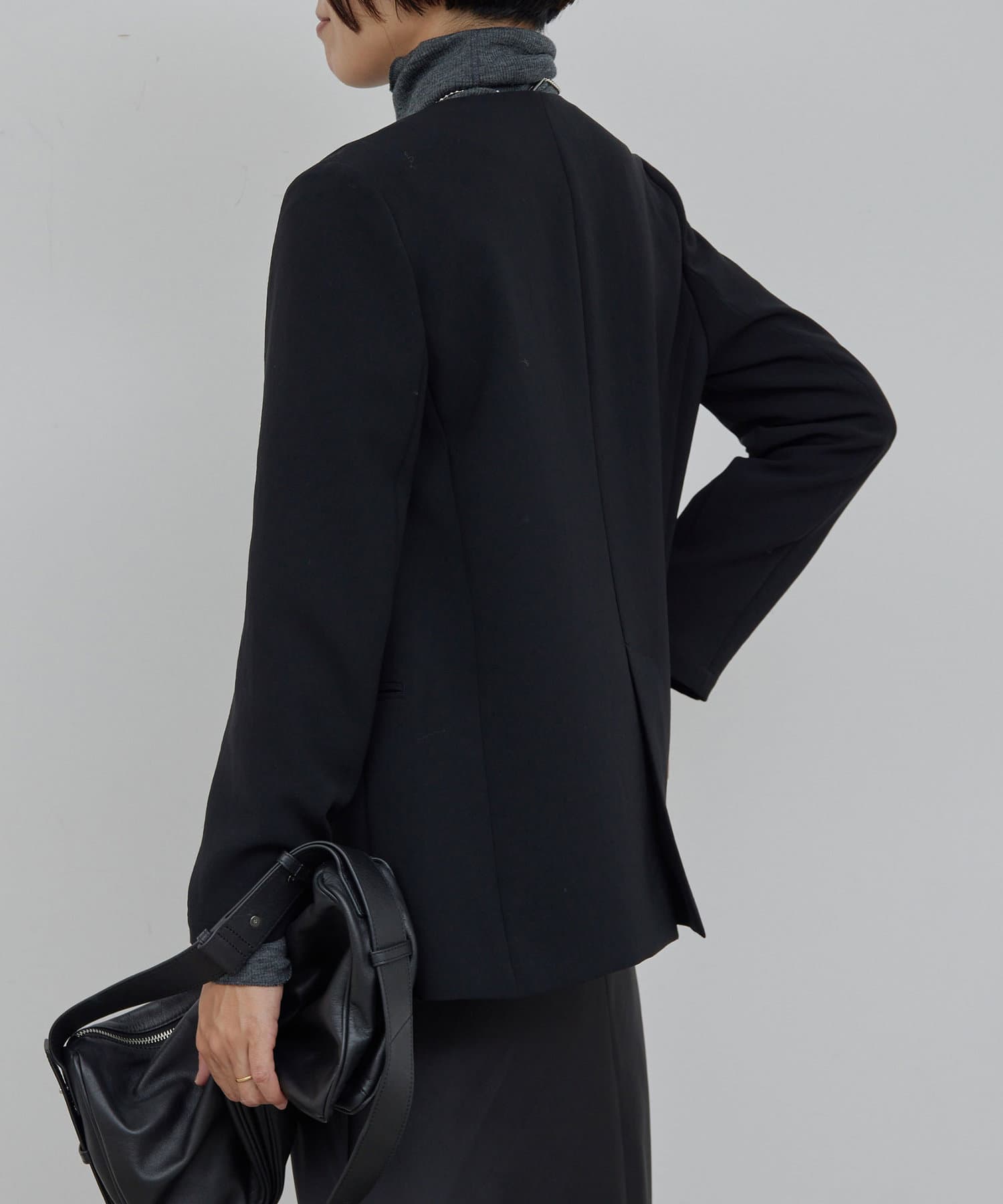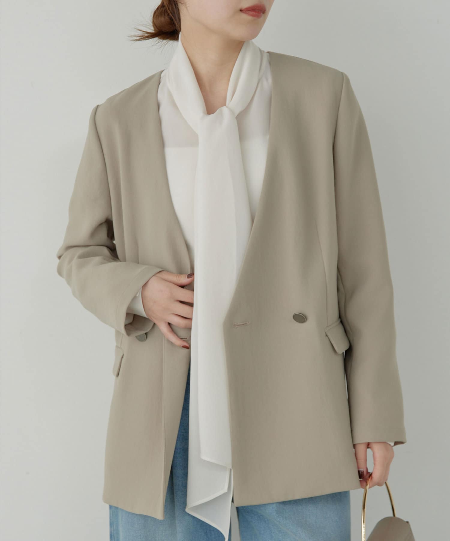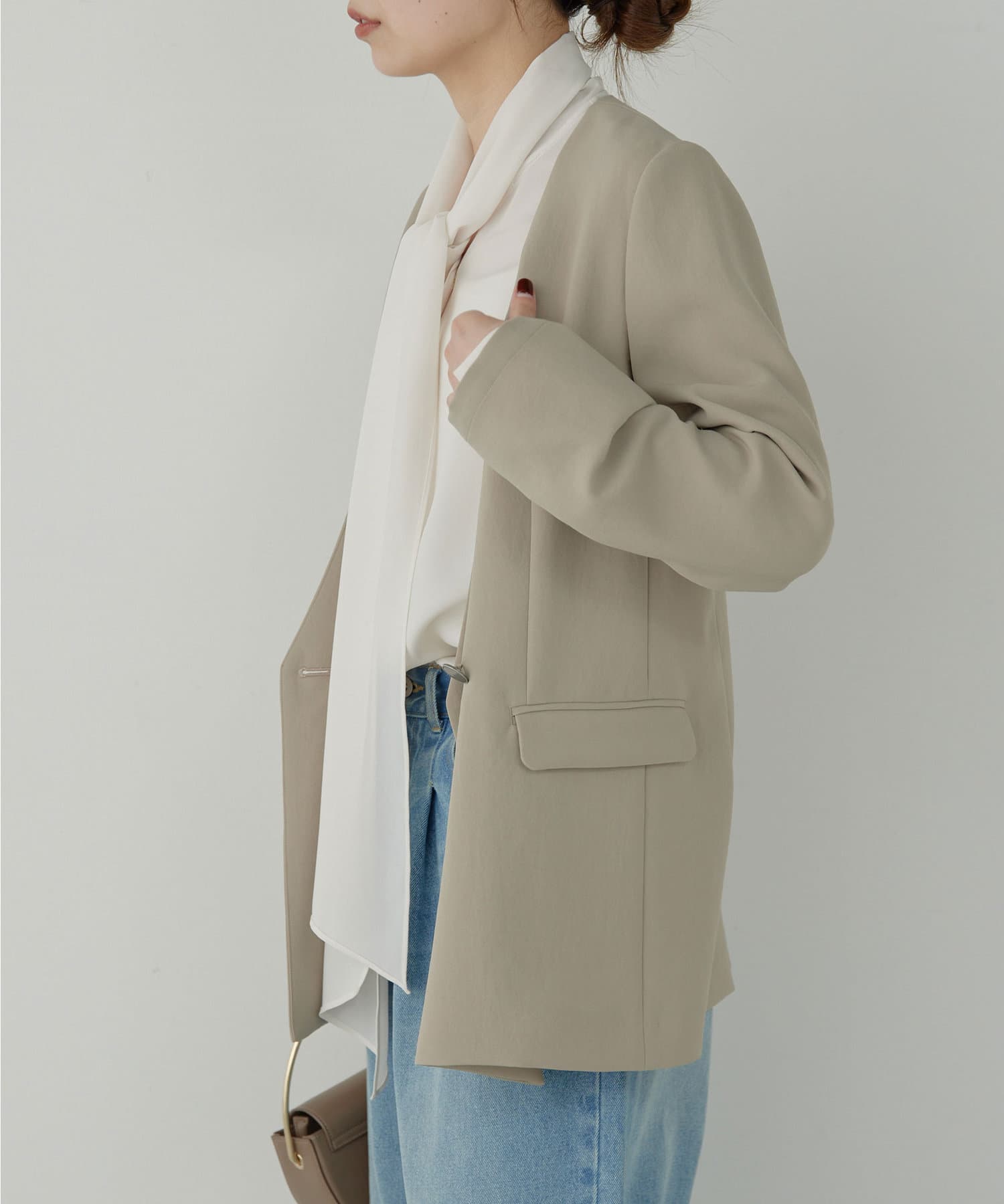 ●カーディガン感覚でさっと羽織れるノーカラージャケット。