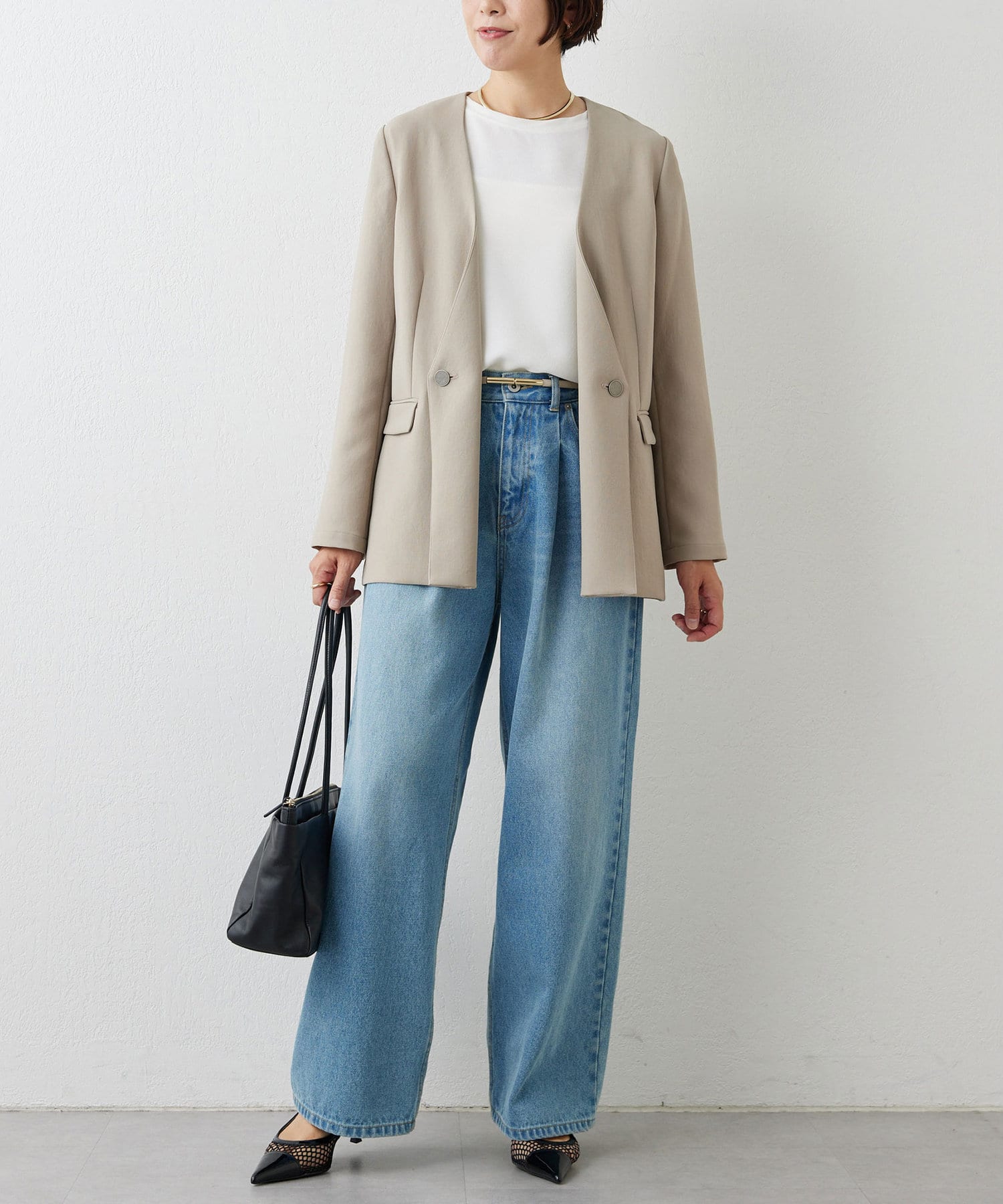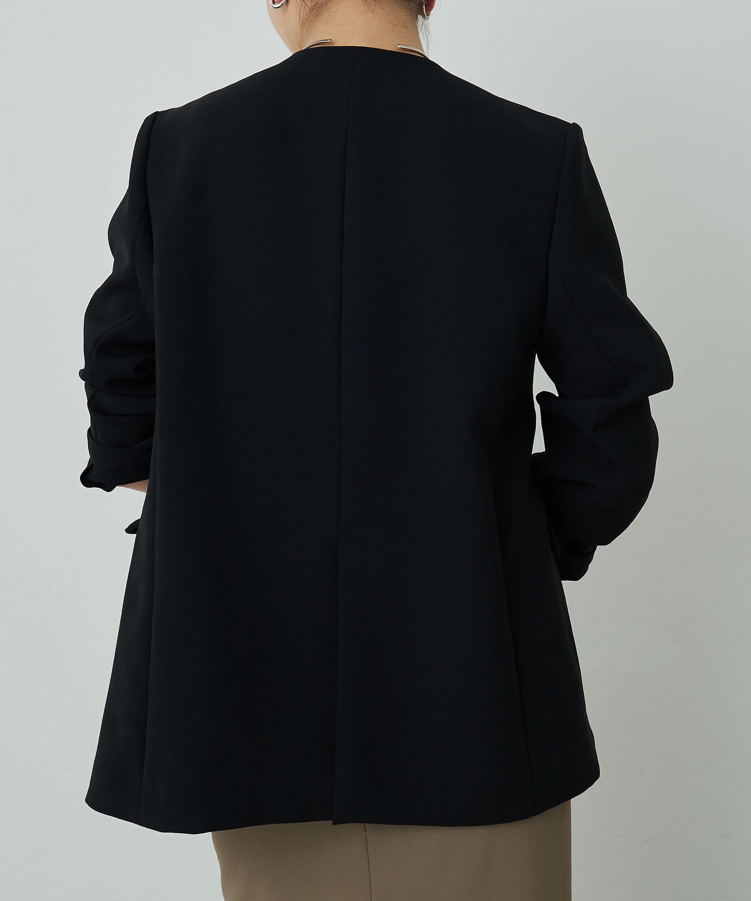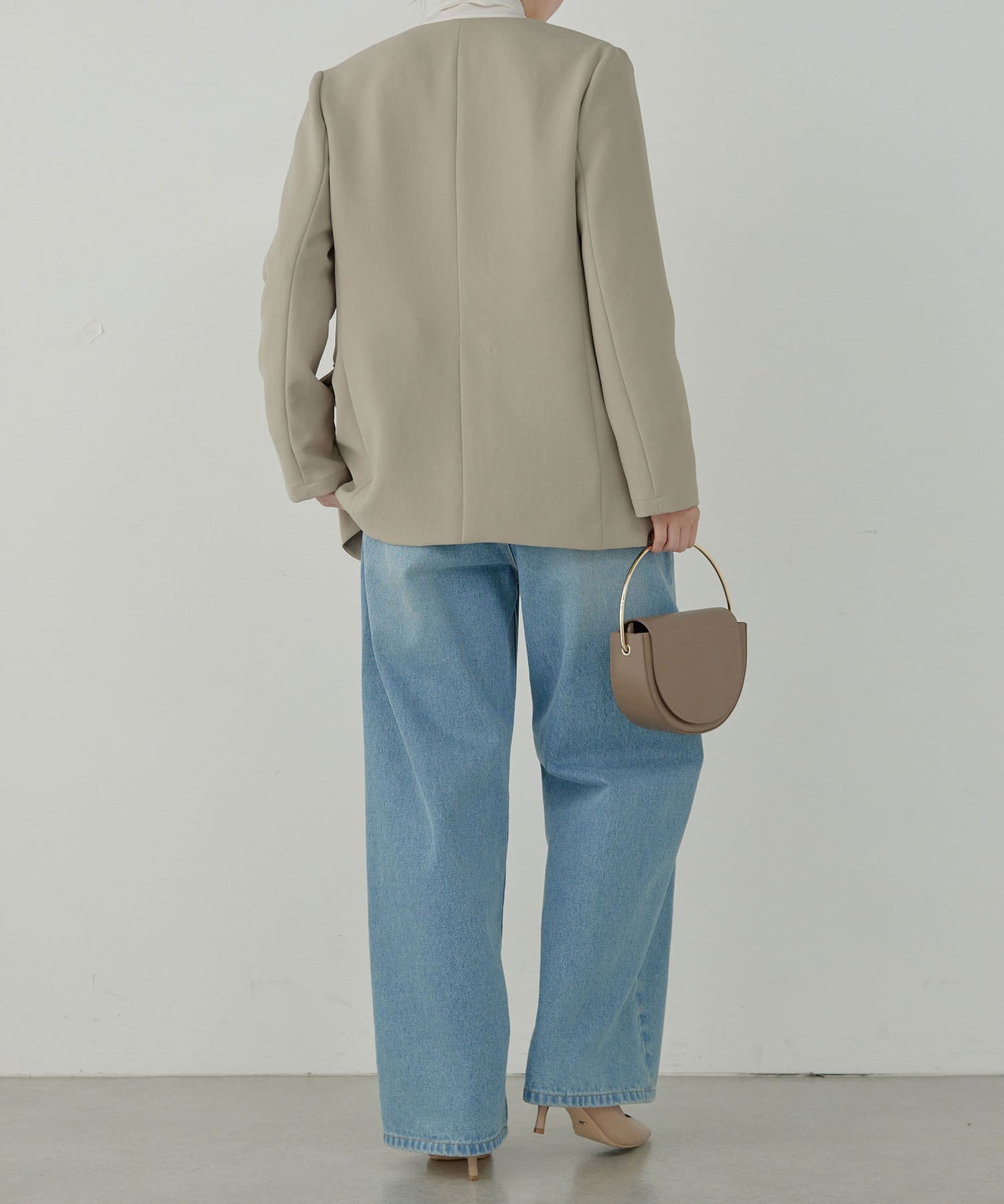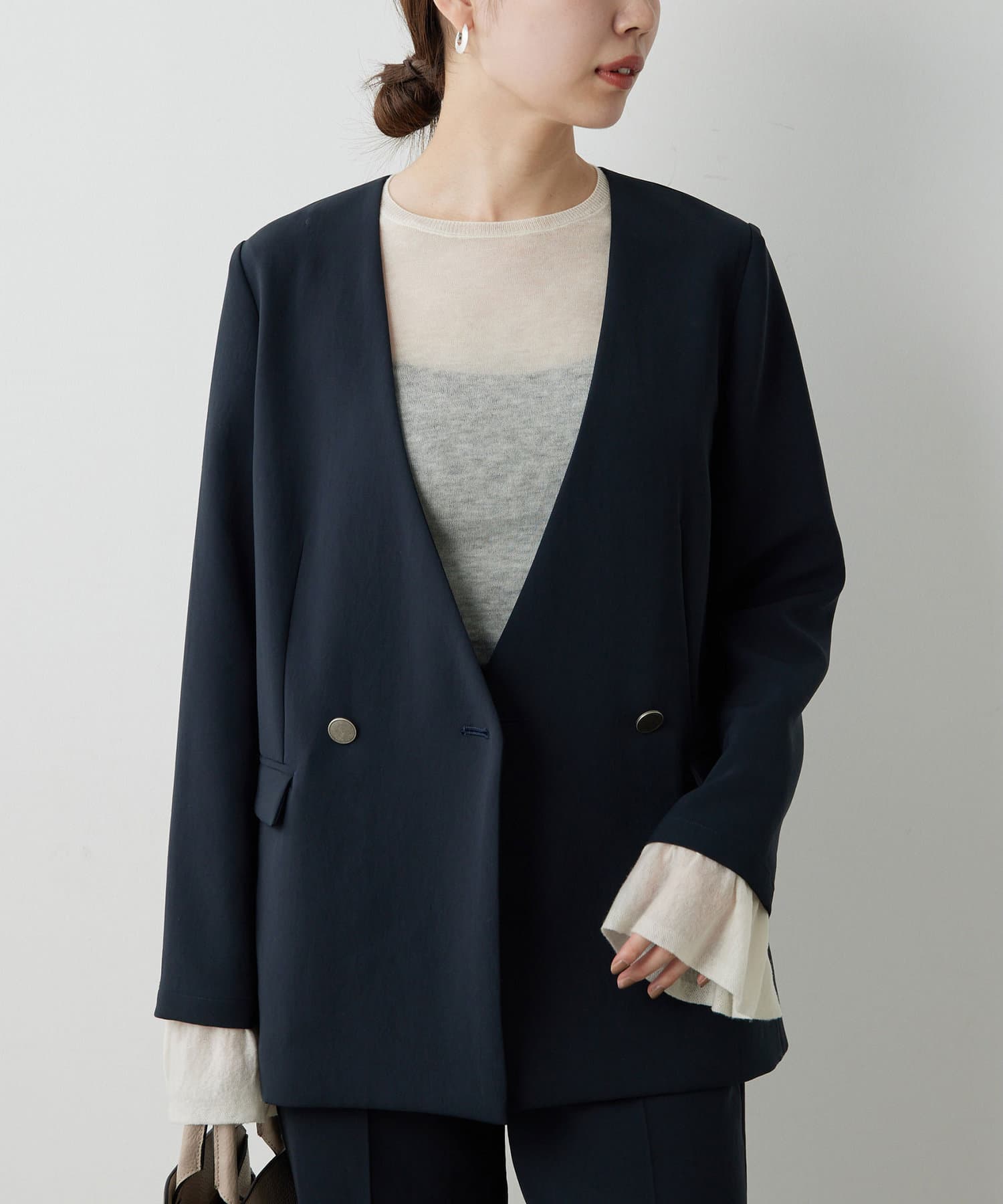 ●カーディガン感覚でさっと羽織れるノーカラージャケット。
