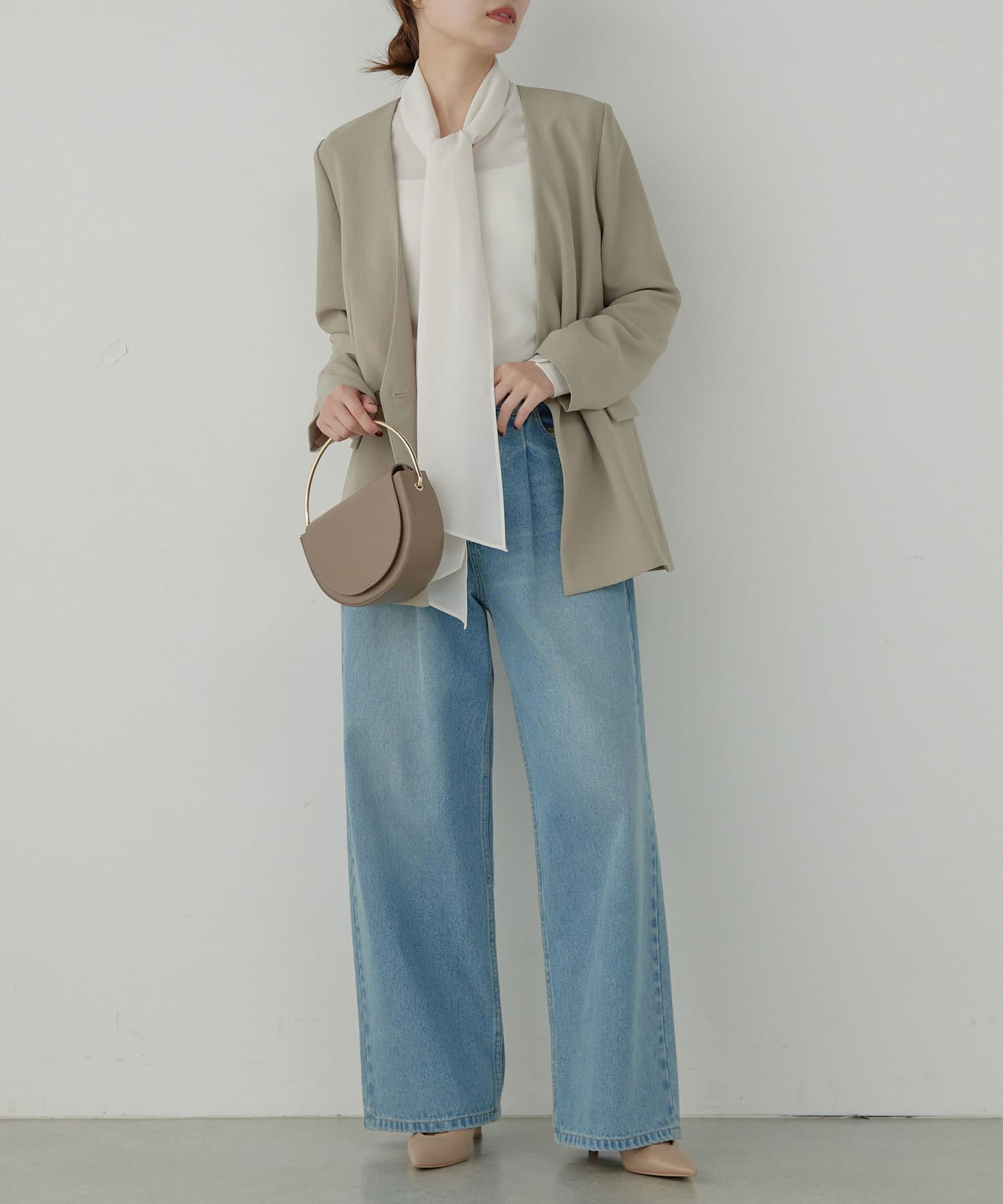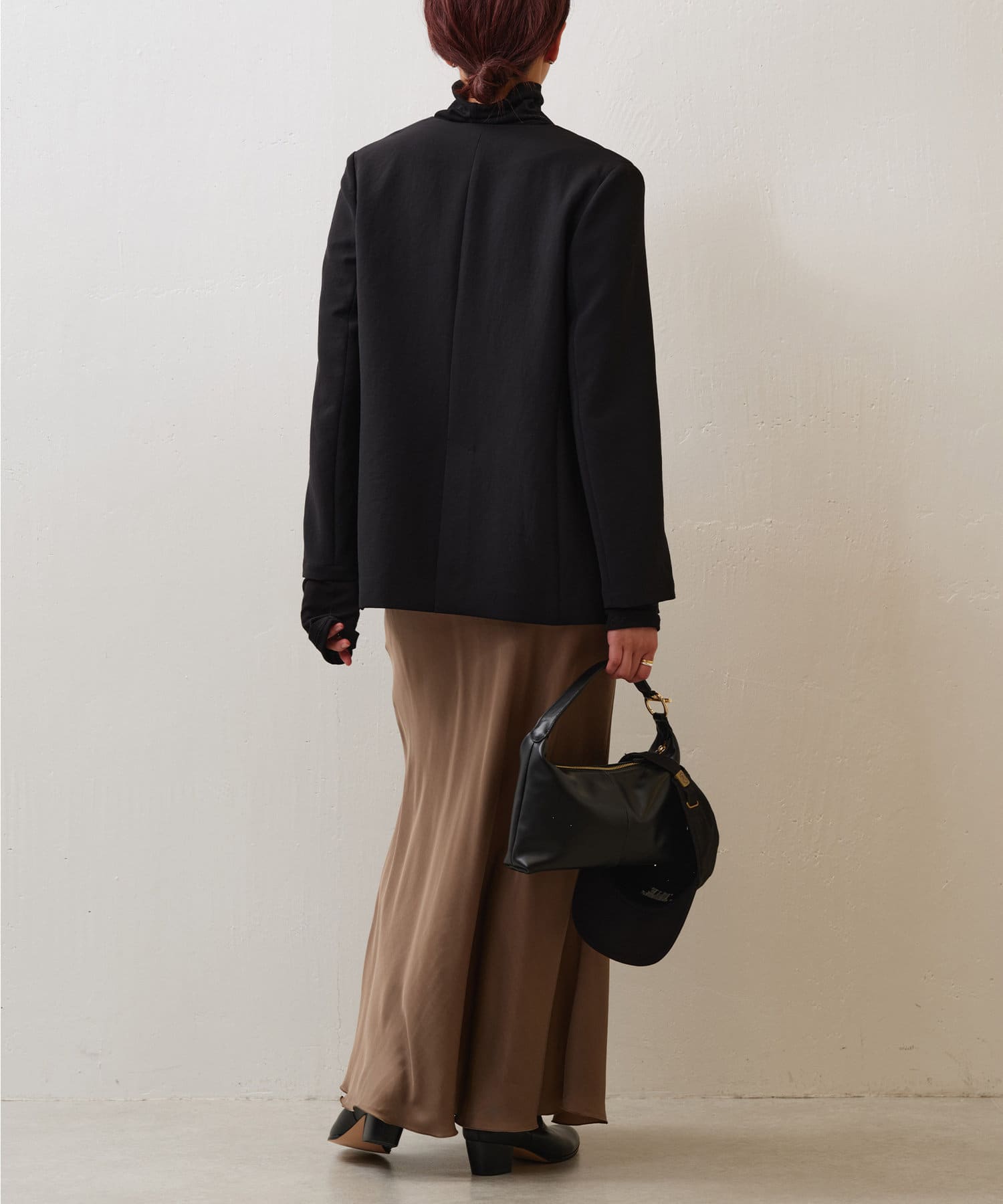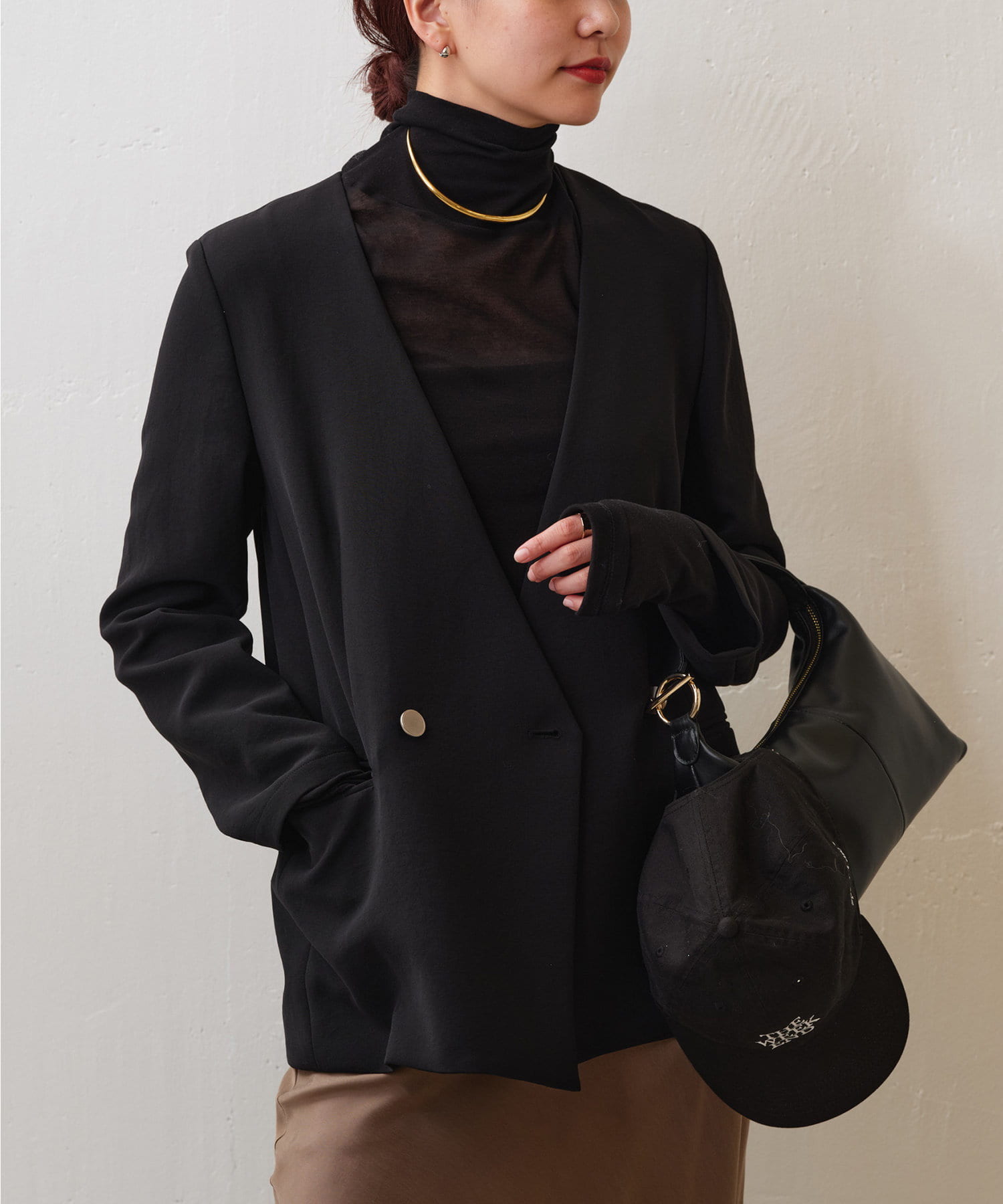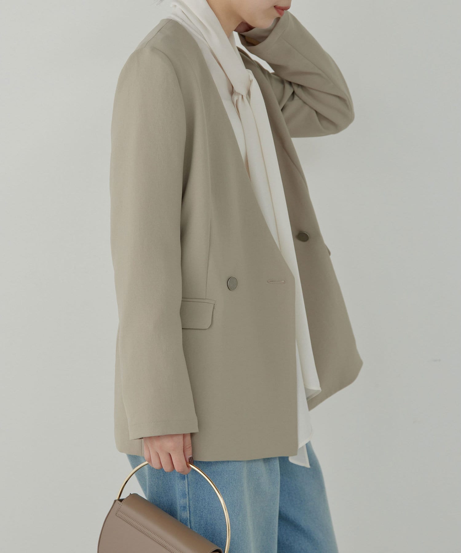 ●カーディガン感覚でさっと羽織れるノーカラージャケット。