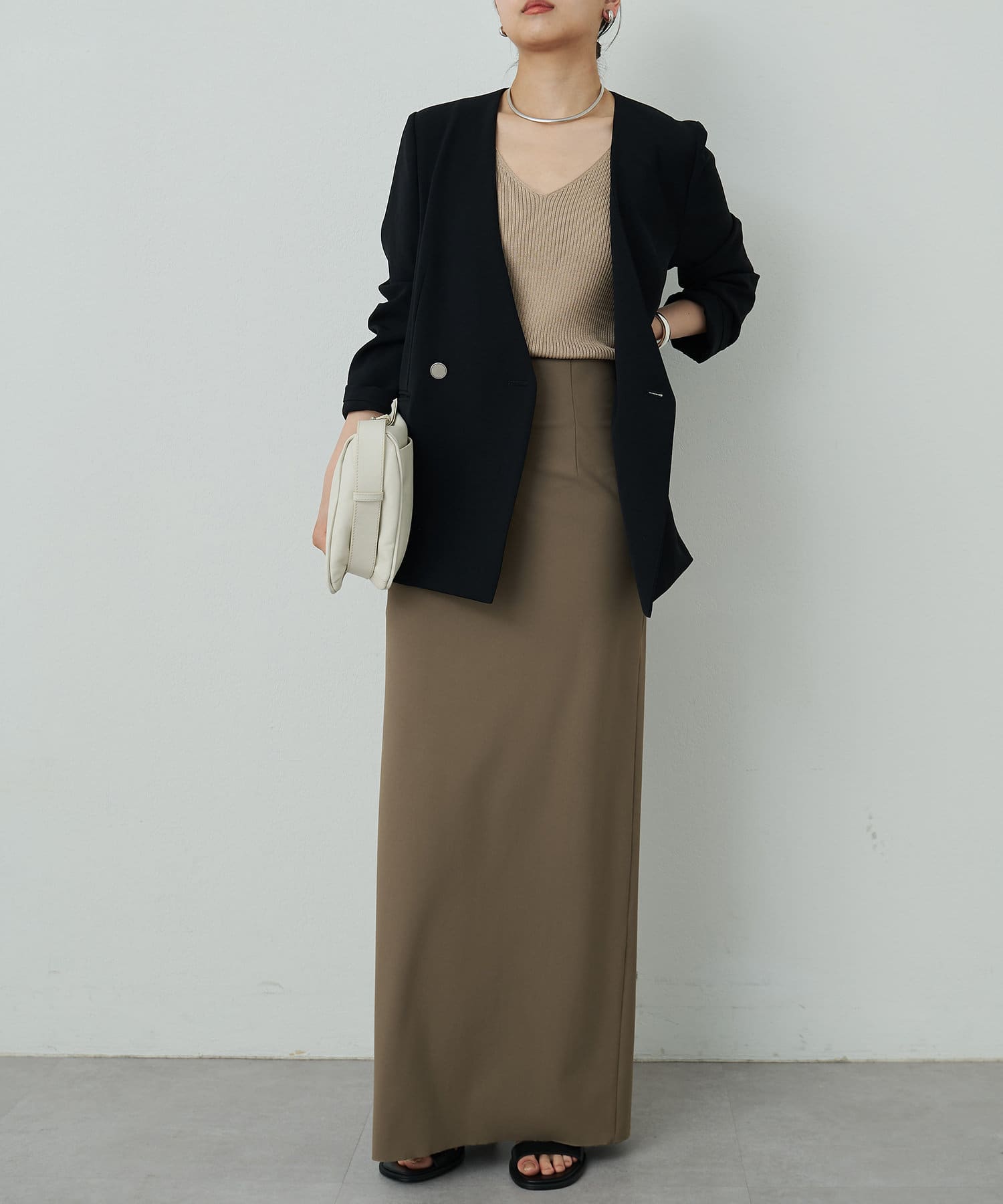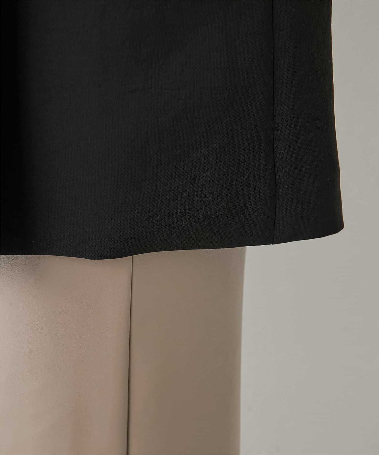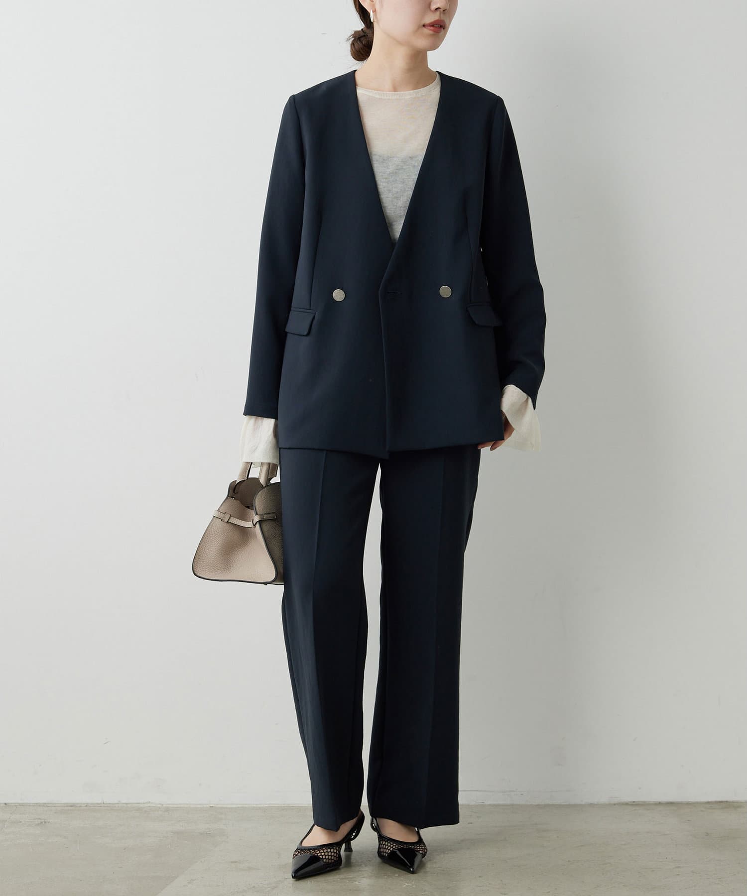 同じシリーズのパンツも購入したのでスーツとしても、ワンピースなどの上に羽織りジャケットとしても使いたいと思います。ノーカラーなのでどんなお洋服にも合わせやすいし生地も厚すぎず薄すぎず着回ししやすいです。