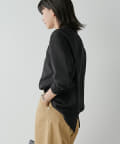 ●ジョーゼット特有の上品なシボ感と、カジュアルなロンTデザインがマッチしたブラウス。