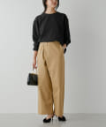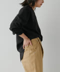 ●肩の落ちたややゆったりめなサイズ感が大人カジュアルスタイルにぴったりなトップス。