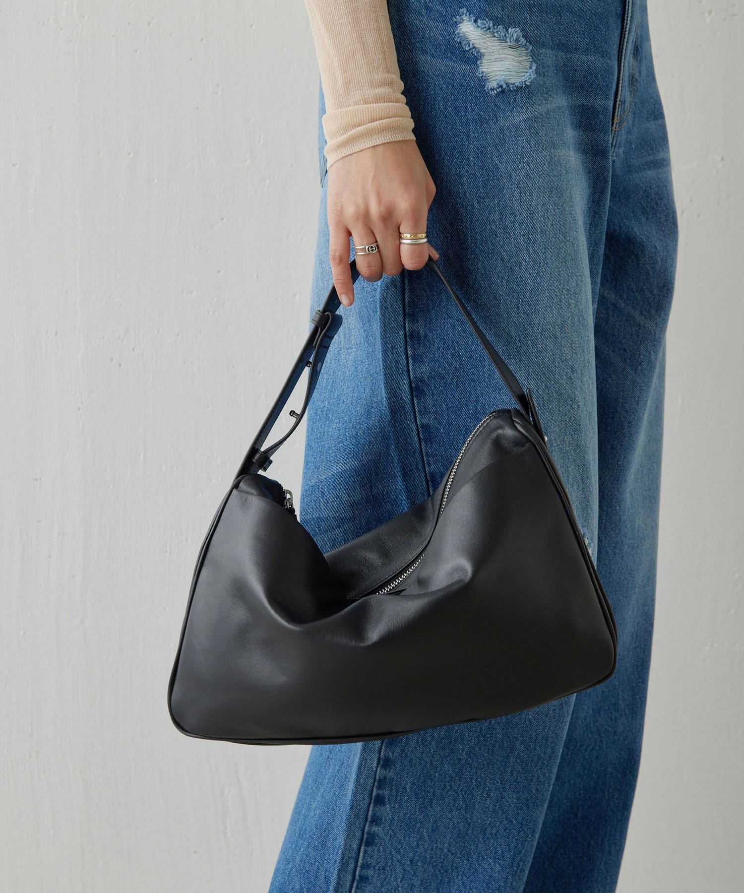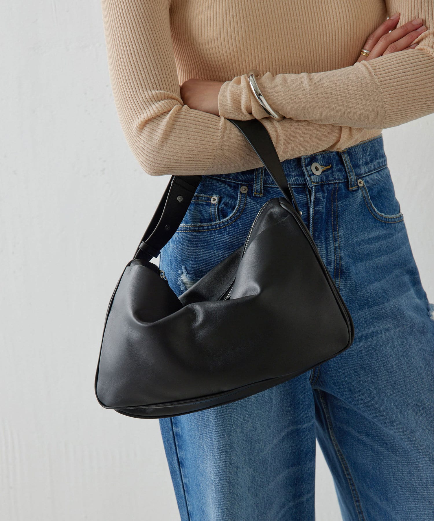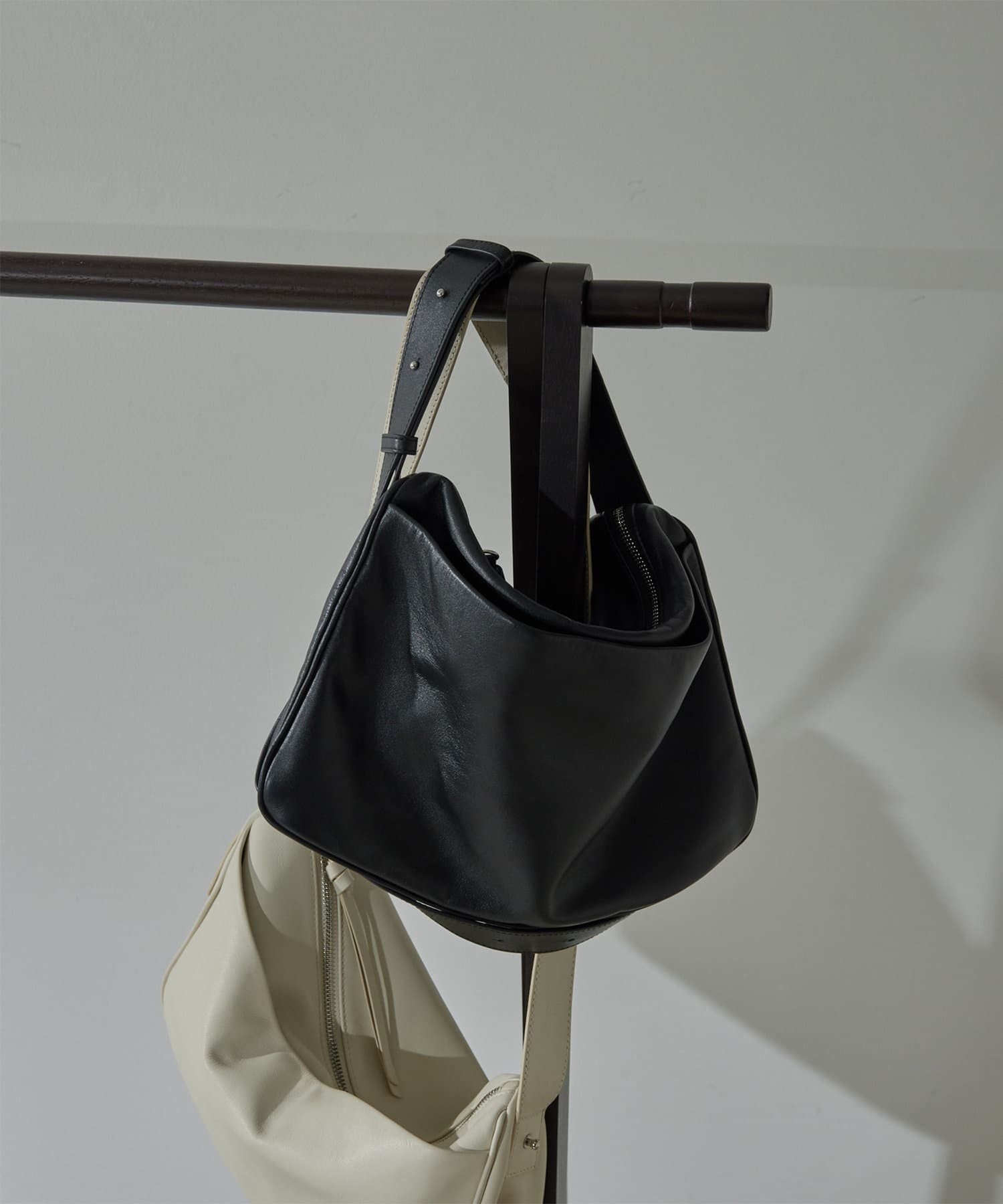 ●しなやかなフォルムが印象的なクロスボディバッグ。