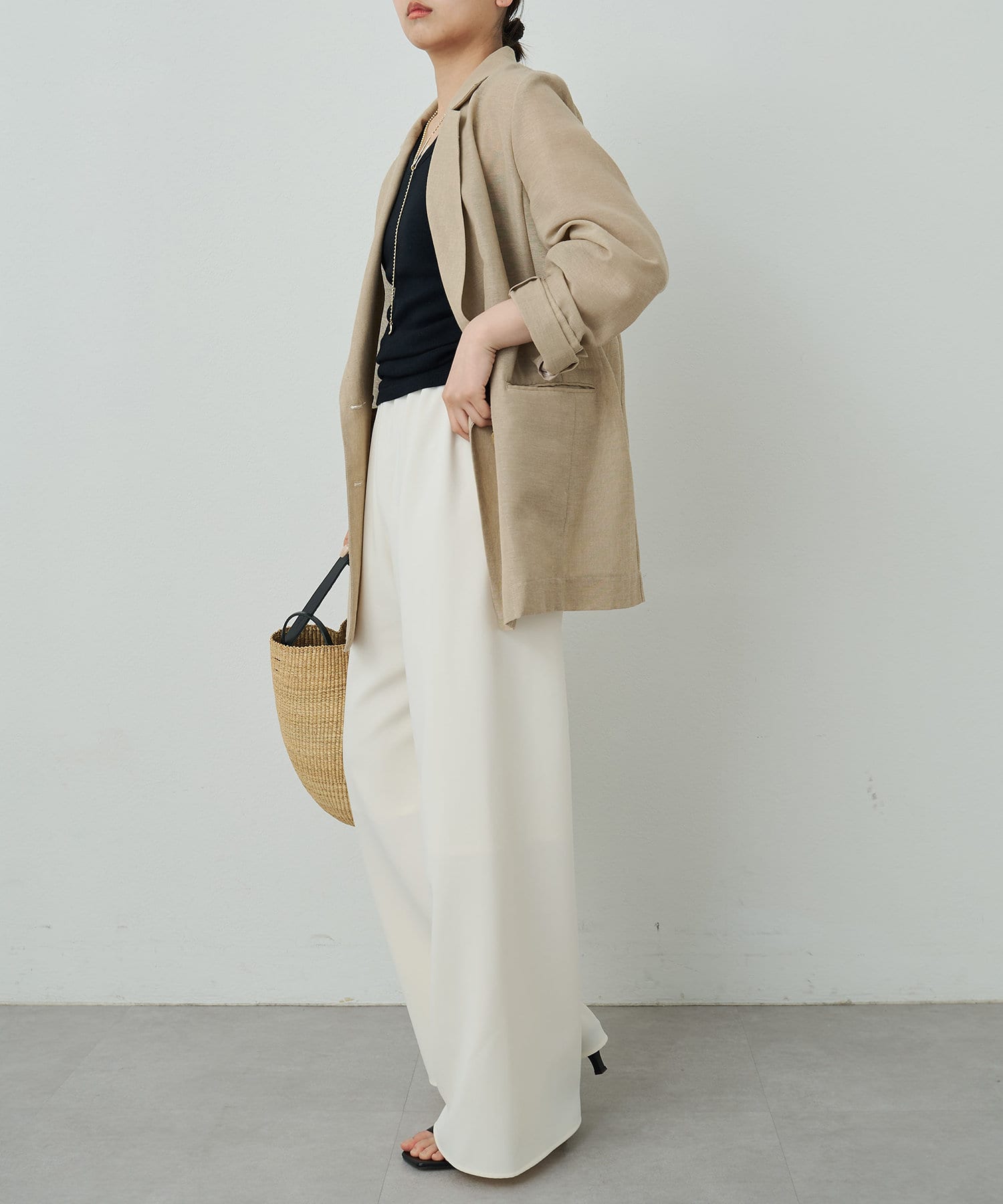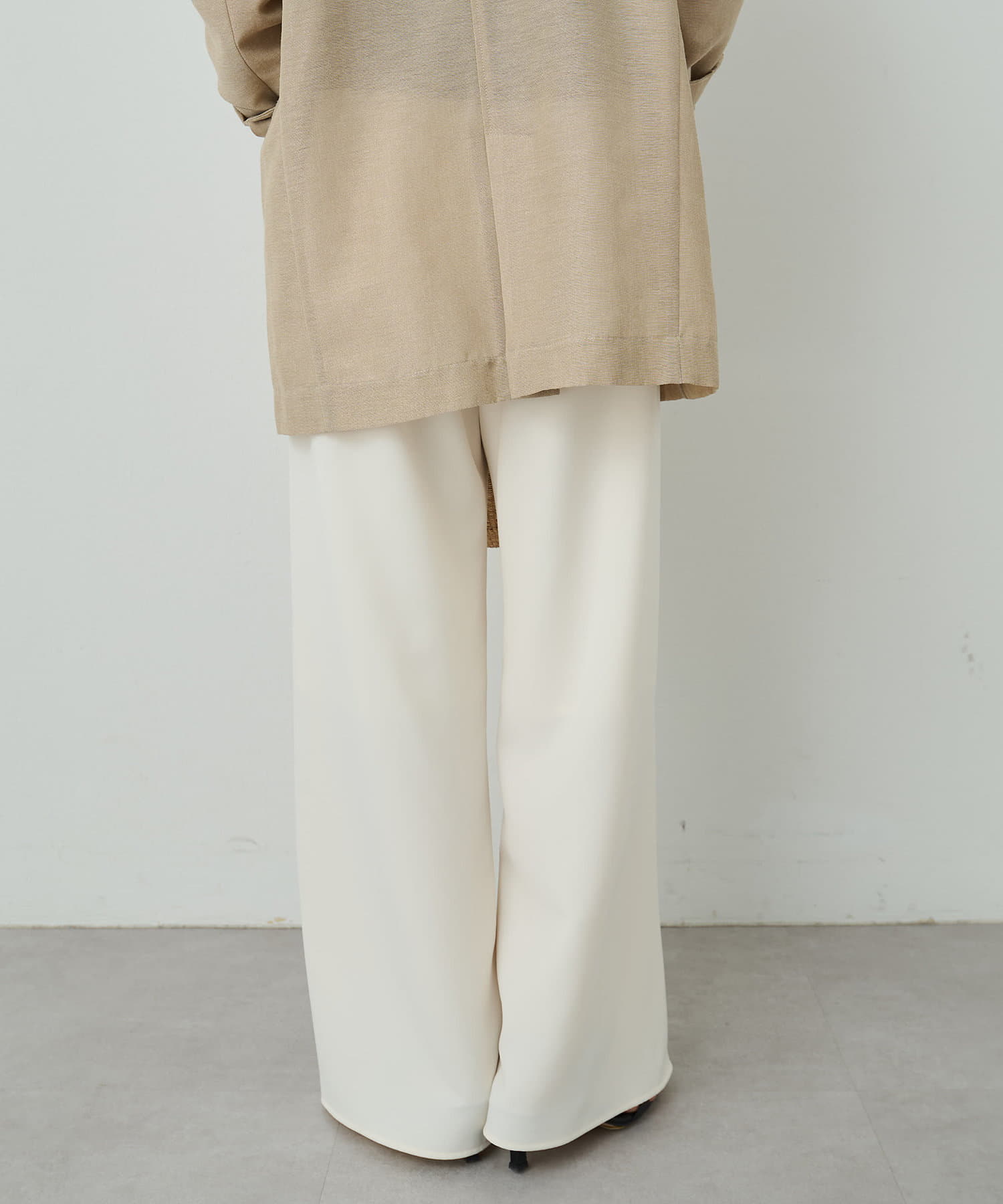 ●体型カバーと美脚効果の叶う落ち感のあるワイドシルエット。