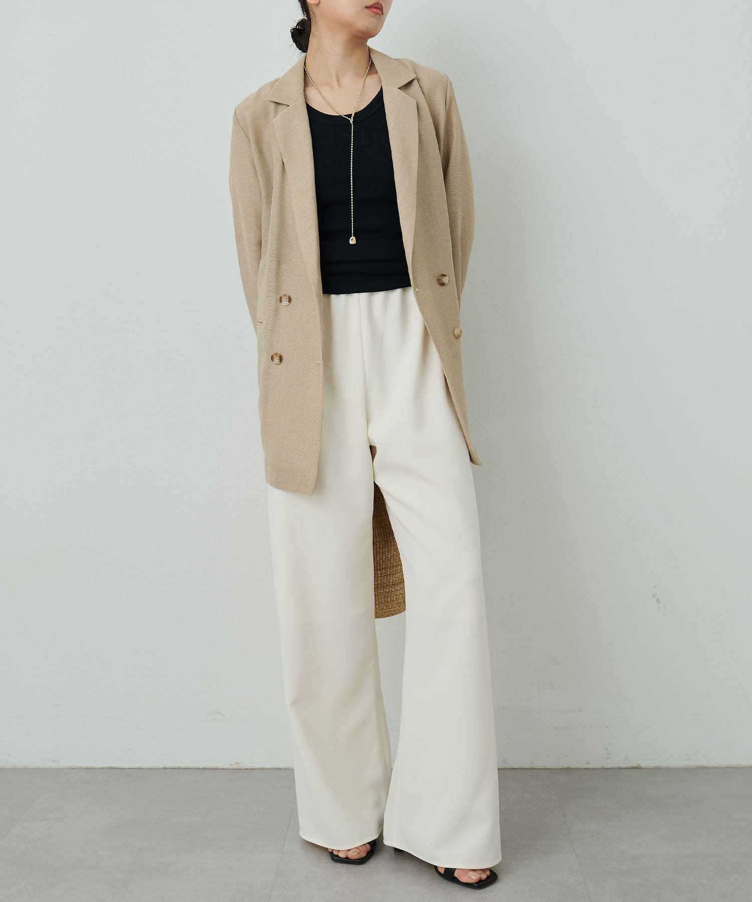 ベルトループがなく柔らかい生地なのに、身体のラインを拾わず他のストレートパンツより細く見えます♡
