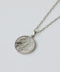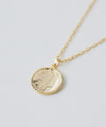 ●印象的な顔周りを演出するコインモチーフネックレス。