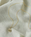 洗練された顔周りを演出するロングコインネックレス