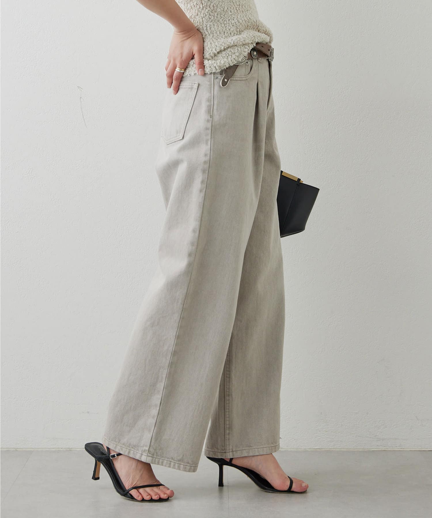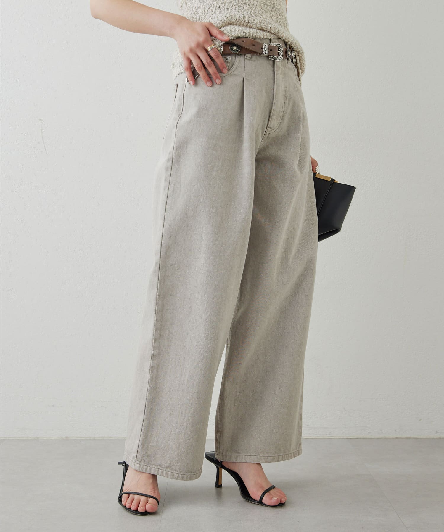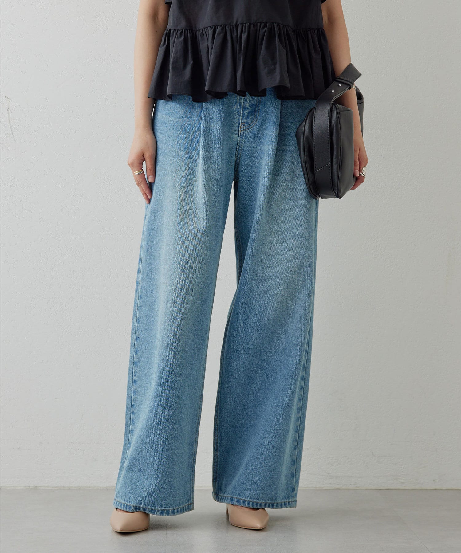 ●大人の装いにマッチするトレンドライクなワイドデニムパンツ。