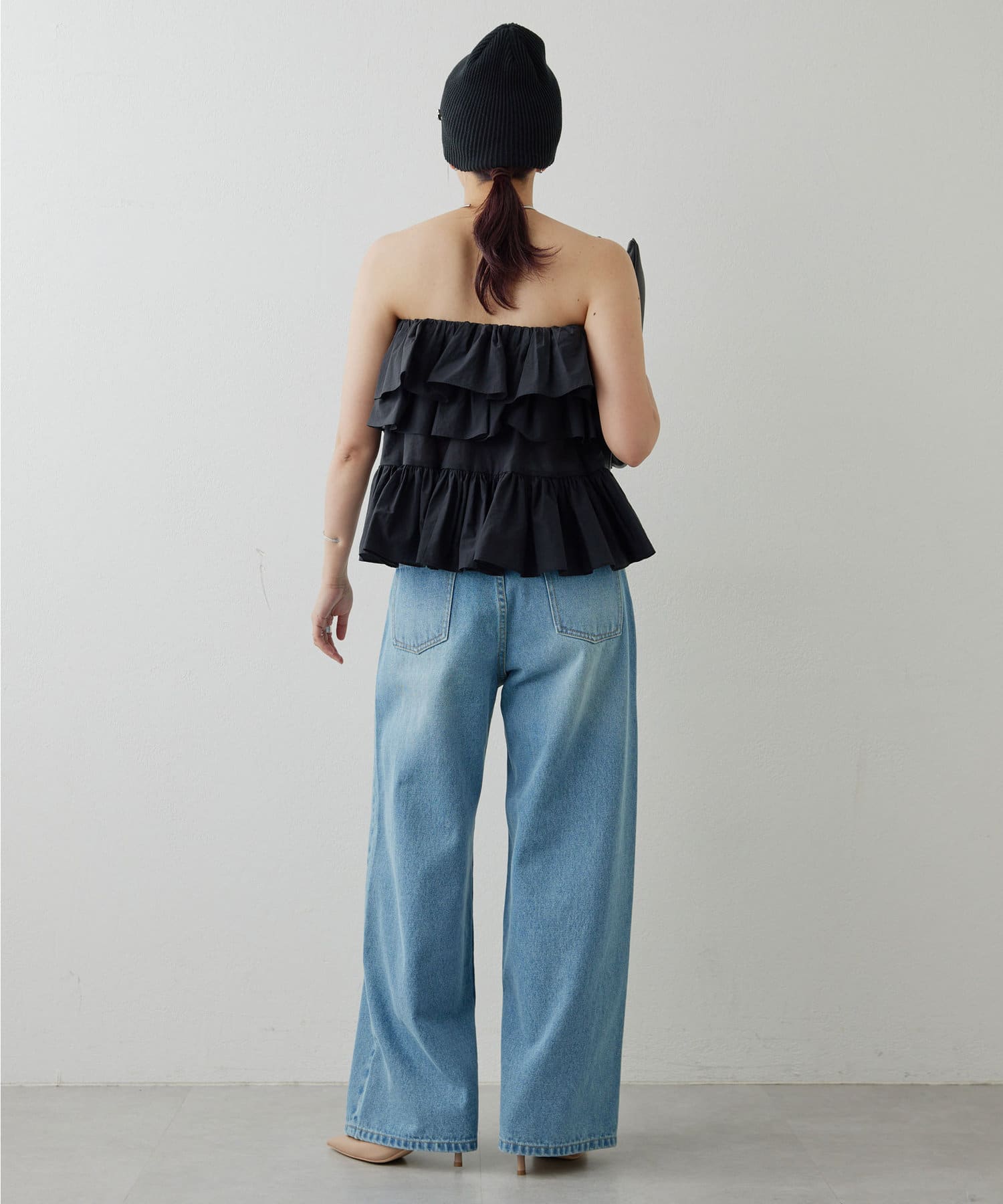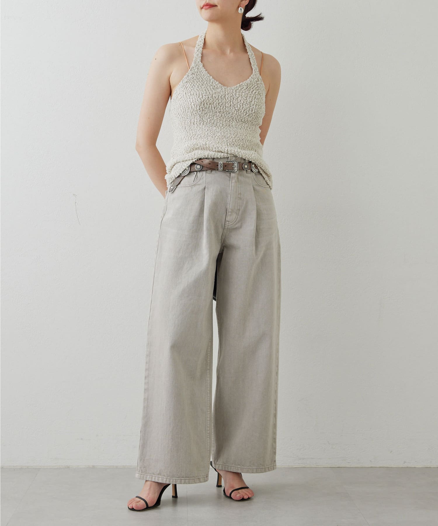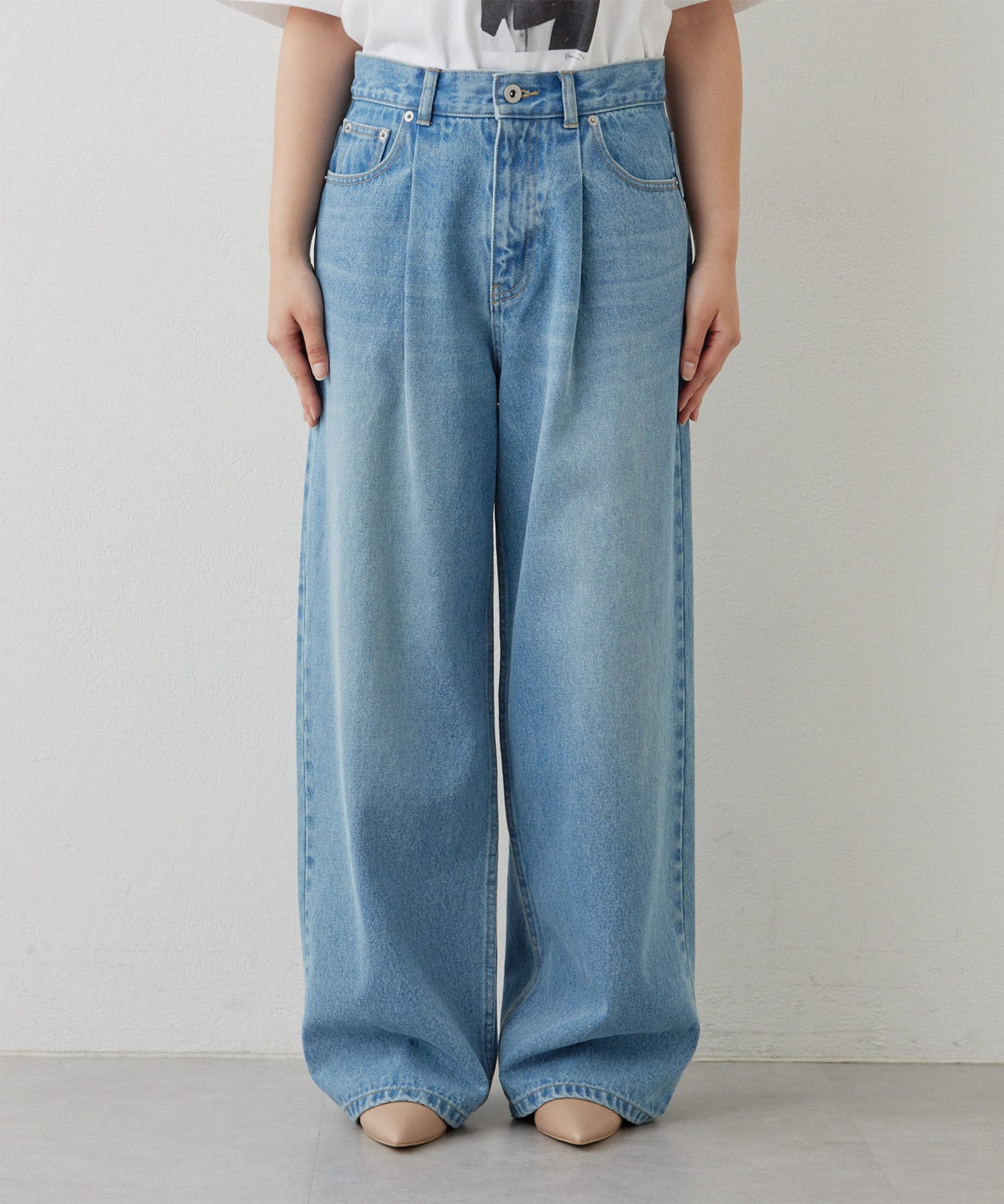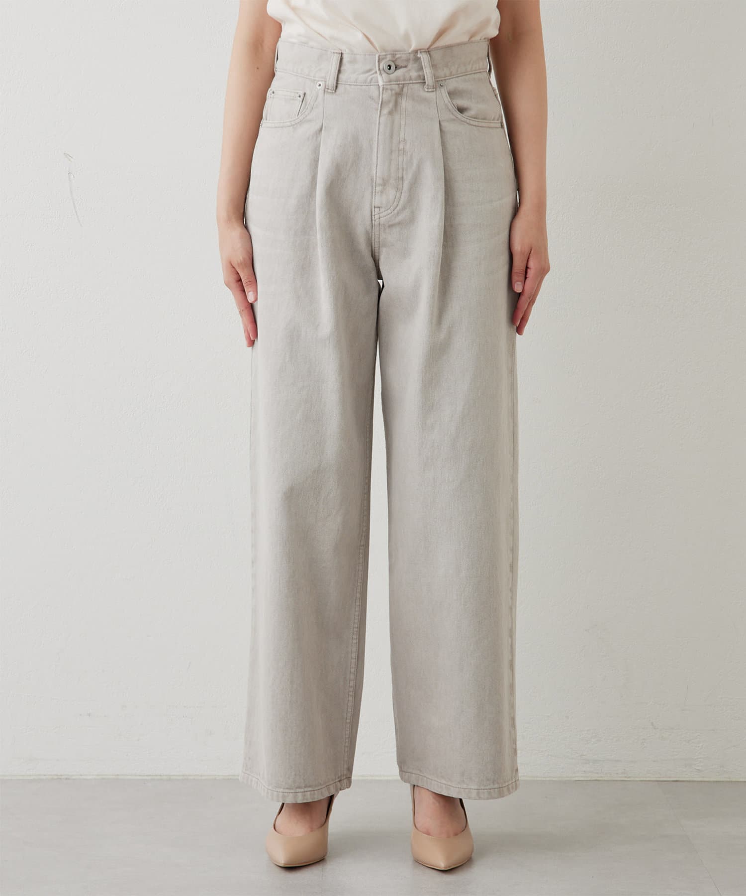 ●大人の装いにマッチするトレンドライクなワイドデニムパンツ。