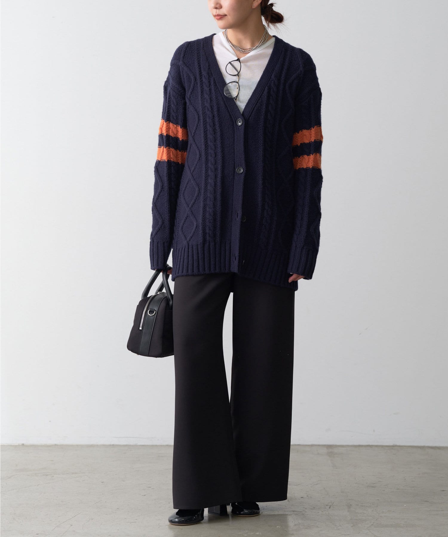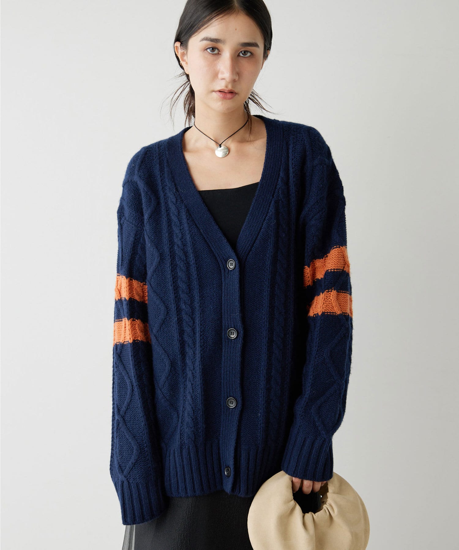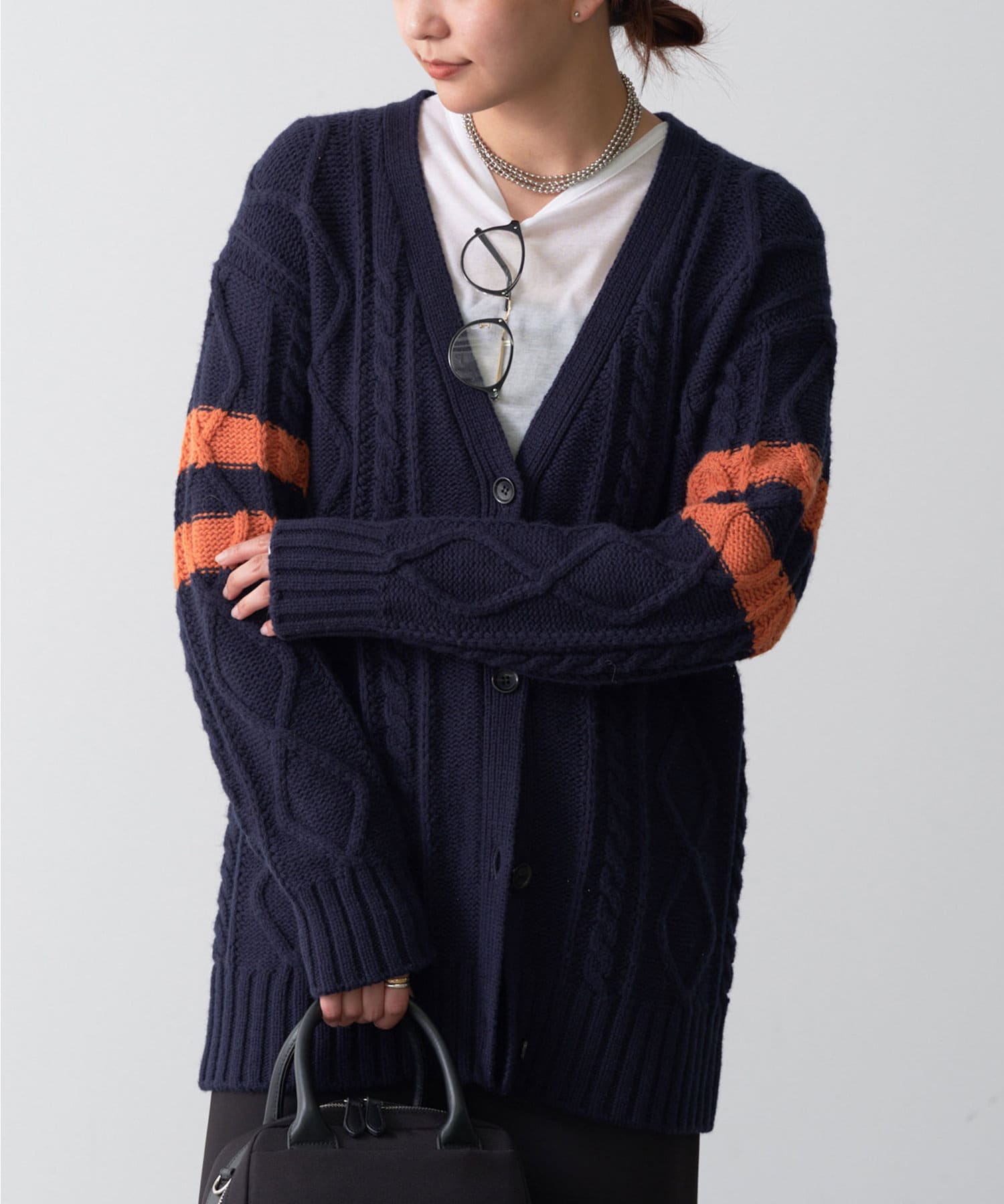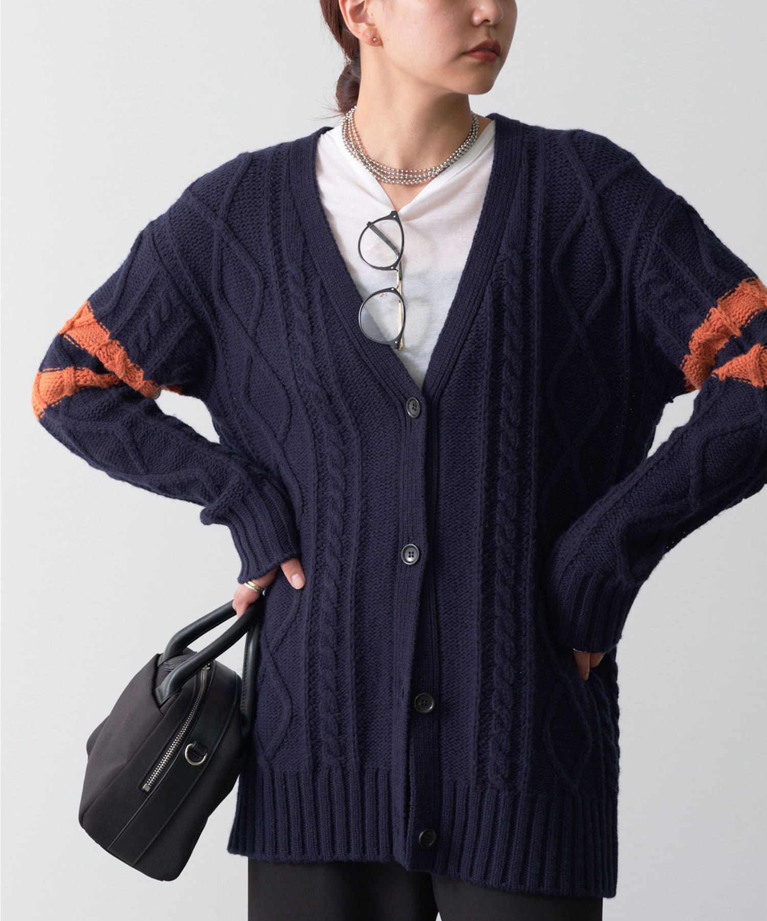 ●ニットの編地が引き立つ大人のケーブルカーディガン。