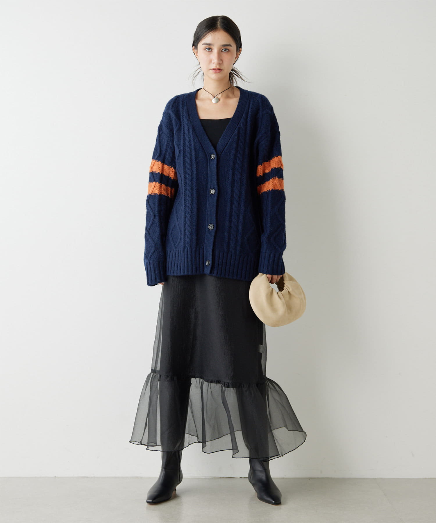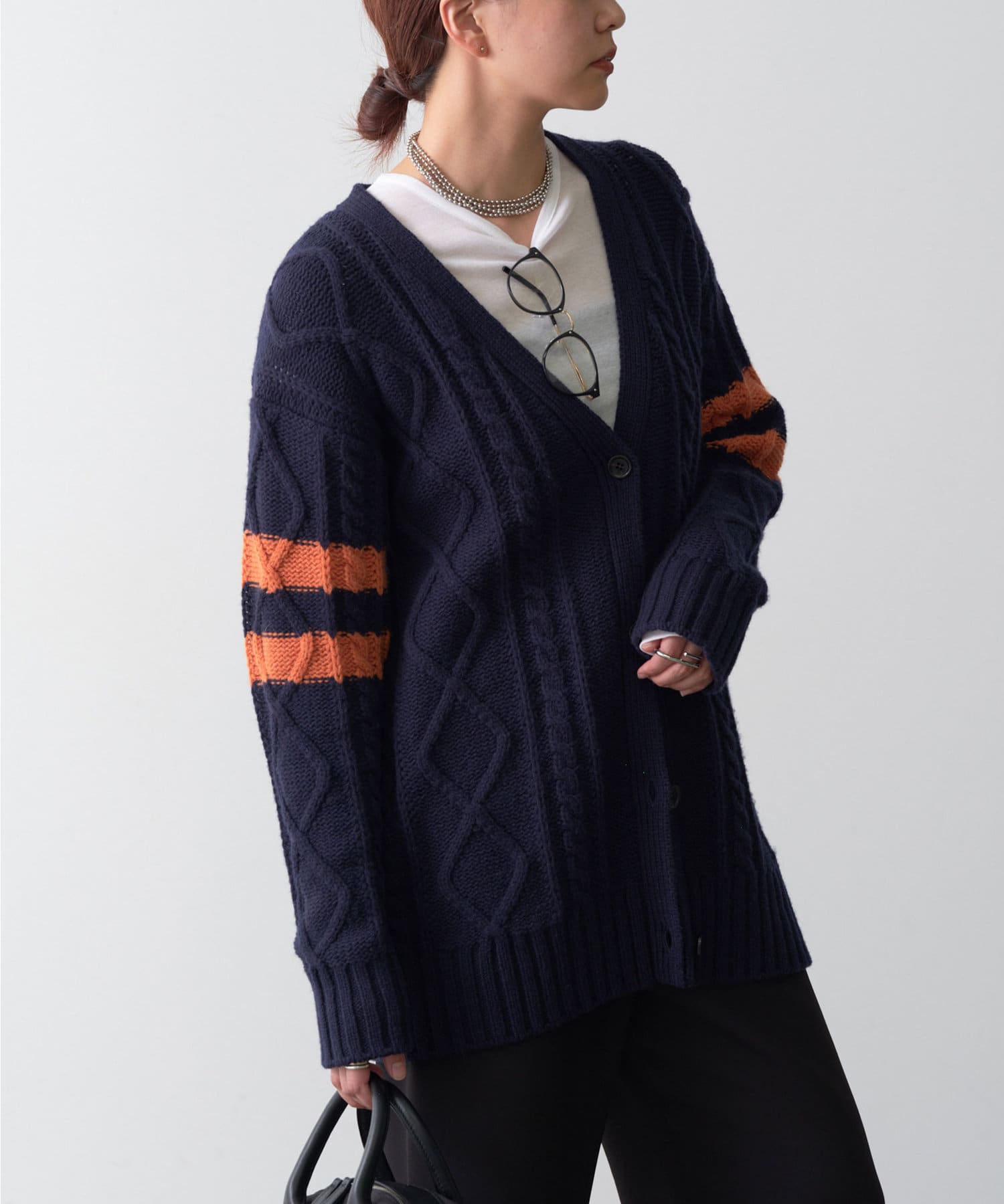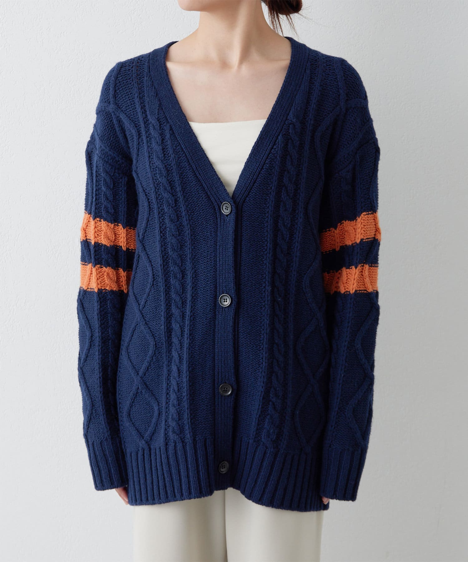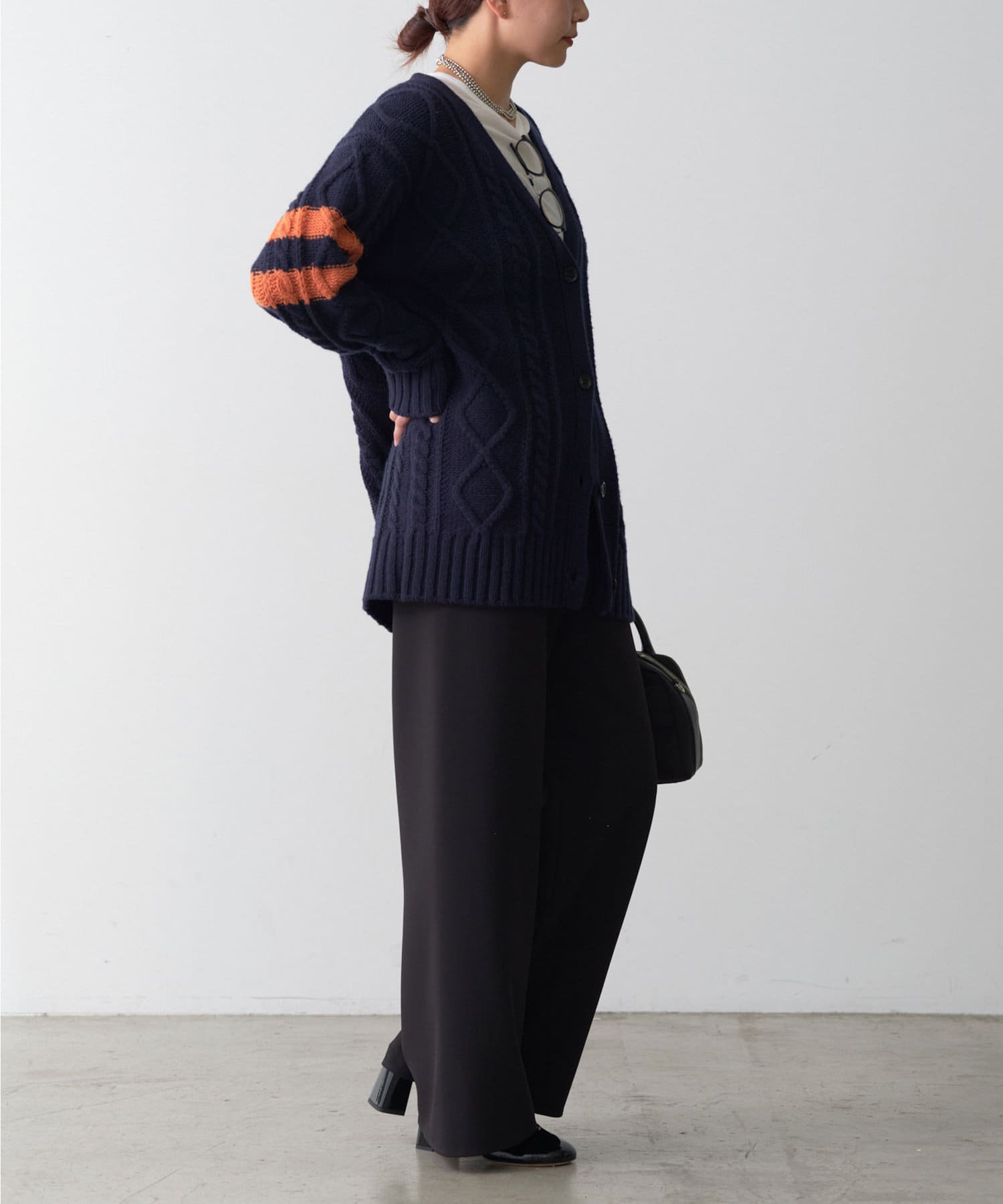 ●ニットの編地が引き立つ大人のケーブルカーディガン。