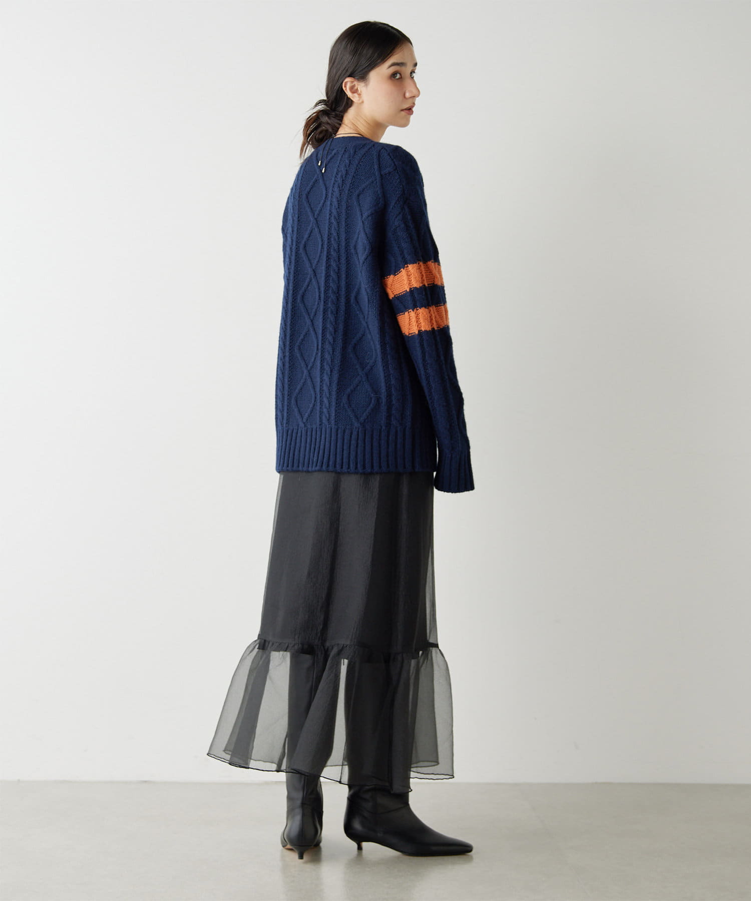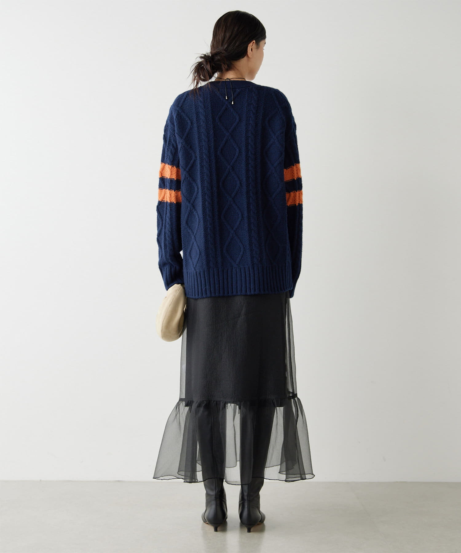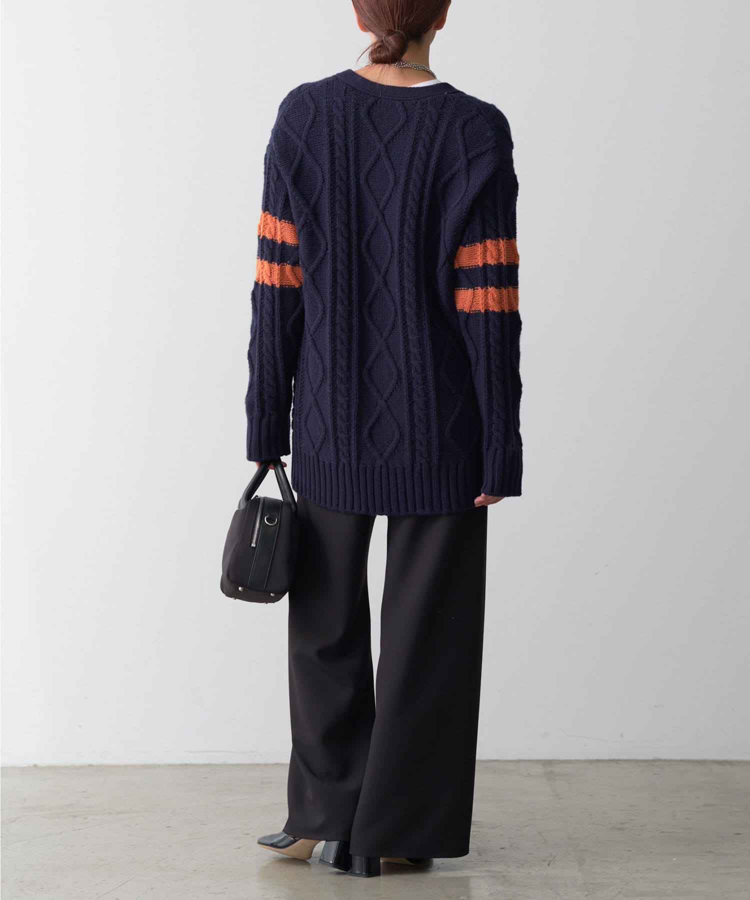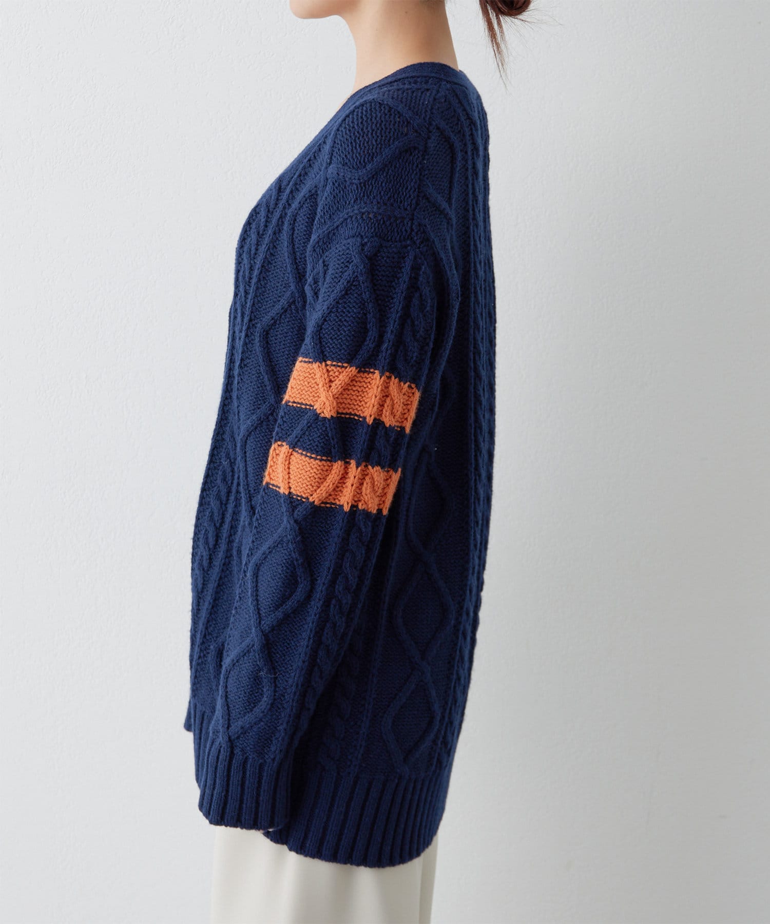 ●ニットの編地が引き立つ大人のケーブルカーディガン。