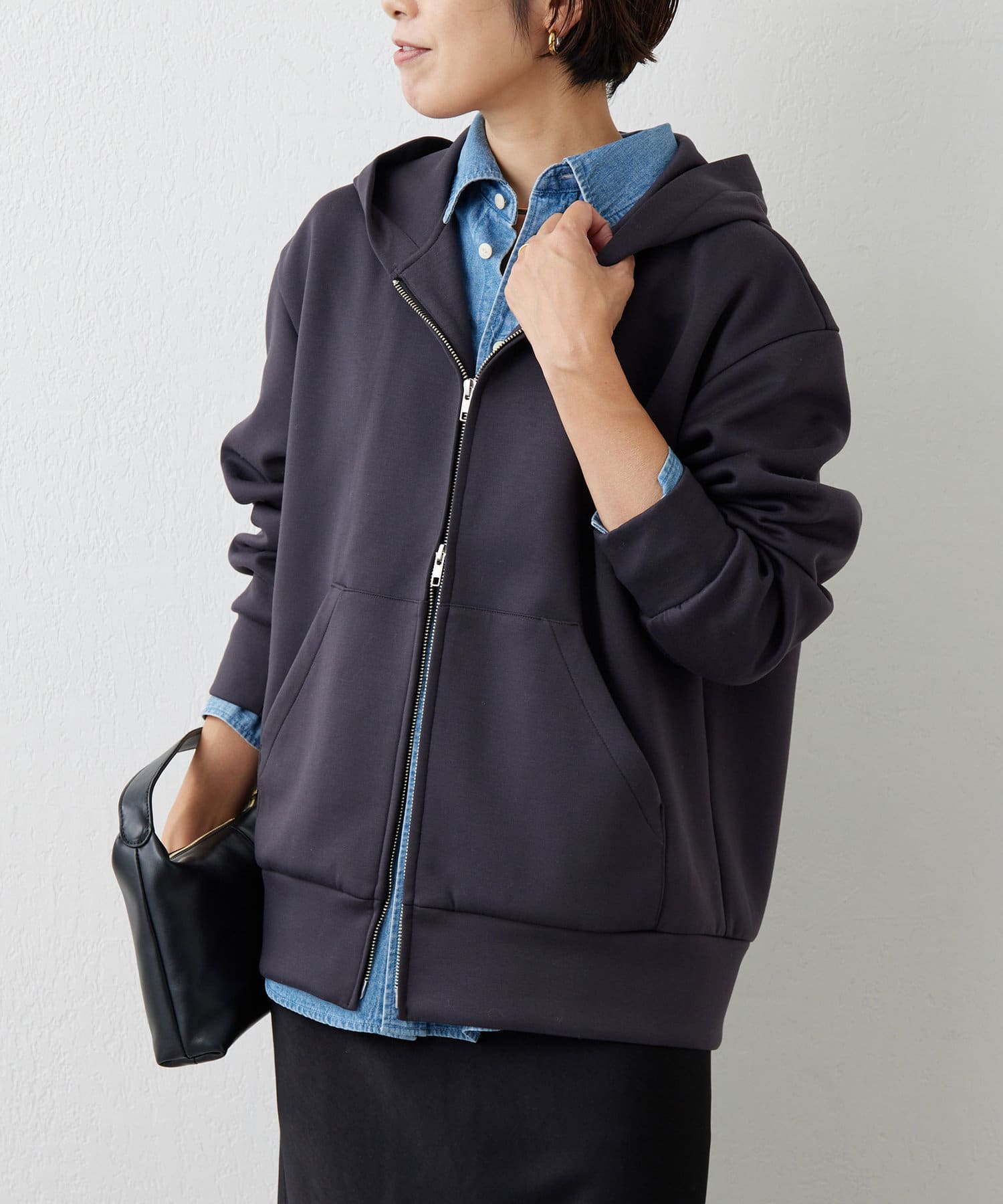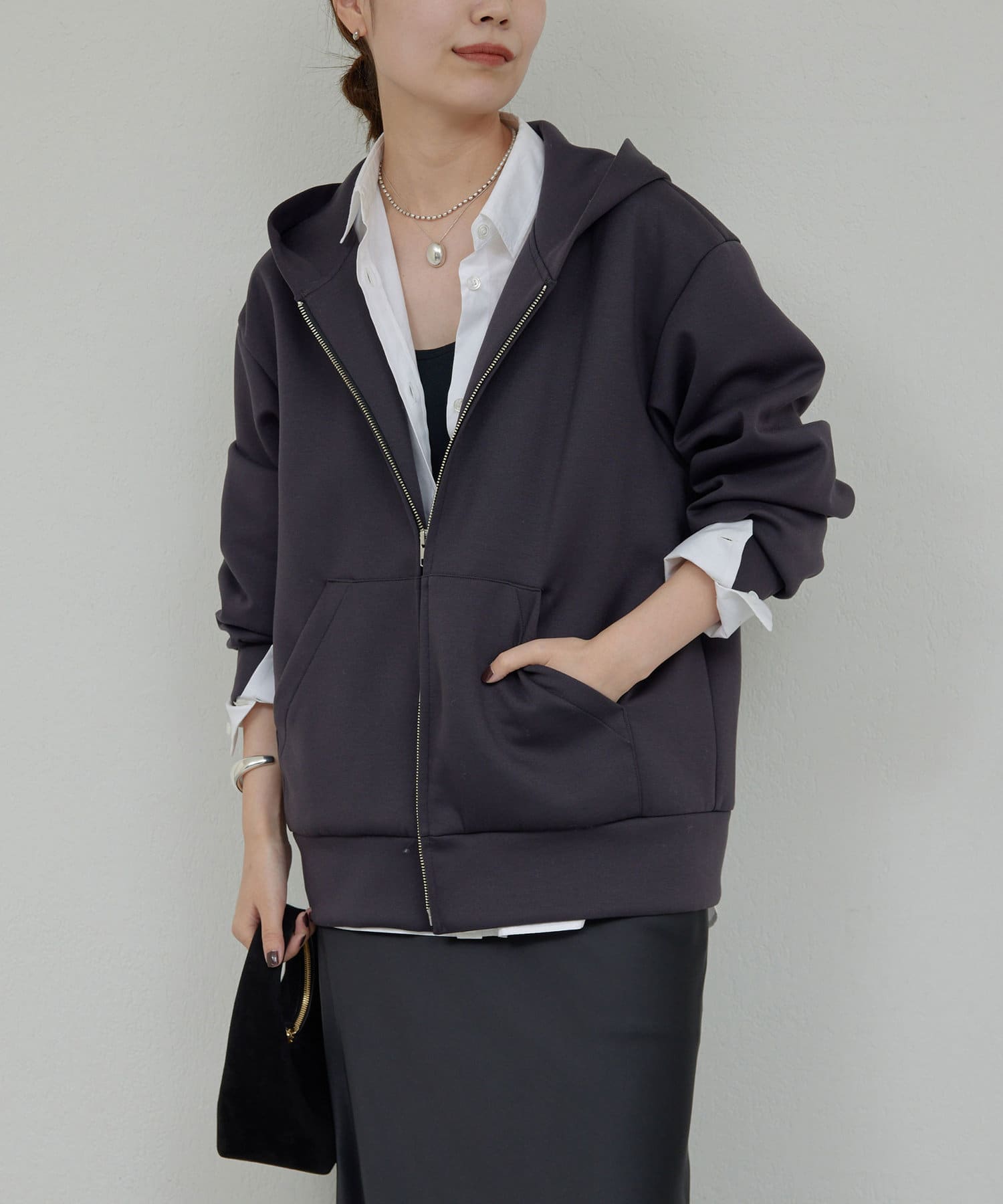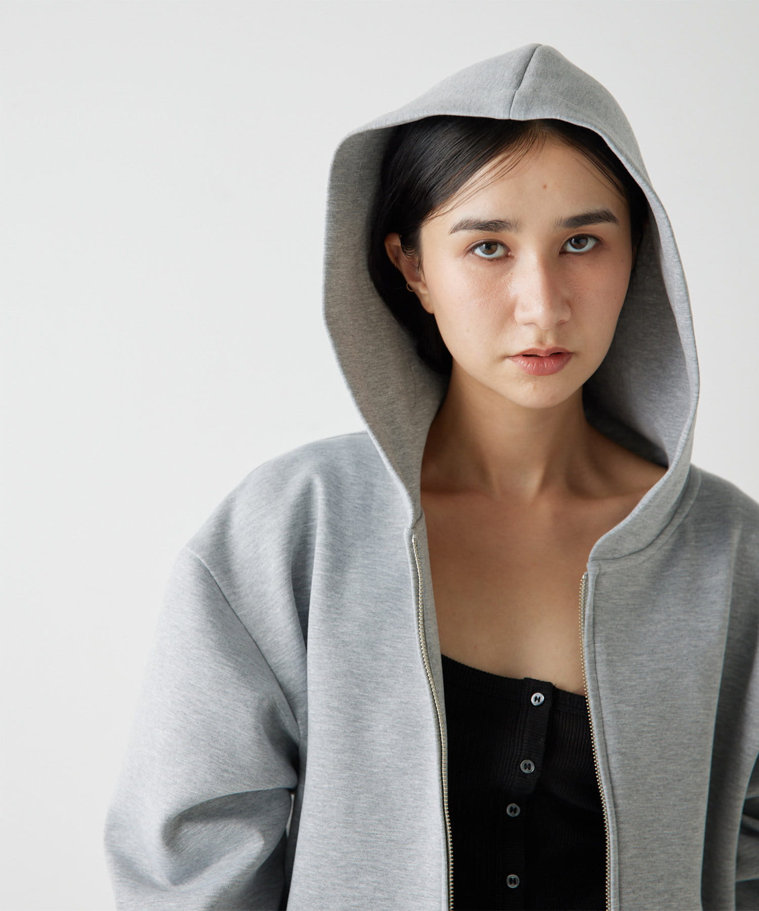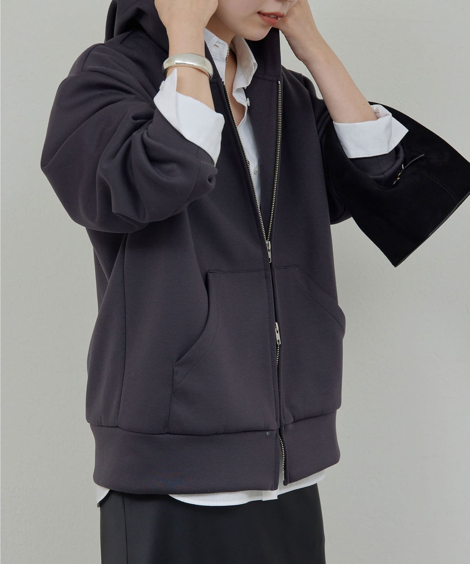 ●立体的なフォルムが魅力のミニマルなジップフーディー。