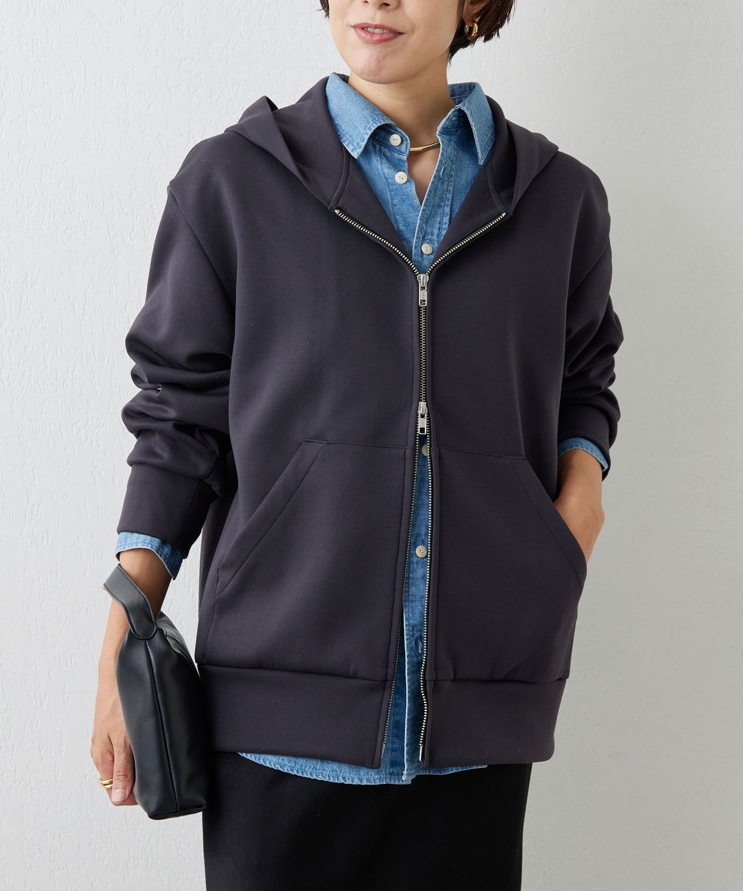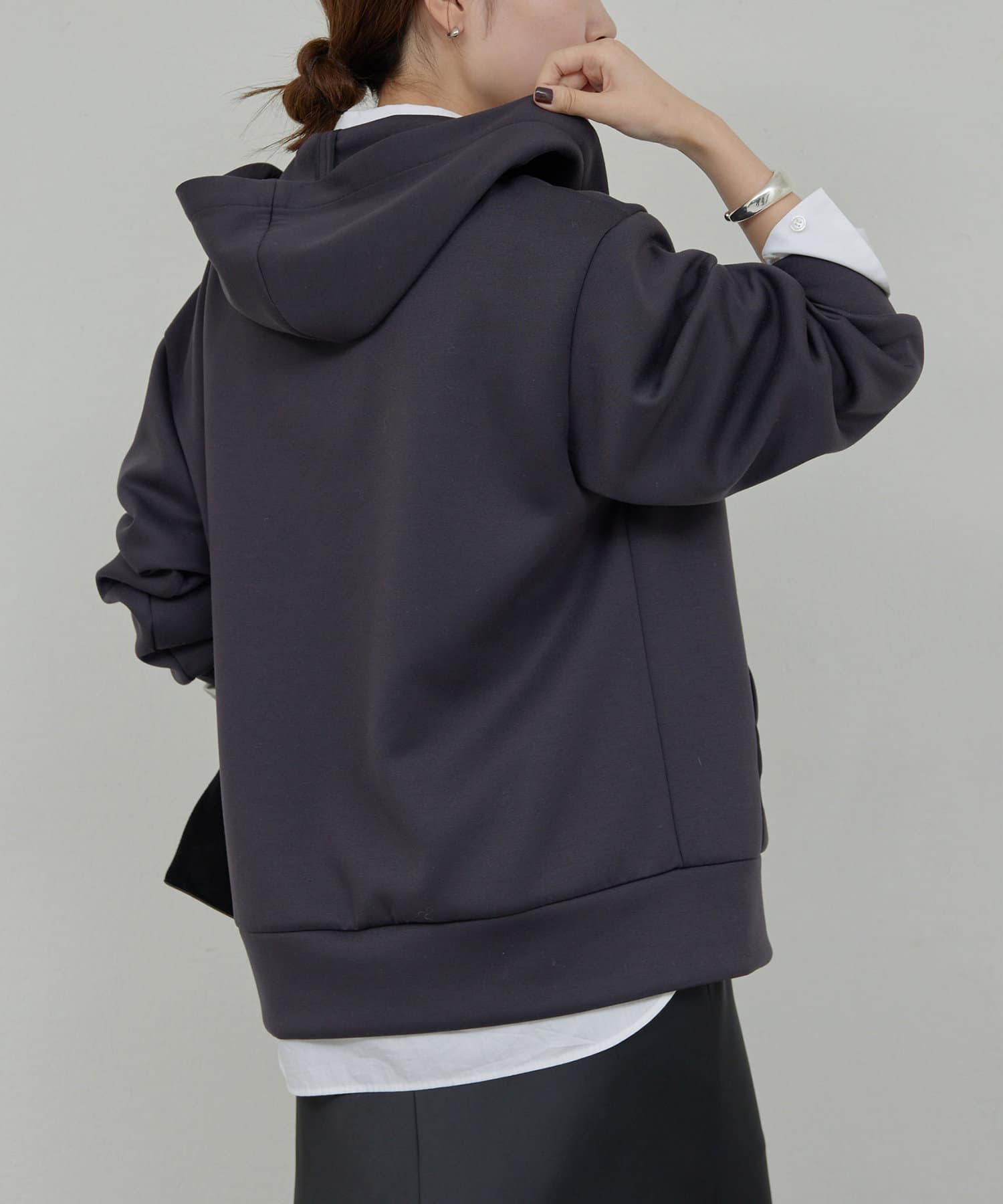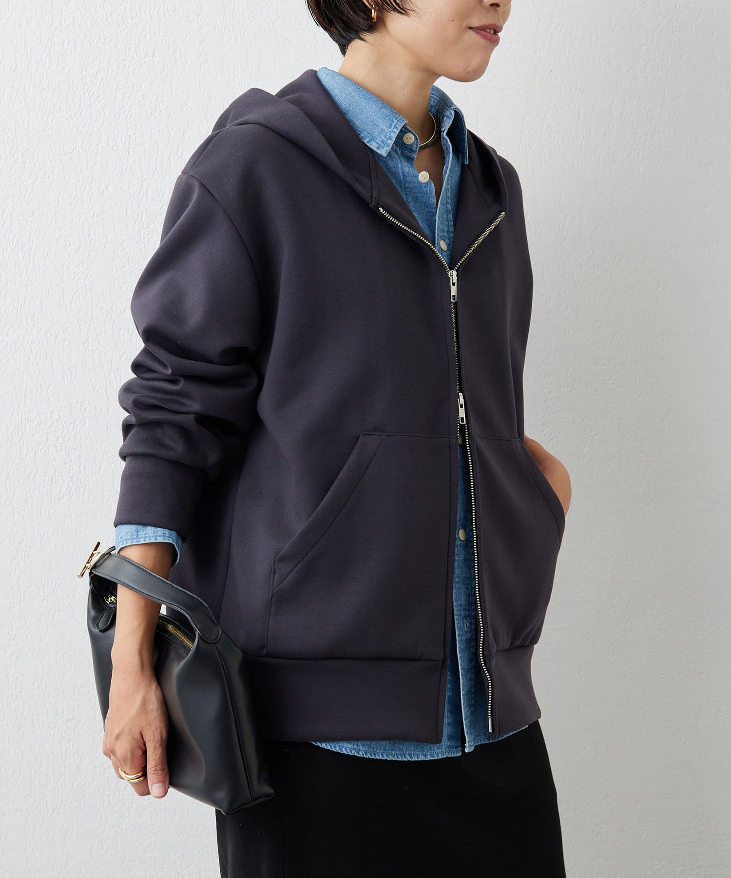●立体的なフォルムが魅力のミニマルなジップフーディー。