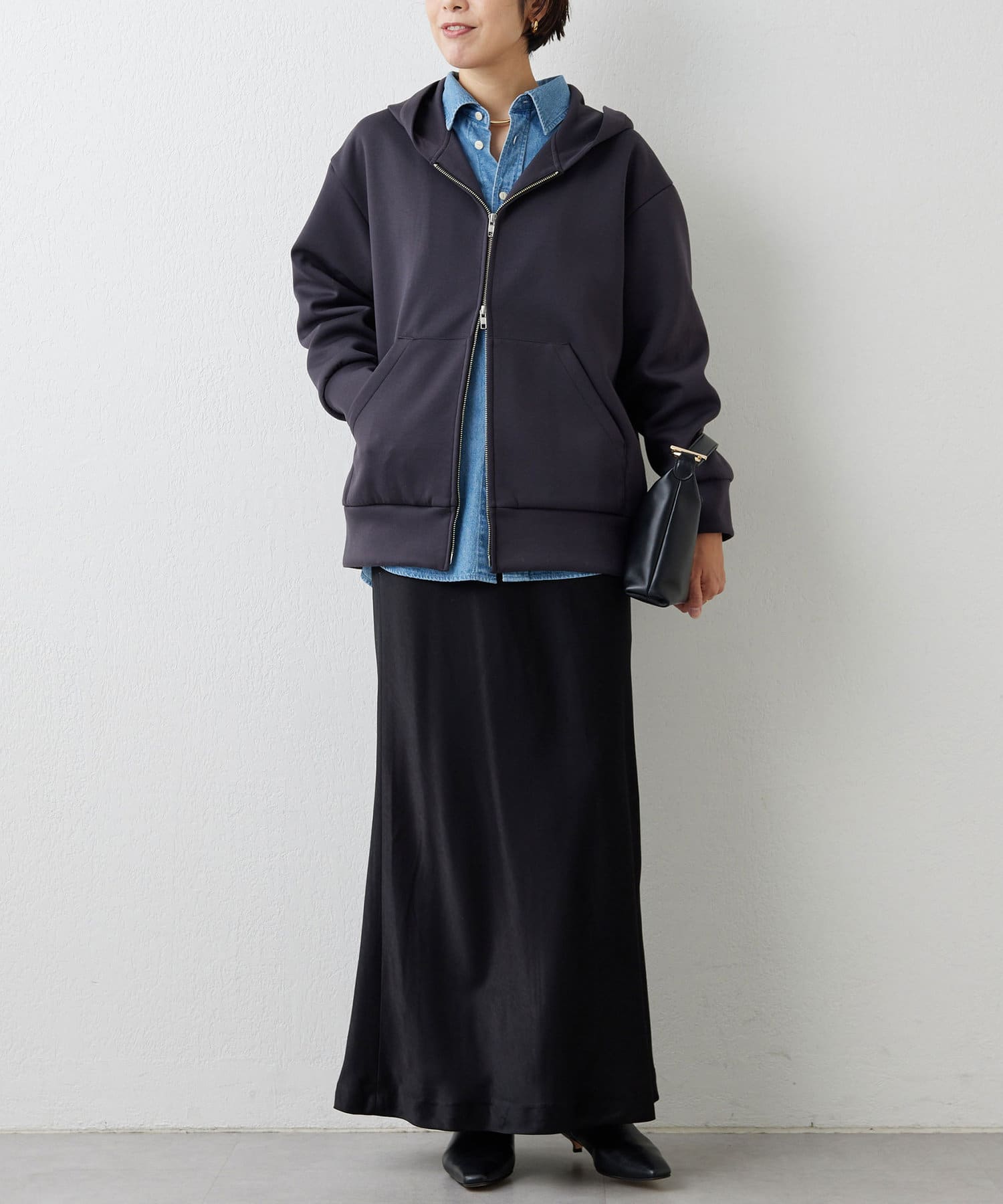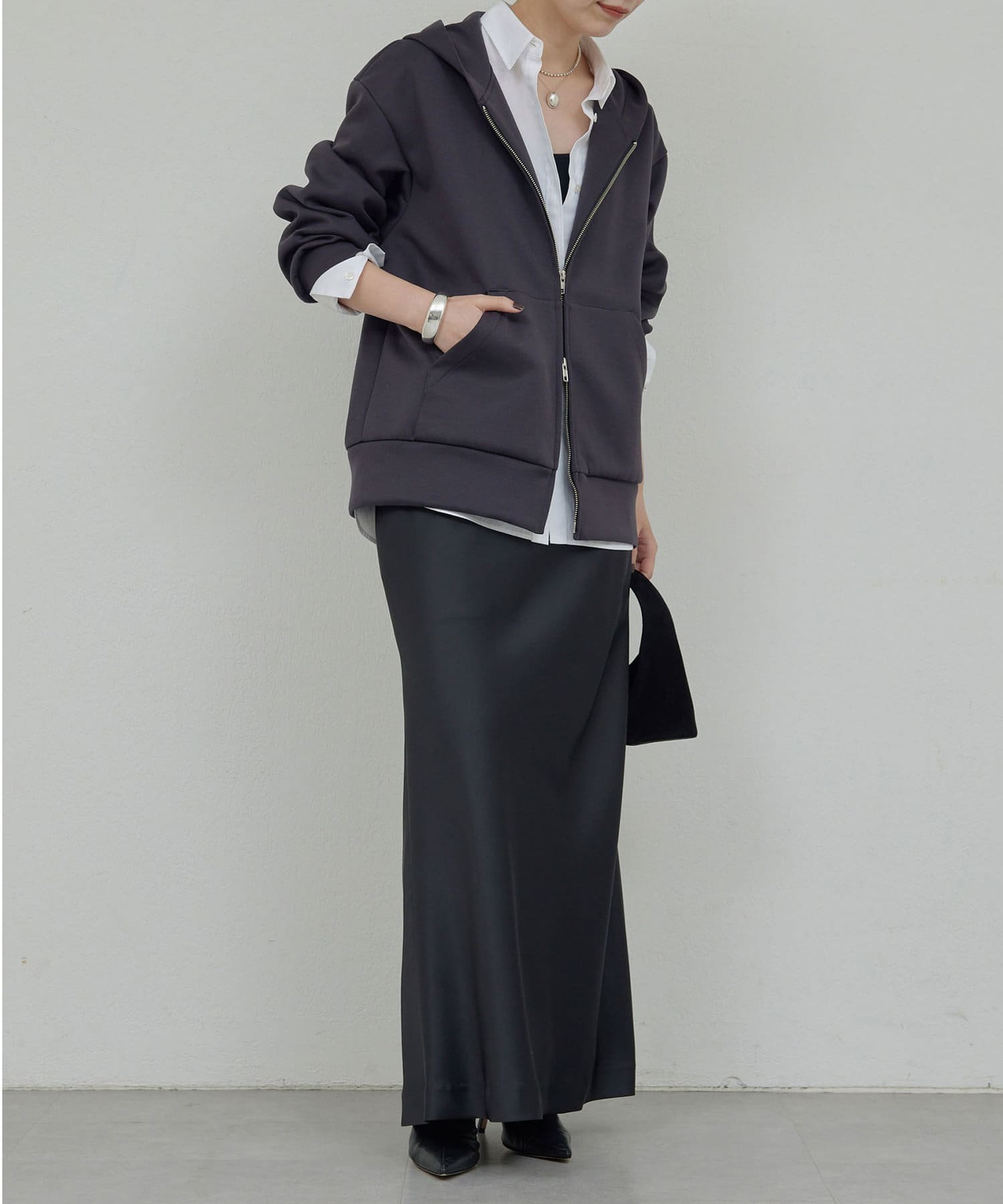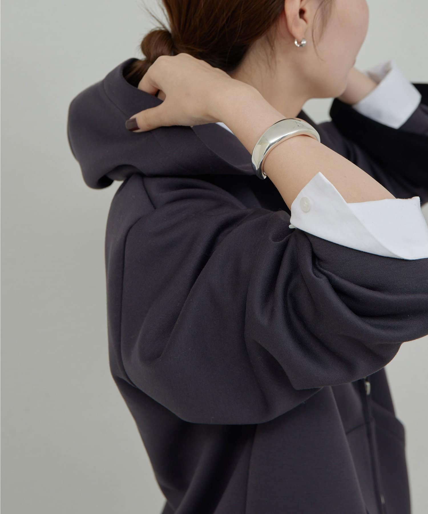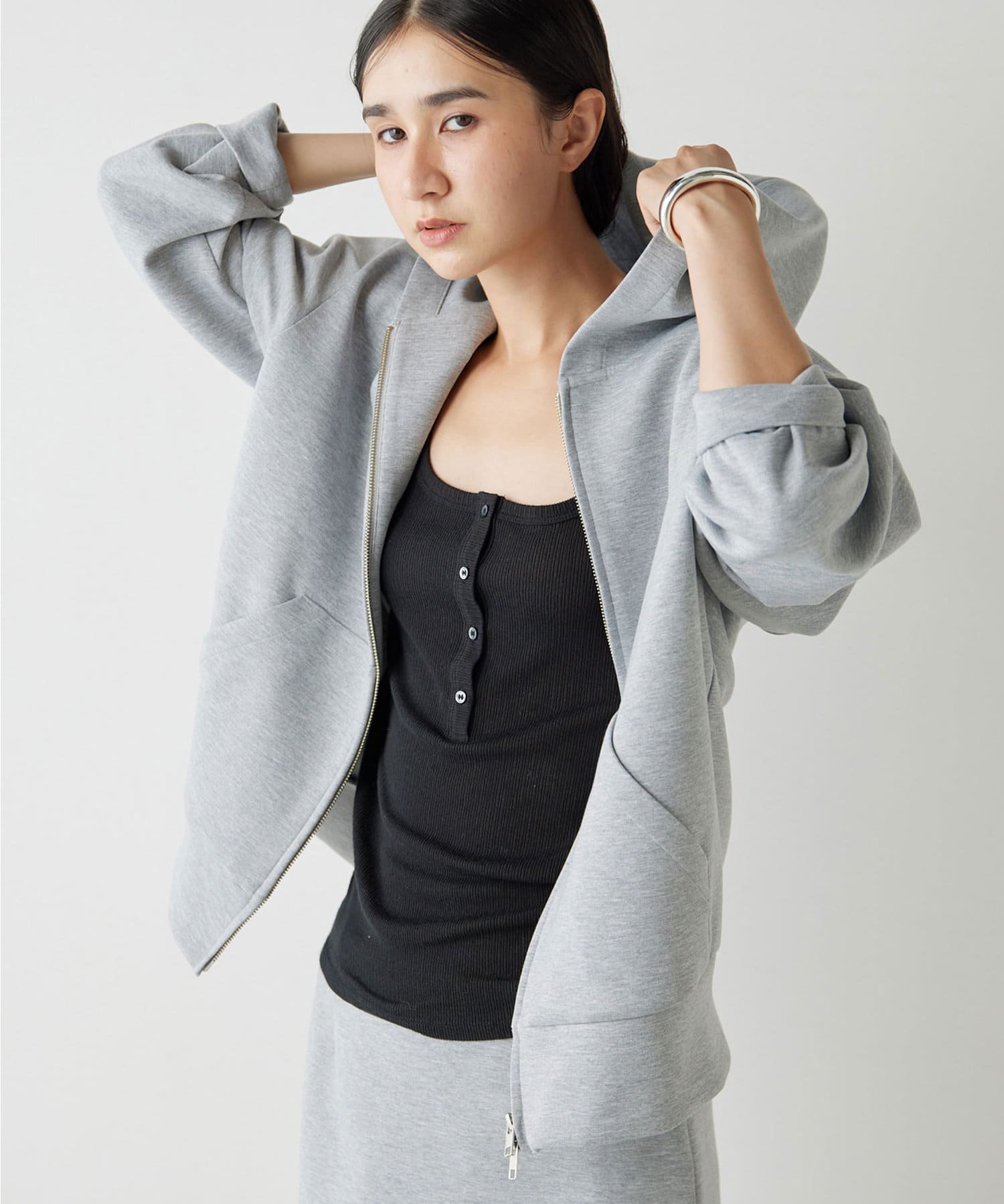 ●立体的なフォルムが魅力のミニマルなジップフーディー。