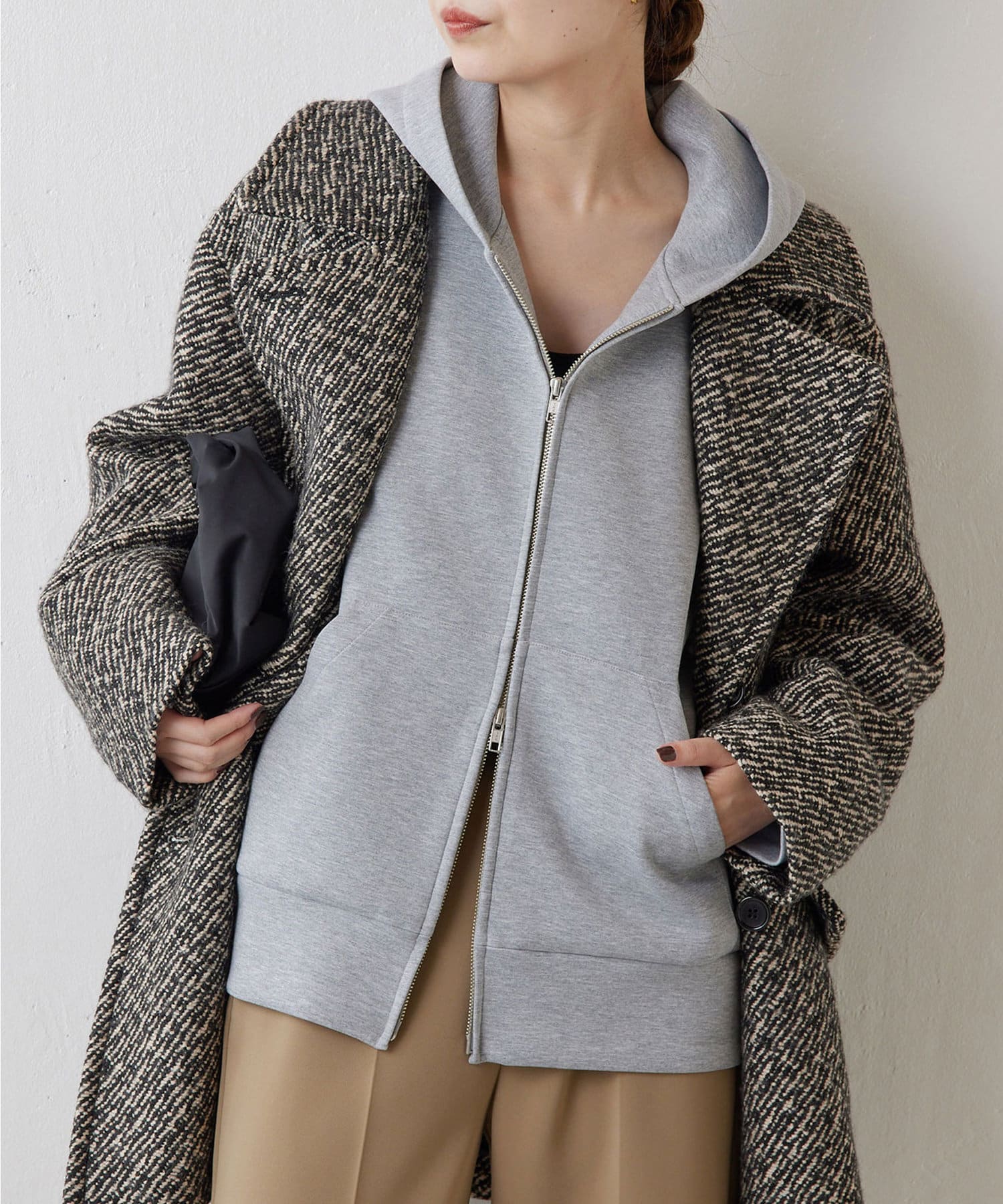 ●一枚着や羽織りとしては勿論、コートの下に着込んでフードを出したスタイリングもおすすめ◎