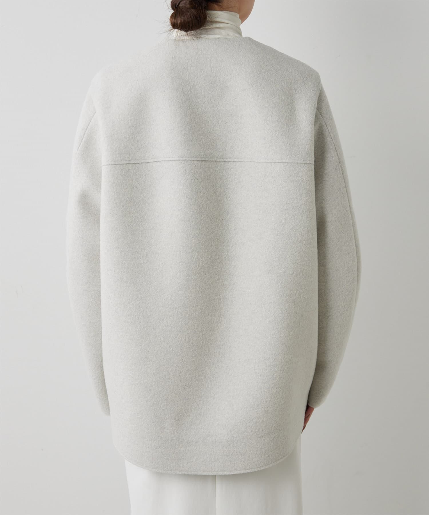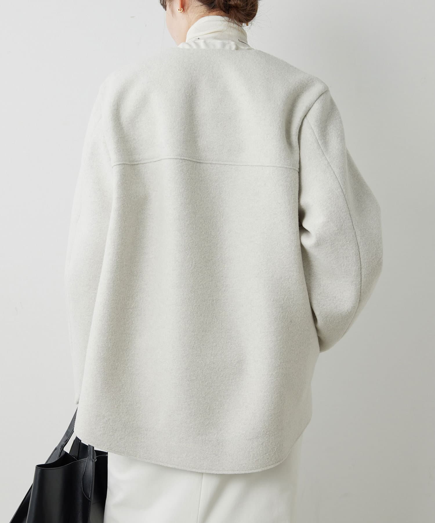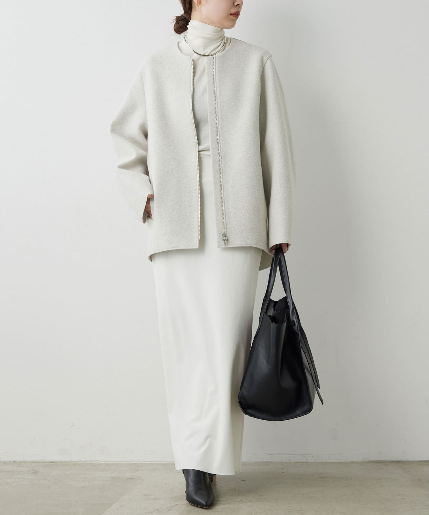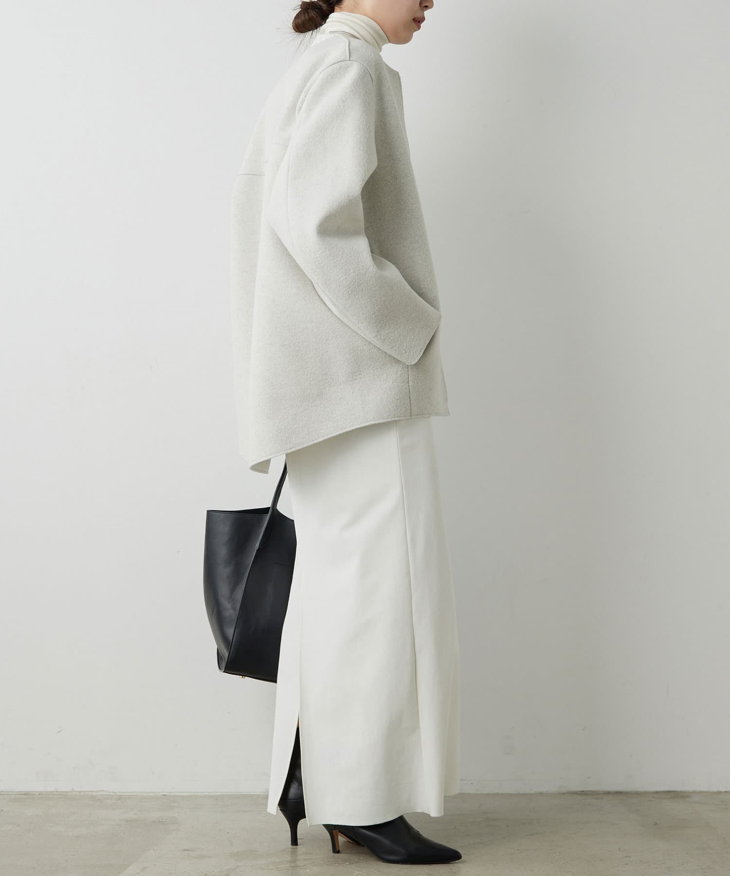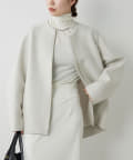 ●ミニマルなデザインが長く着られるノーカラーコート。