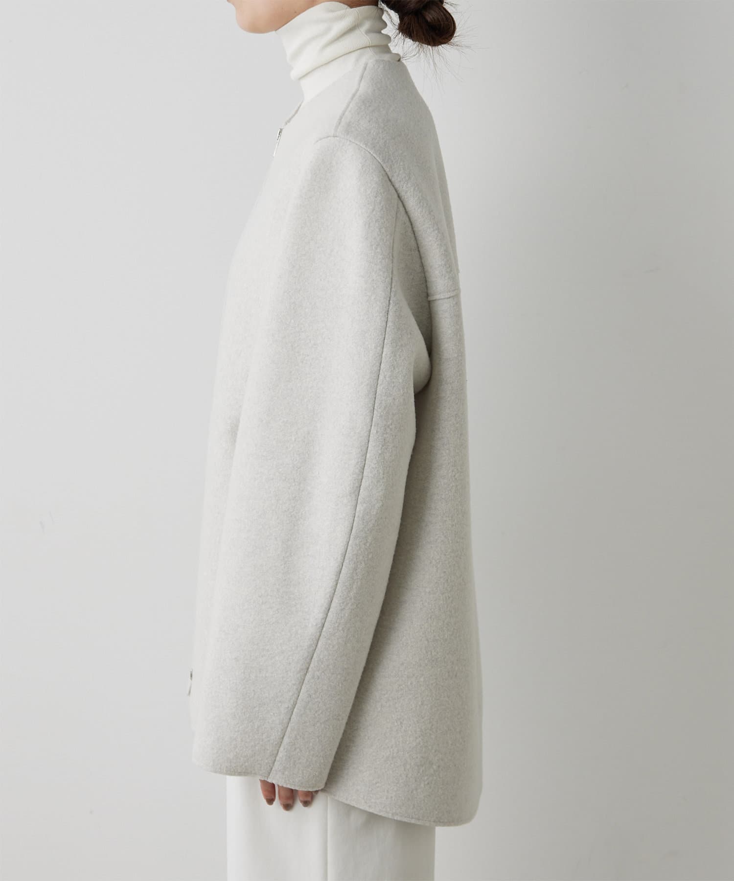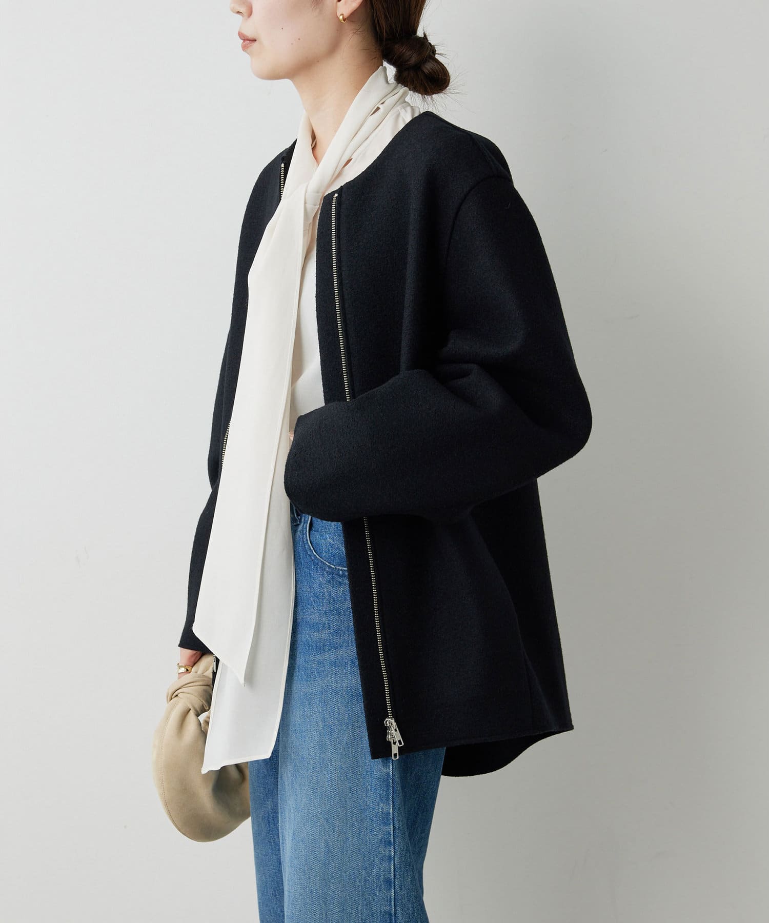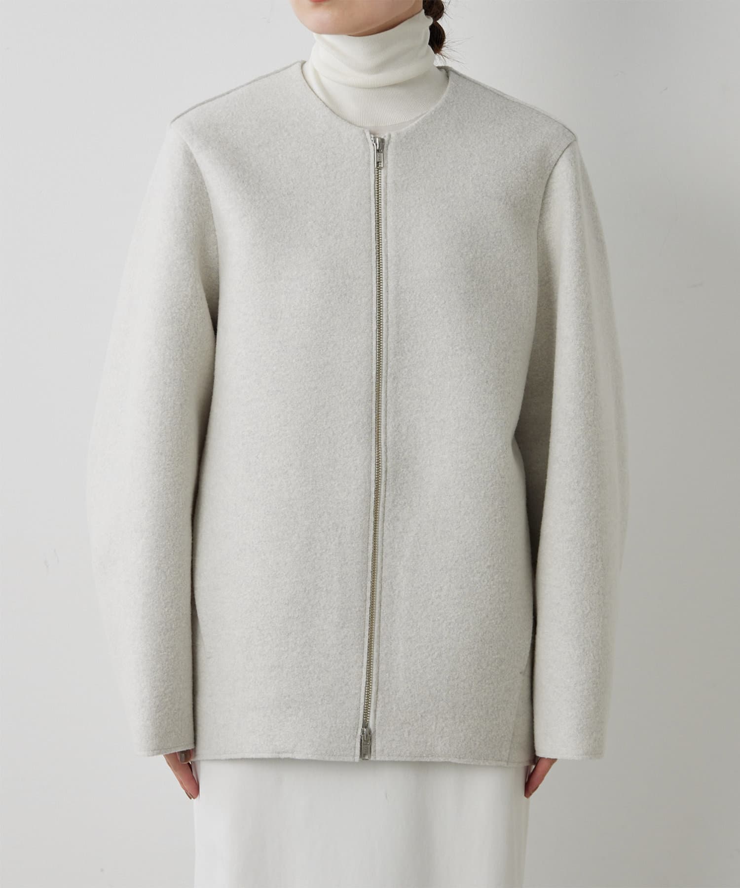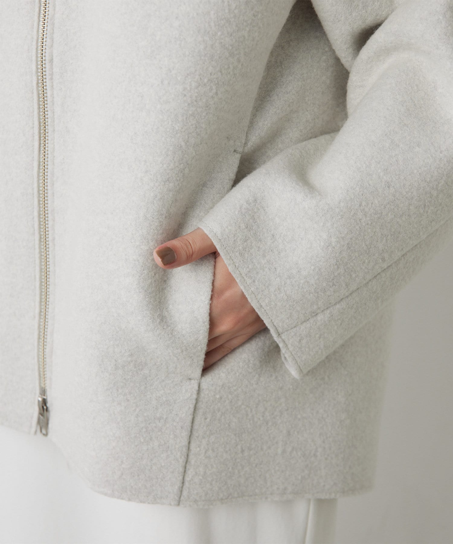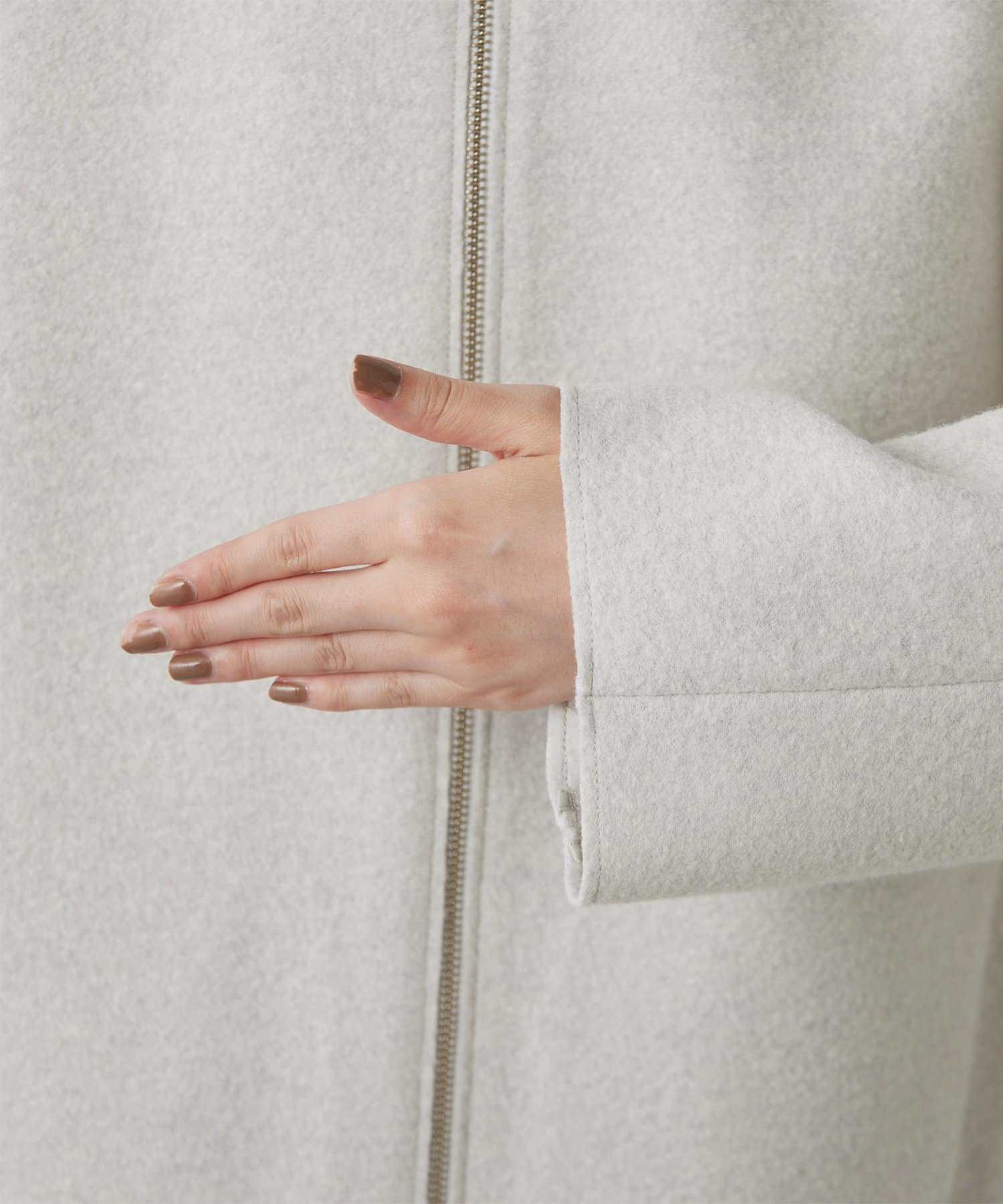 ●ミニマルなデザインが長く着られるノーカラーコート。