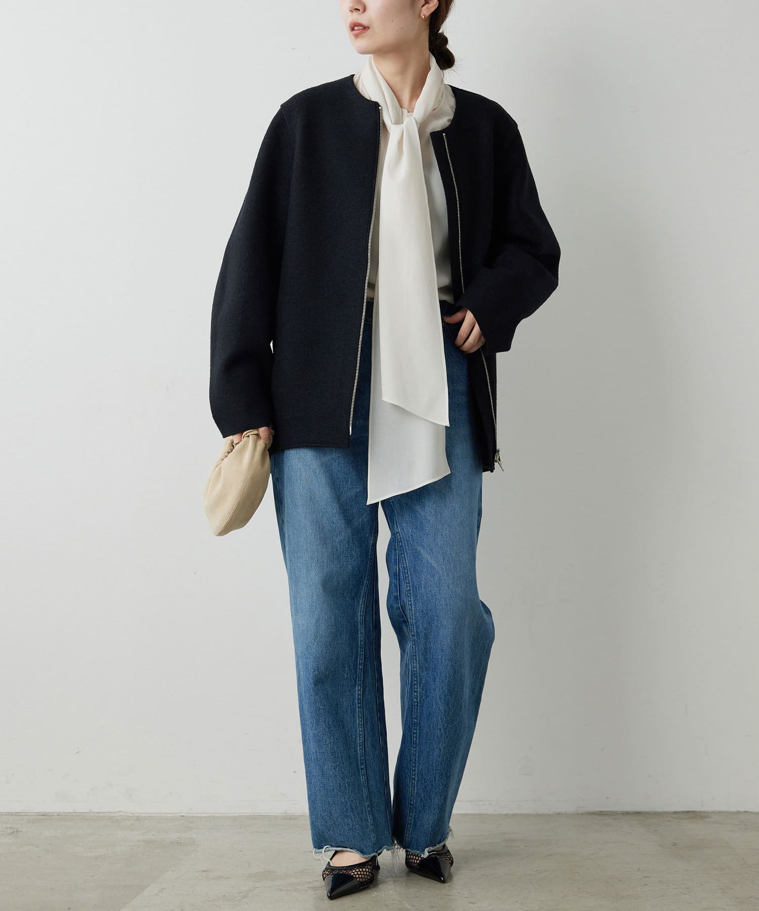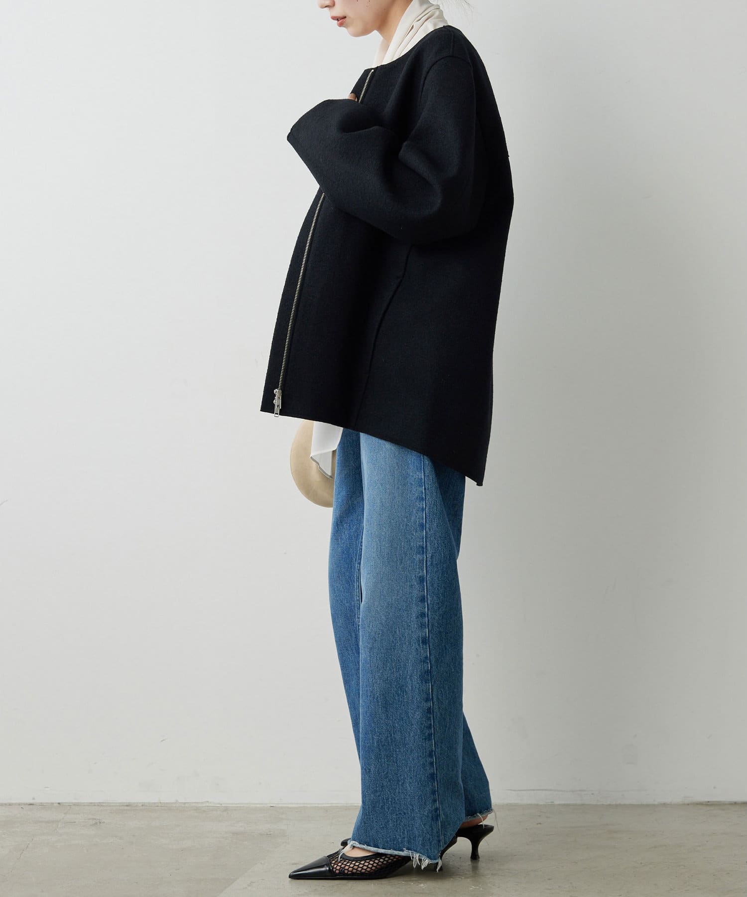 ●ボトムを選ばずに合わせやすい、ヒップをすっぽりと覆うミドル丈。