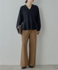 ●デニムやスラックス、Iラインシルエットスカートなどシンプルなボトムと合わせるのがおすすめ。