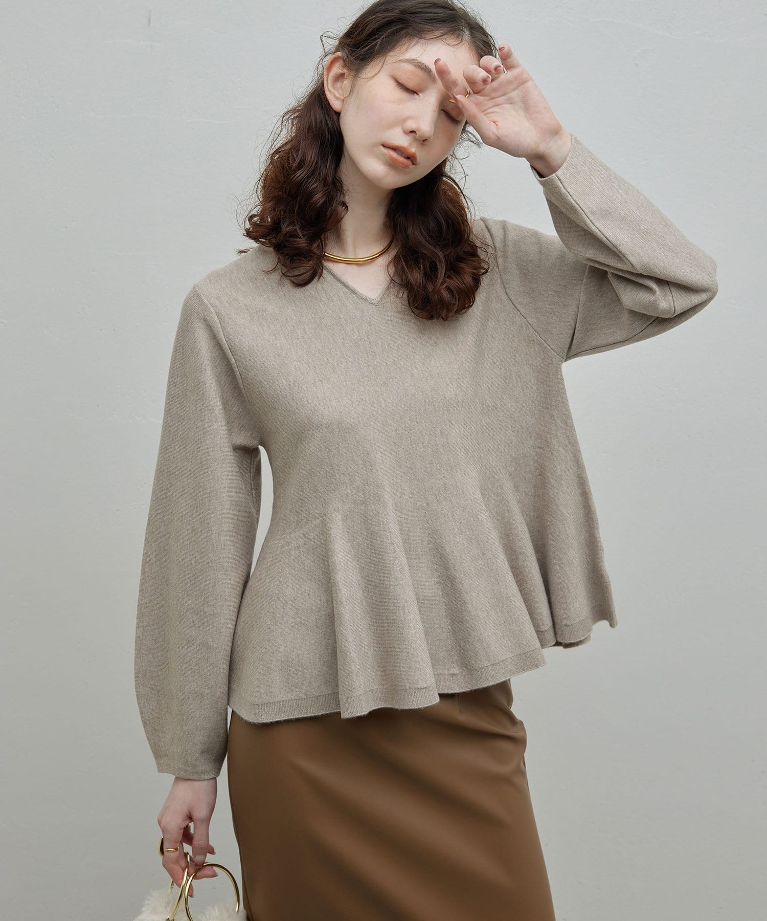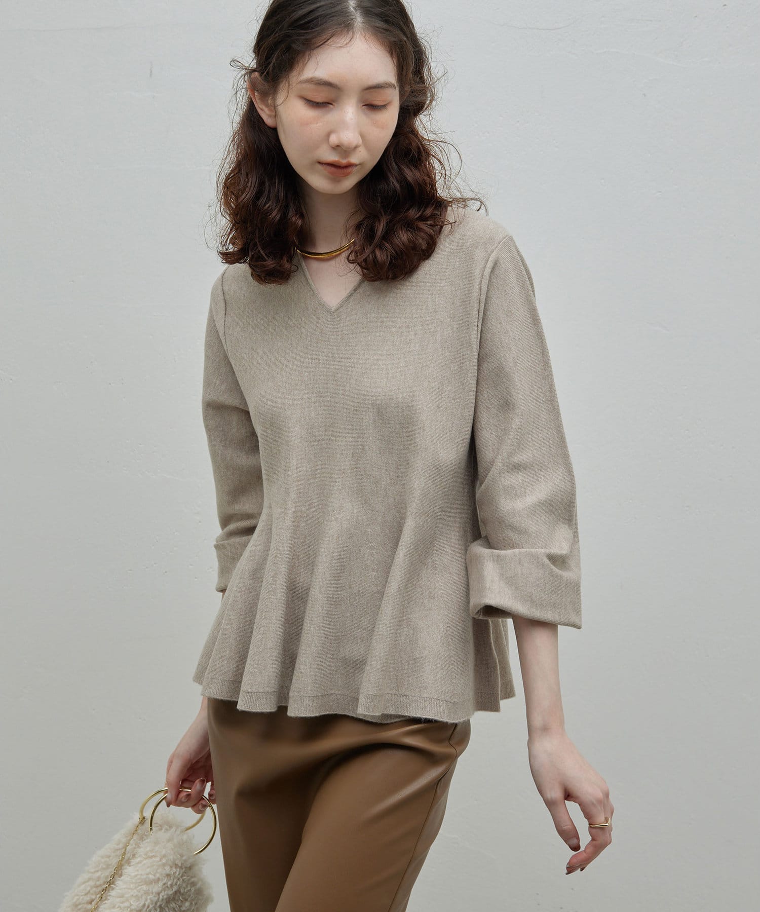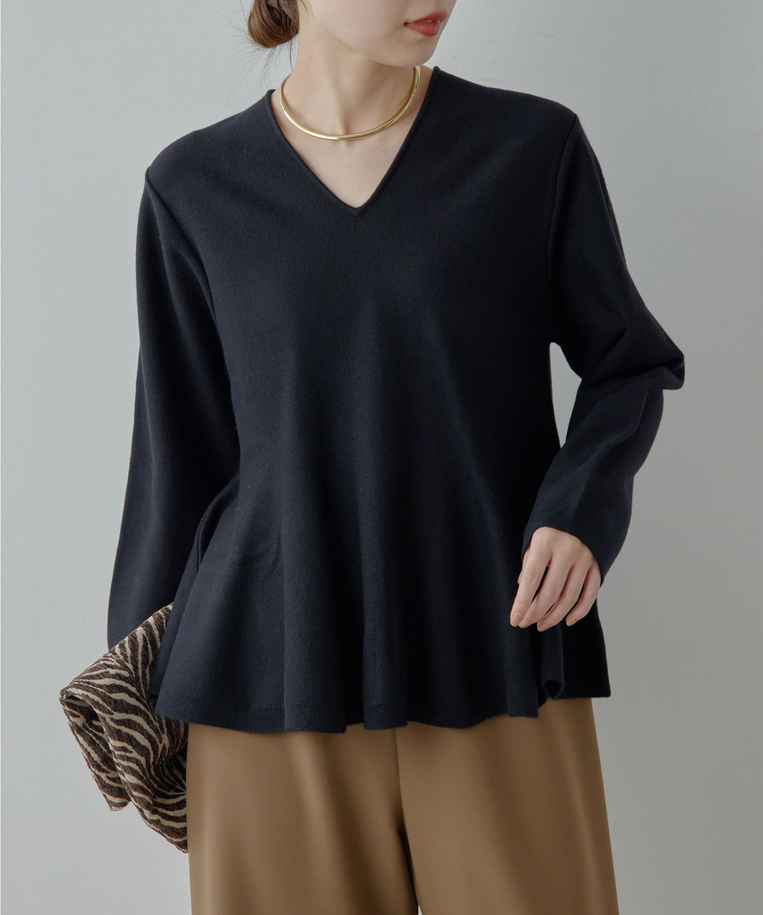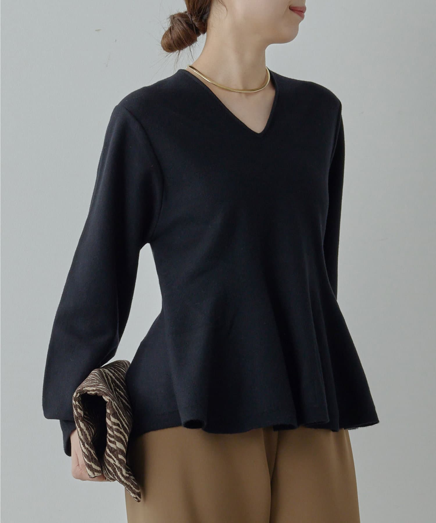 ●なめらかなハイゲージ素材で大人の上品さがあるペプラムニット。