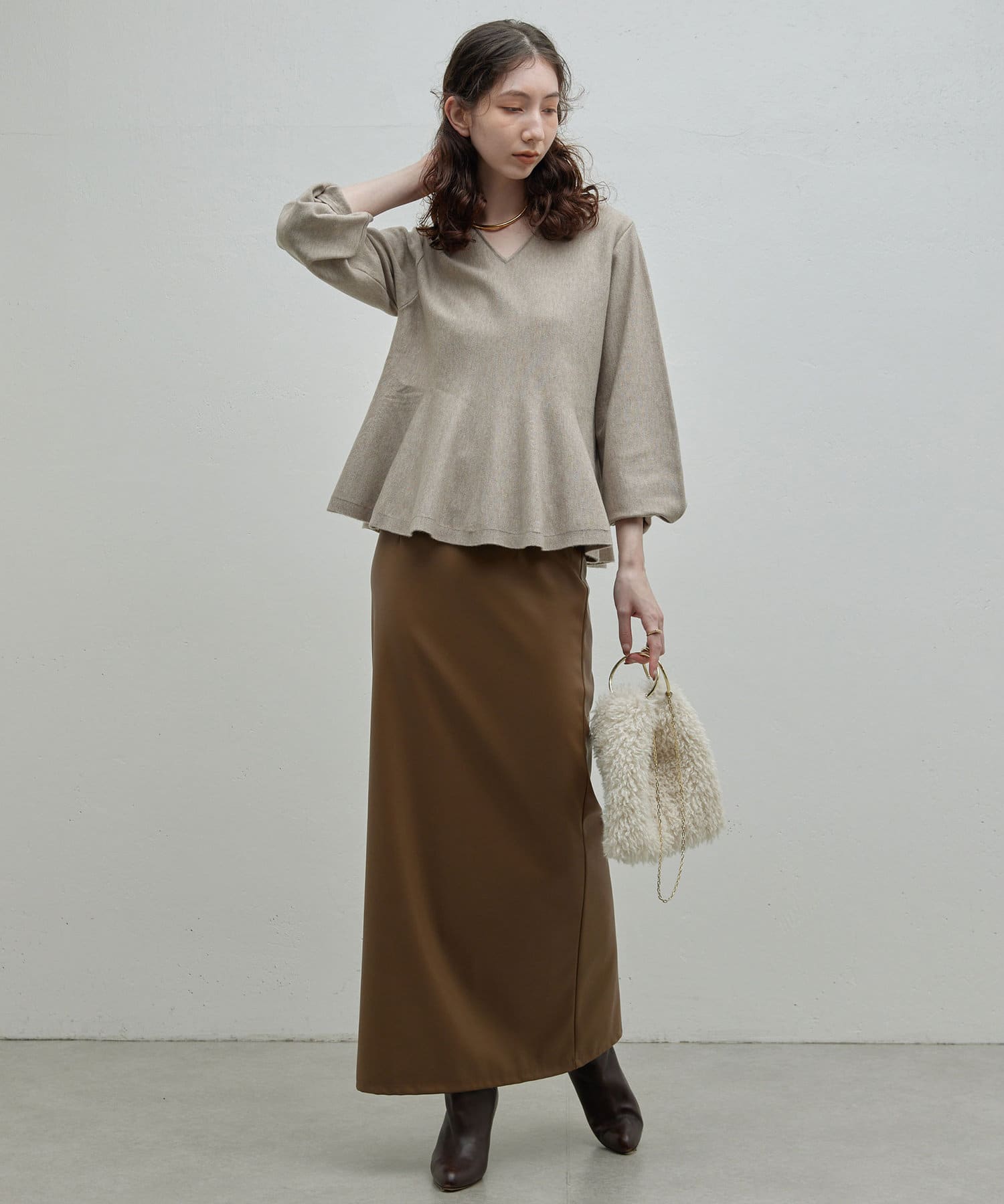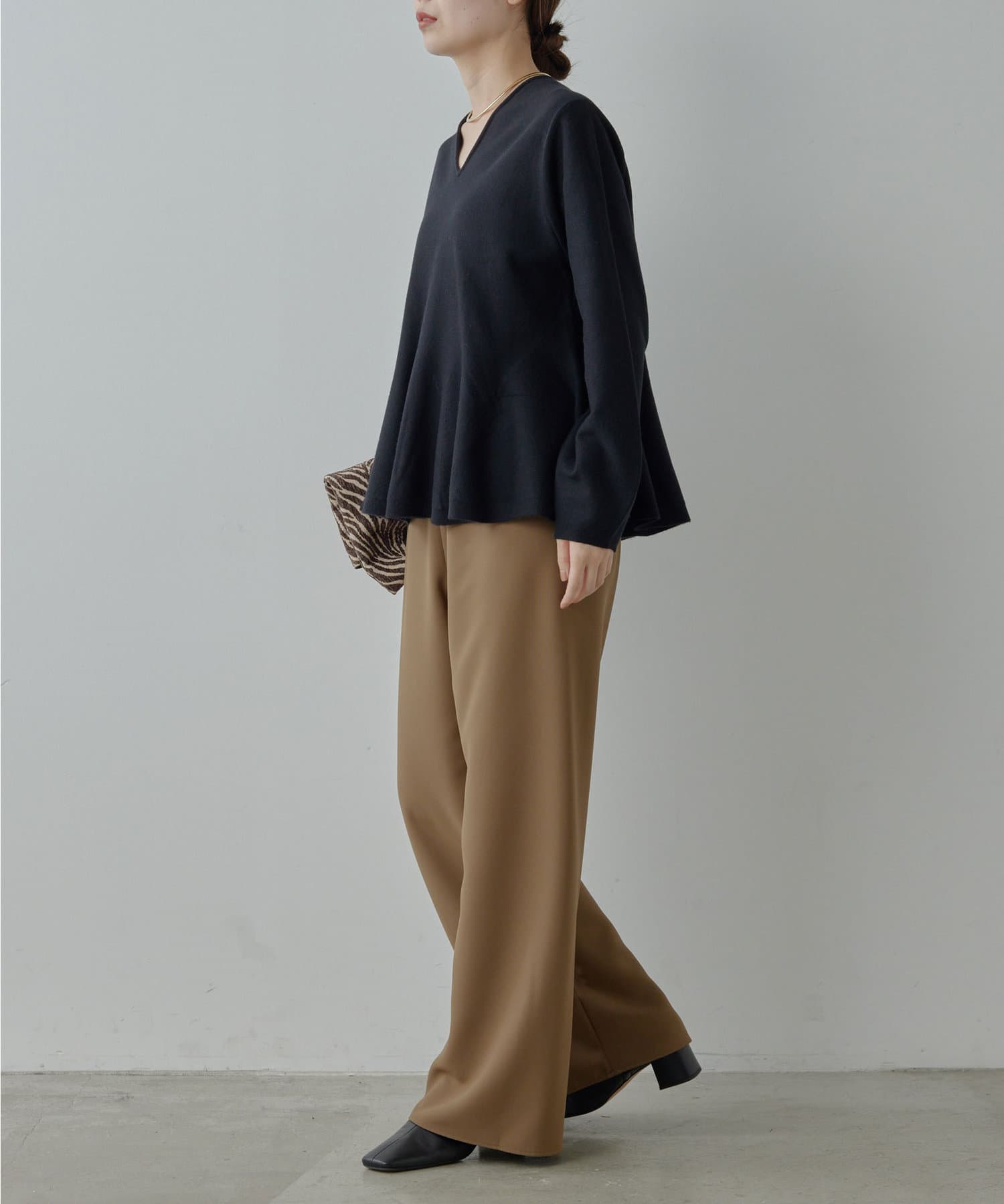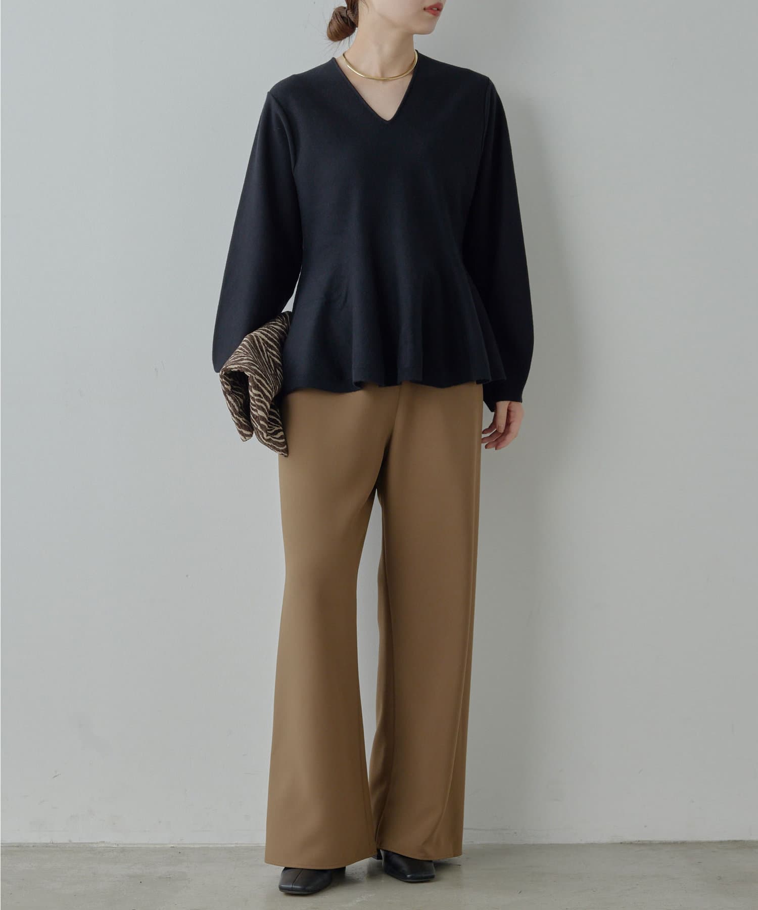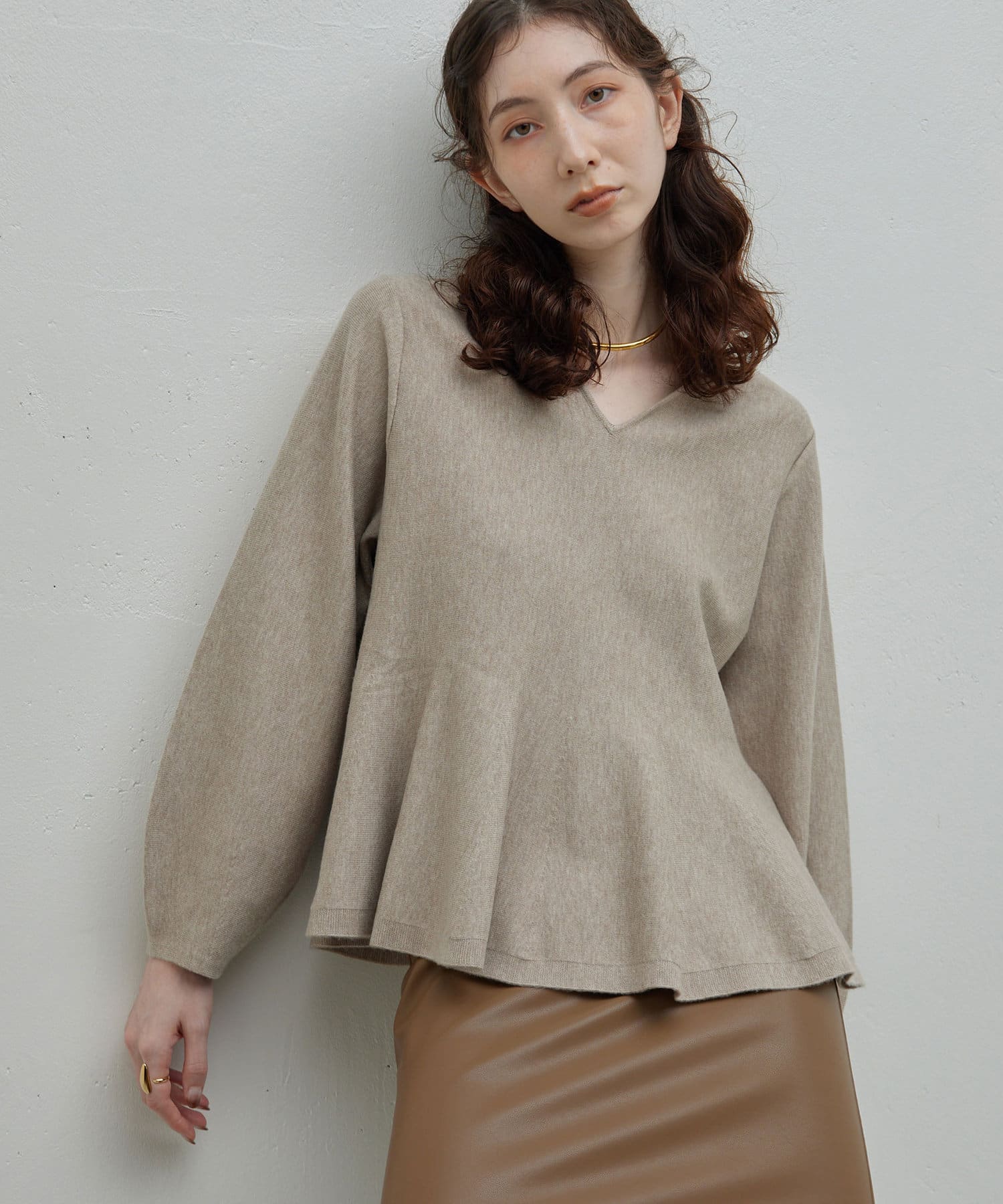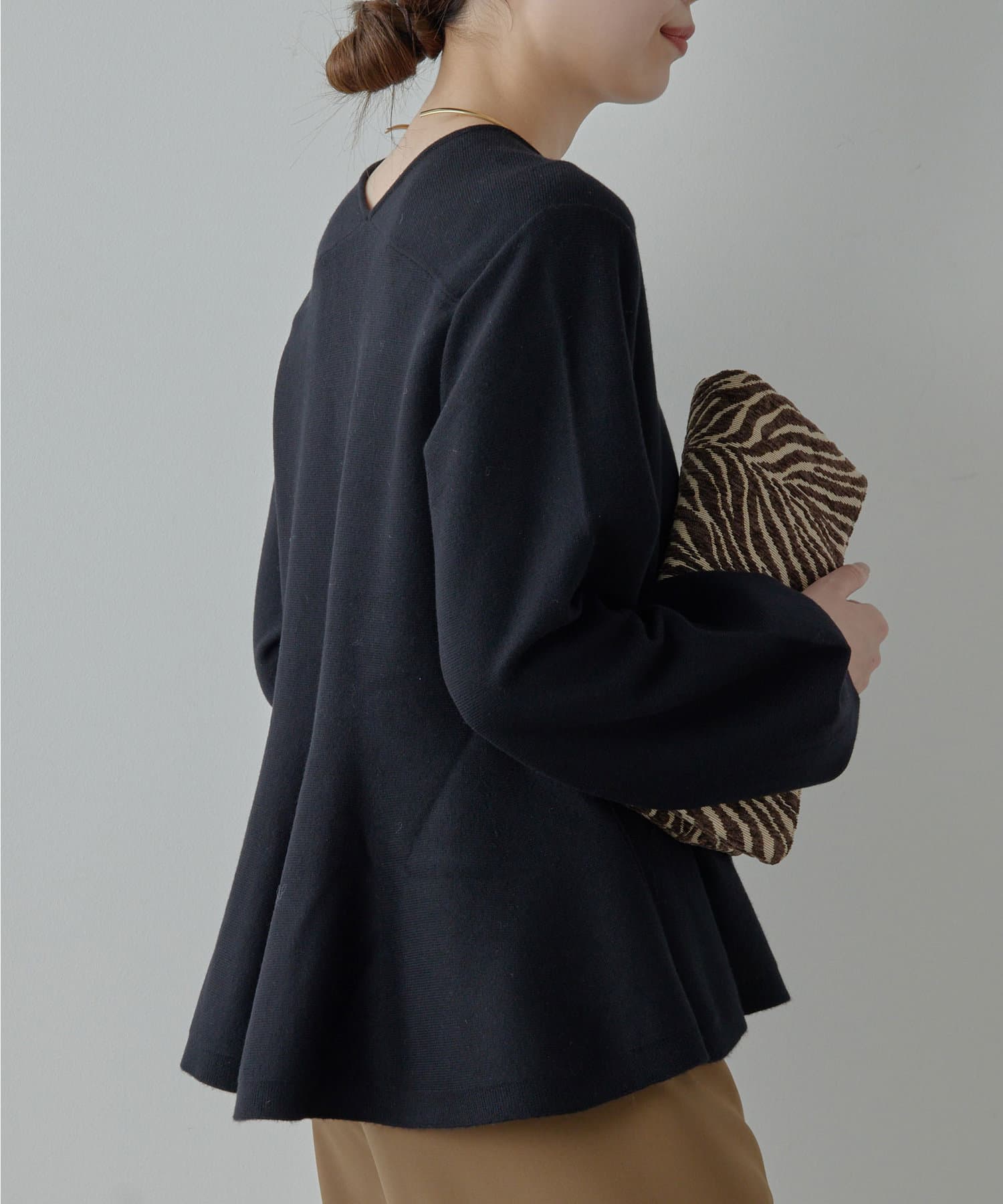 ●なめらかなハイゲージ素材で大人の上品さがあるペプラムニット。