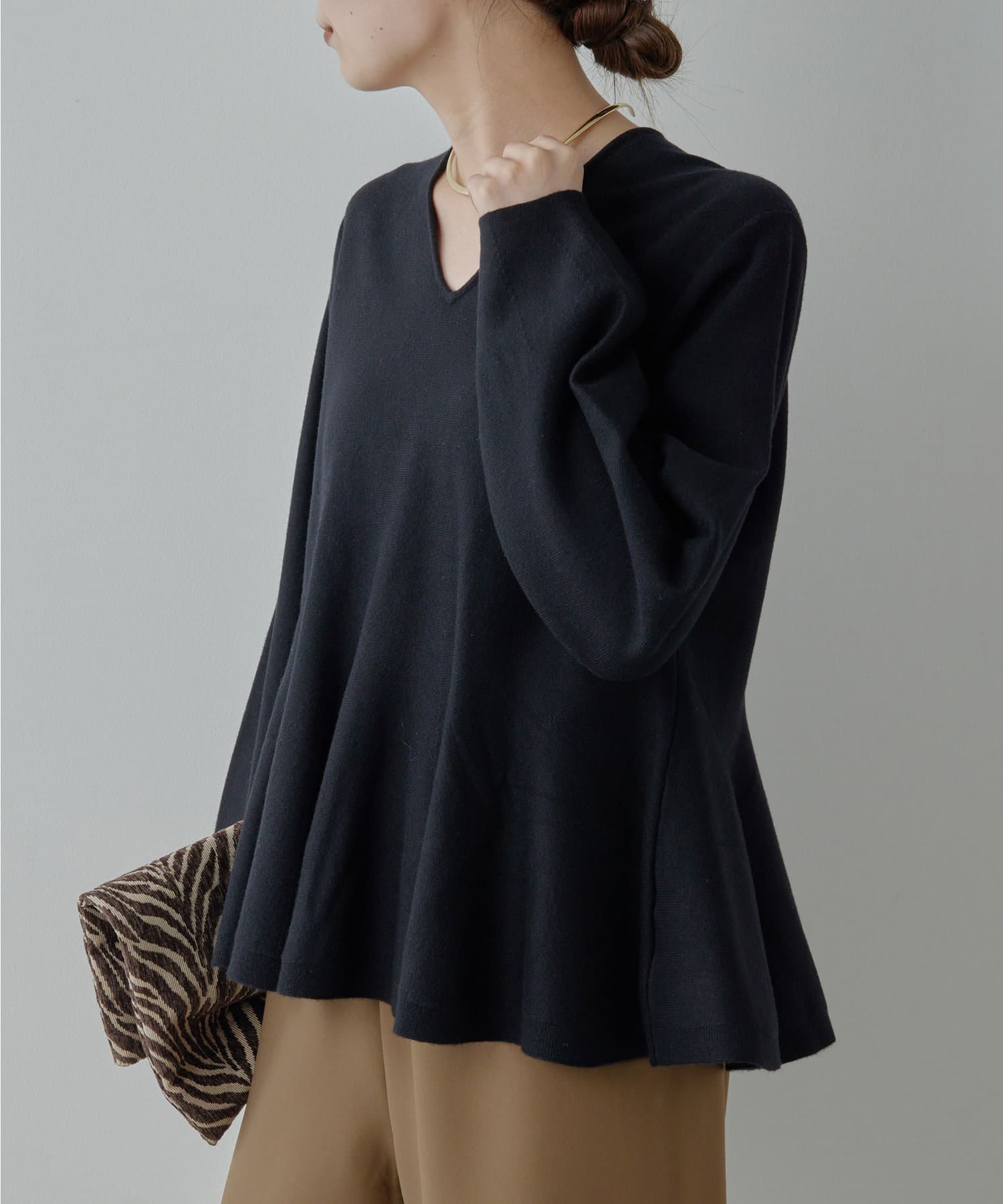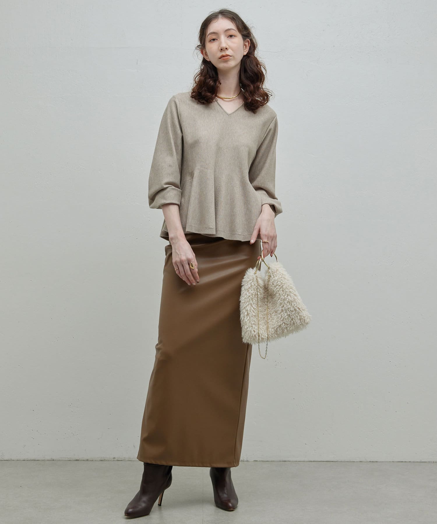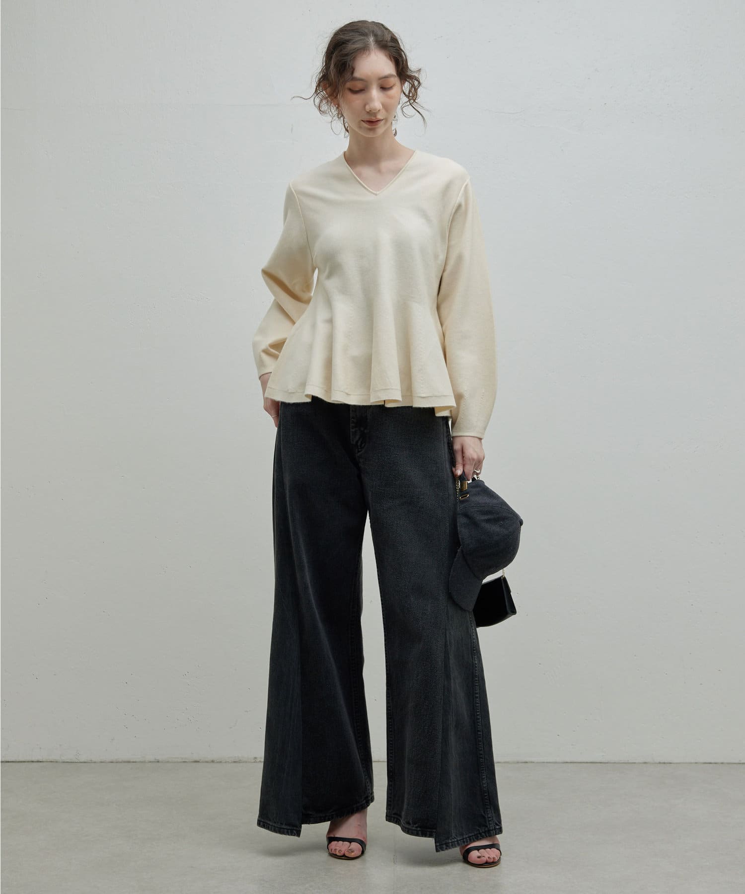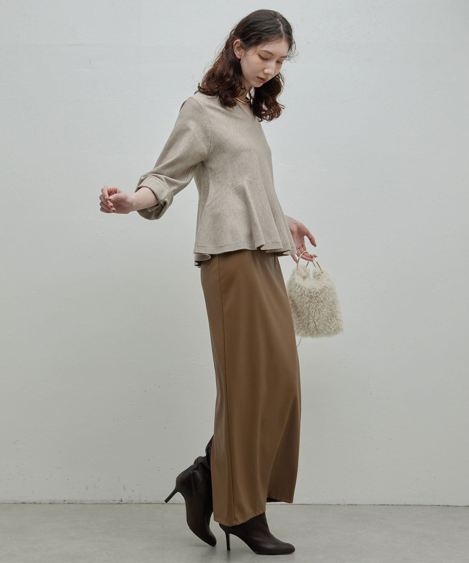 ●なめらかなハイゲージ素材で大人の上品さがあるペプラムニット。