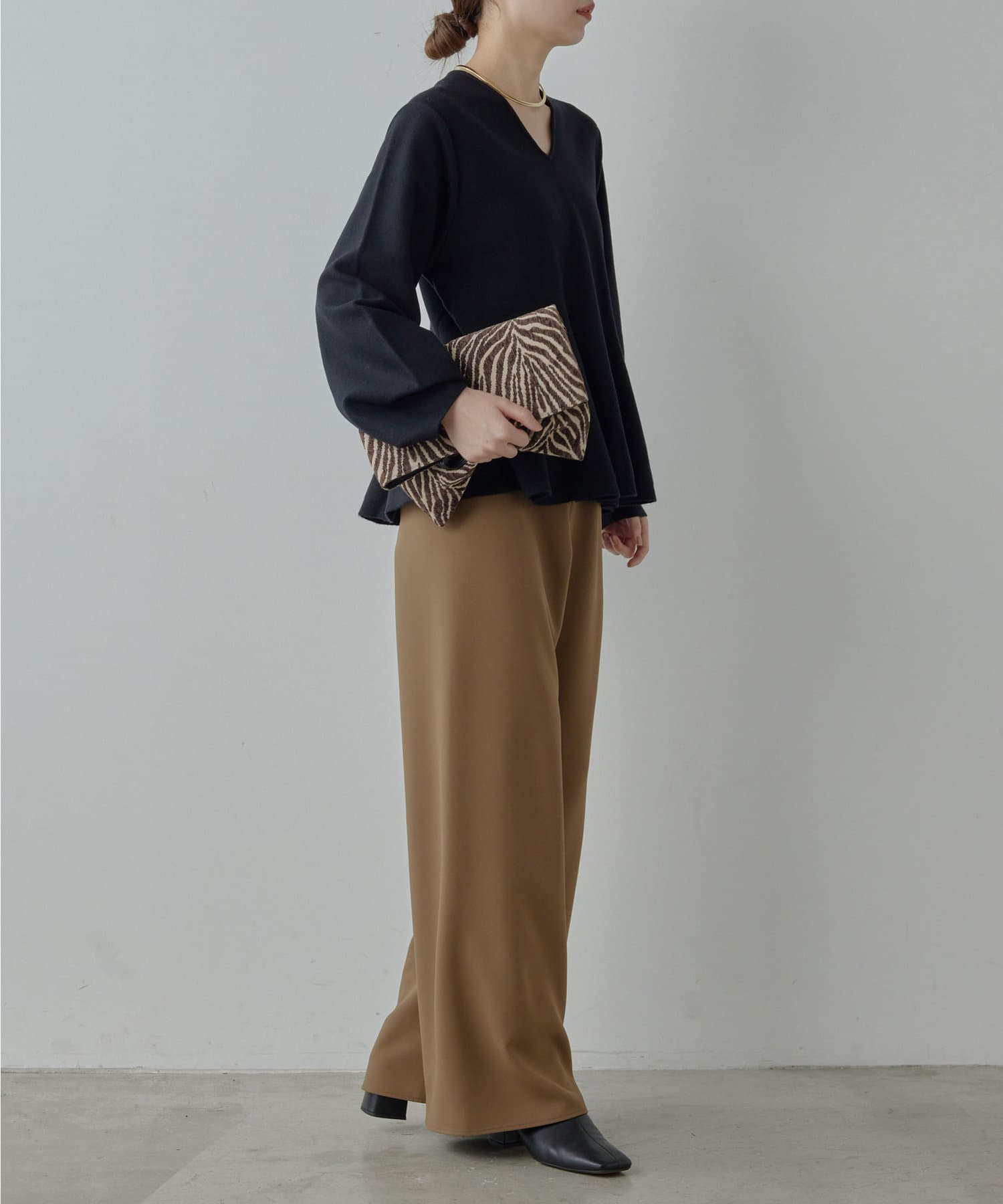 ●メリハリのあるペプラムデザインとVネックの開きが着やせ効果抜群!