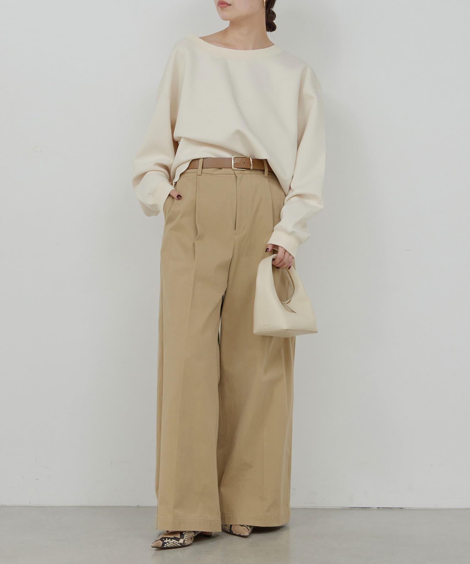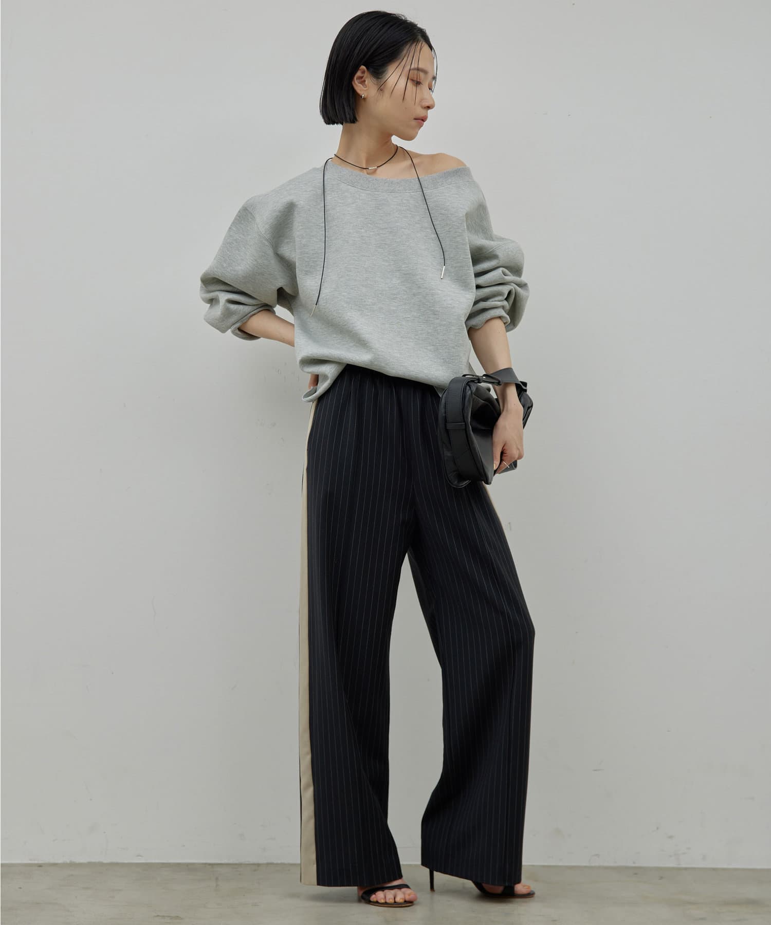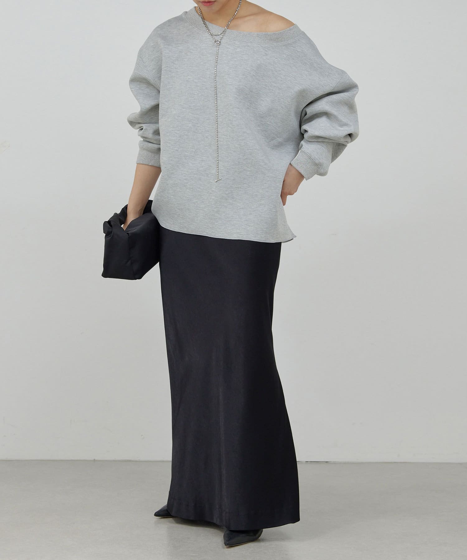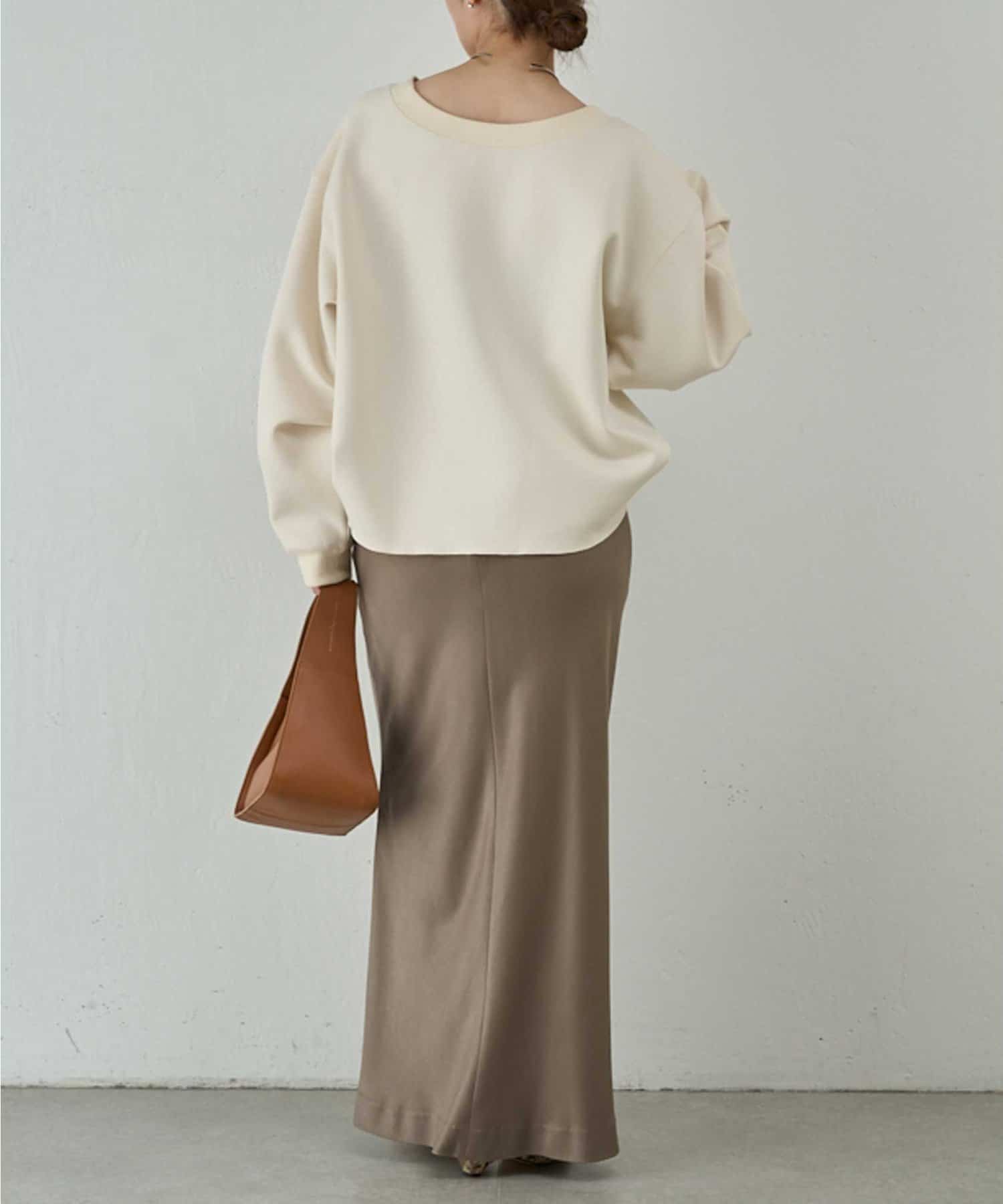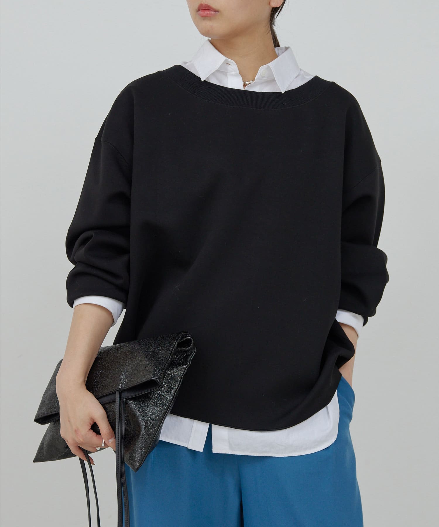 ●デコルテを綺麗に見せるボートネックで女性らしさと抜け感をプラス。