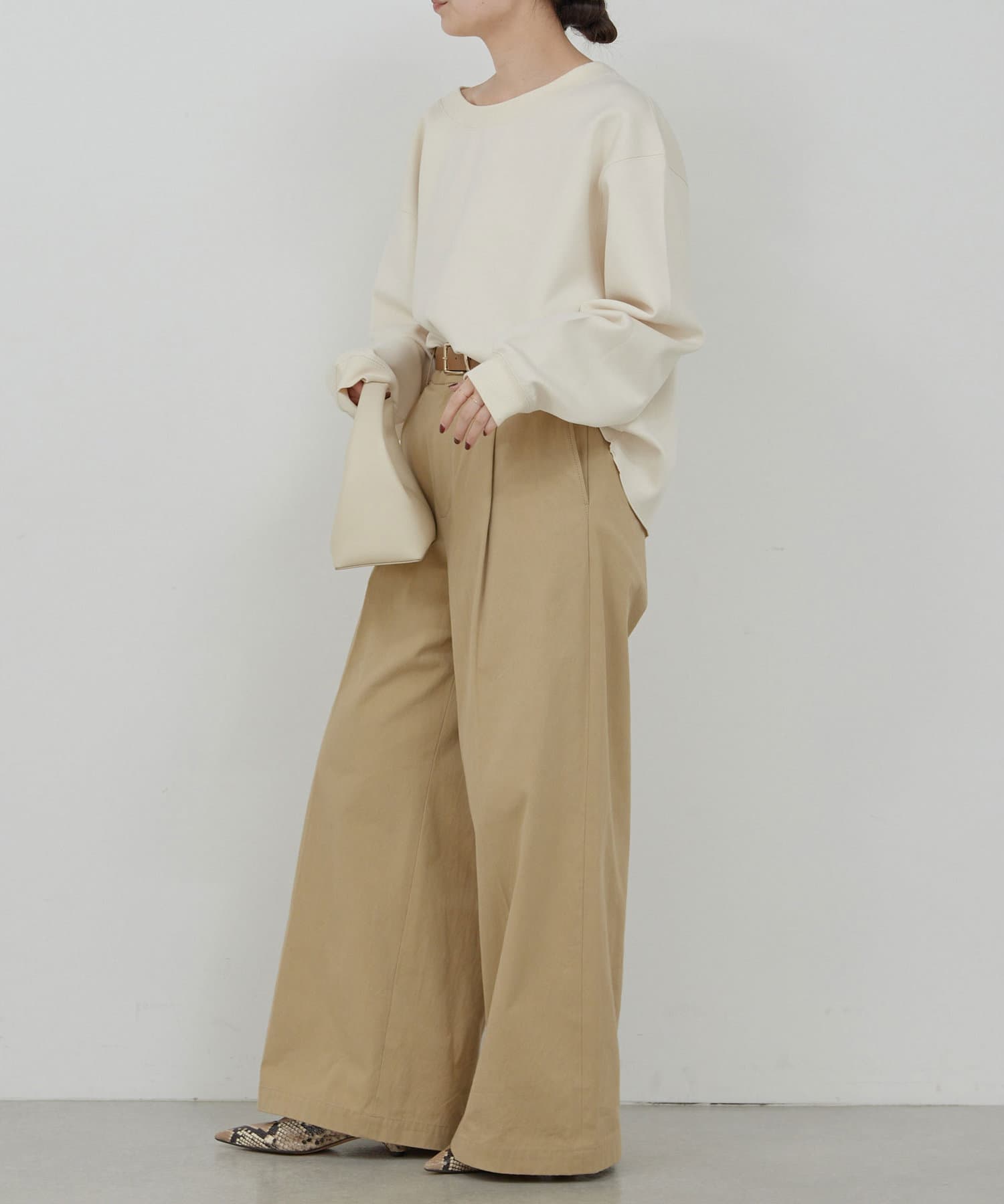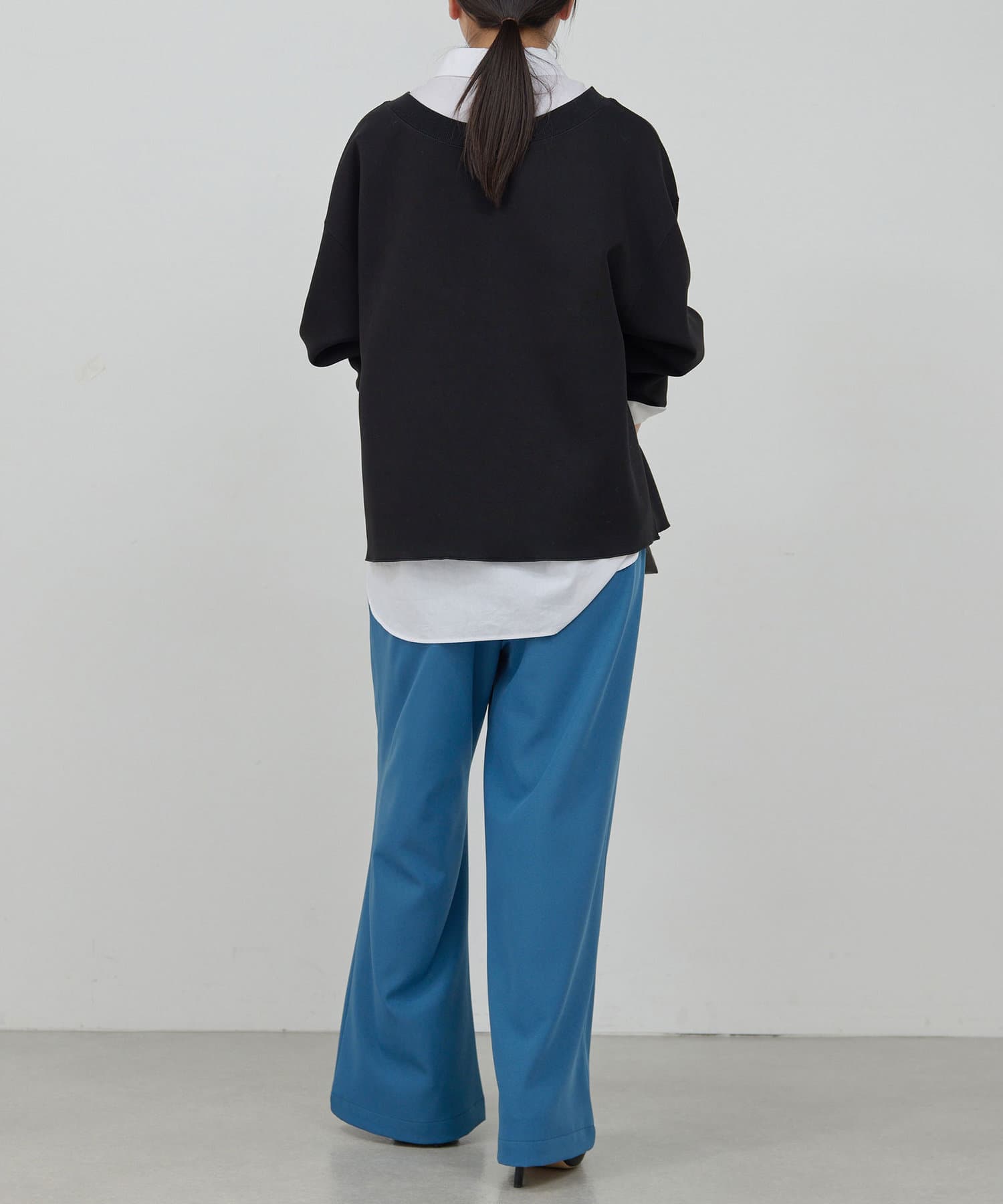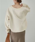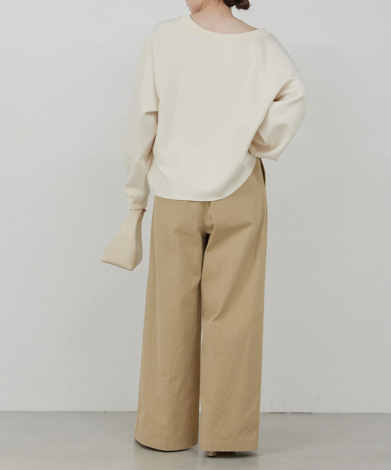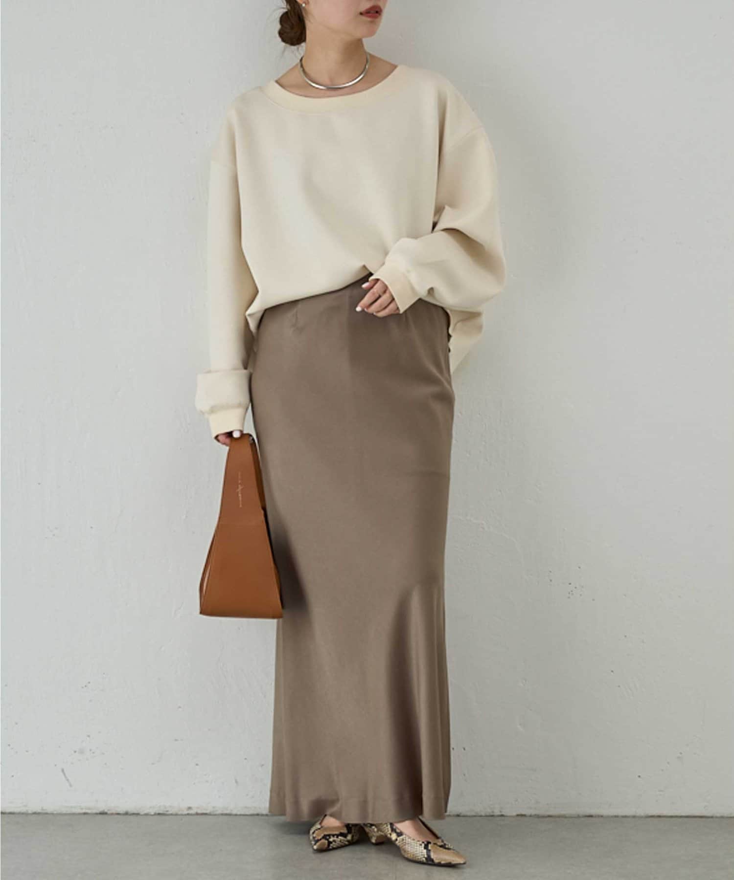 ●デコルテを綺麗に見せるボートネックで女性らしさと抜け感をプラス。