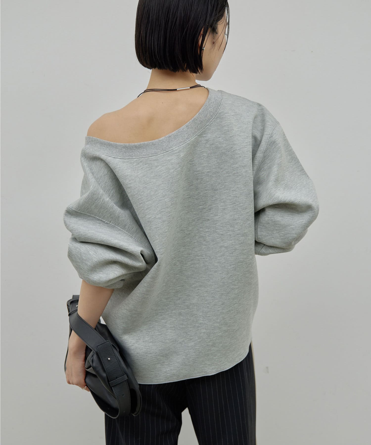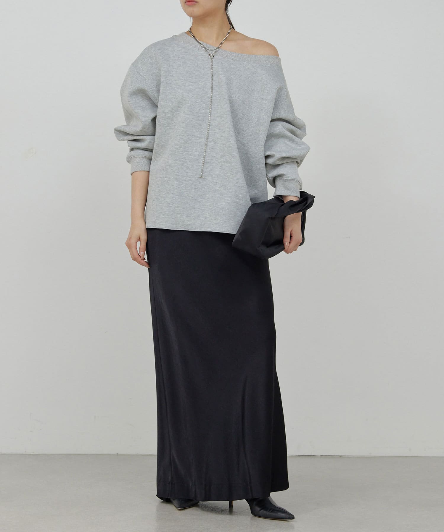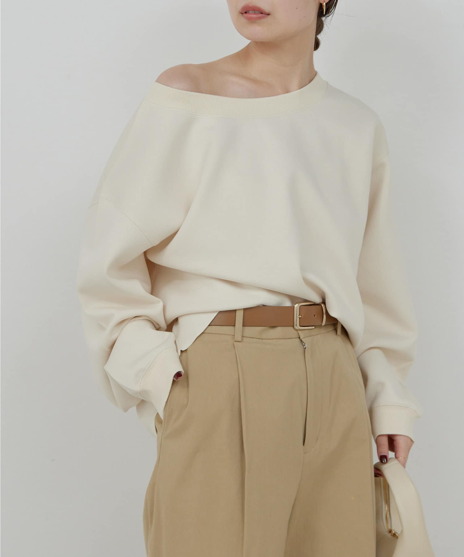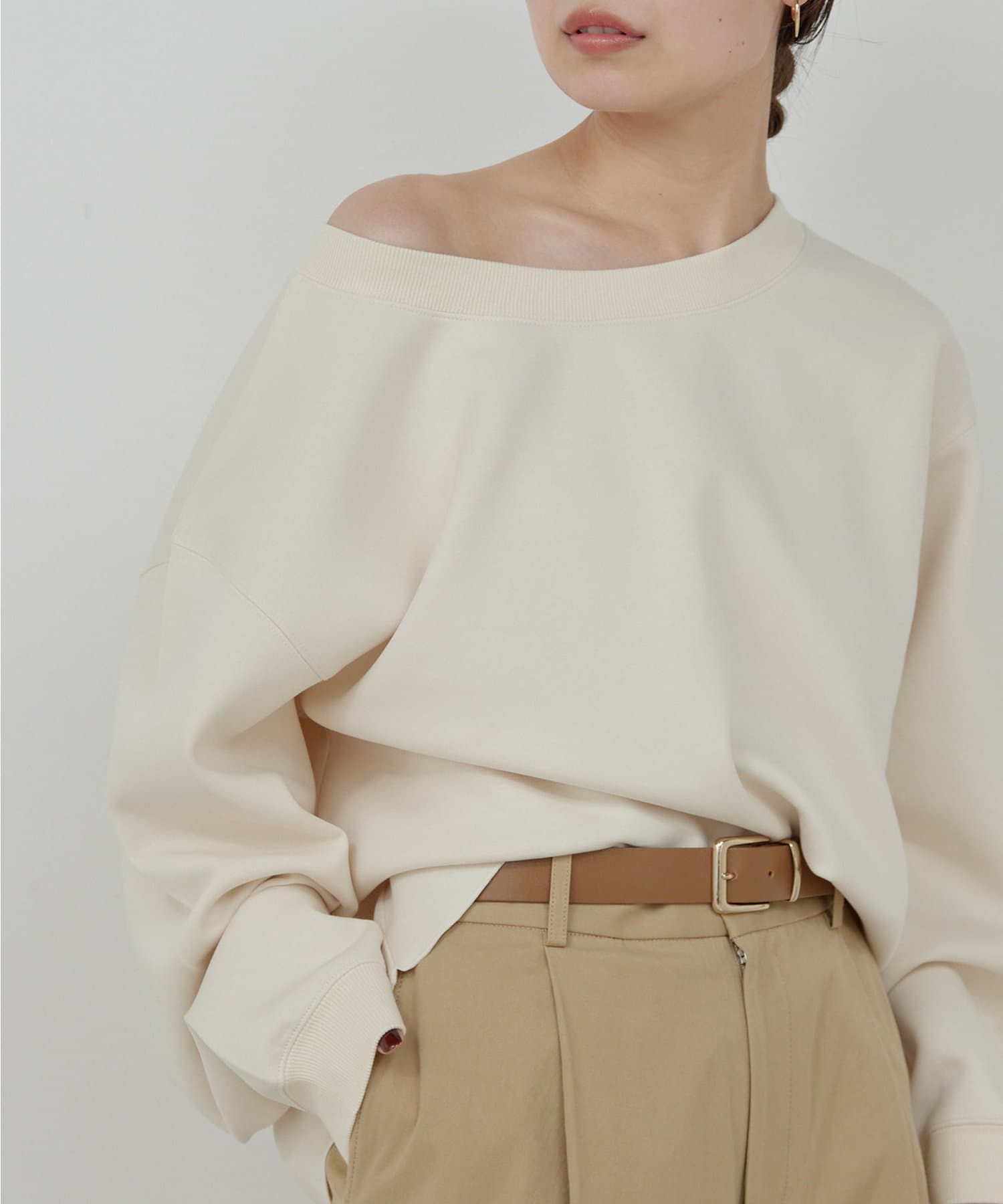 ●肩を抜いてオフショルダーやワンショルダーにした着こなしもおすすめ。