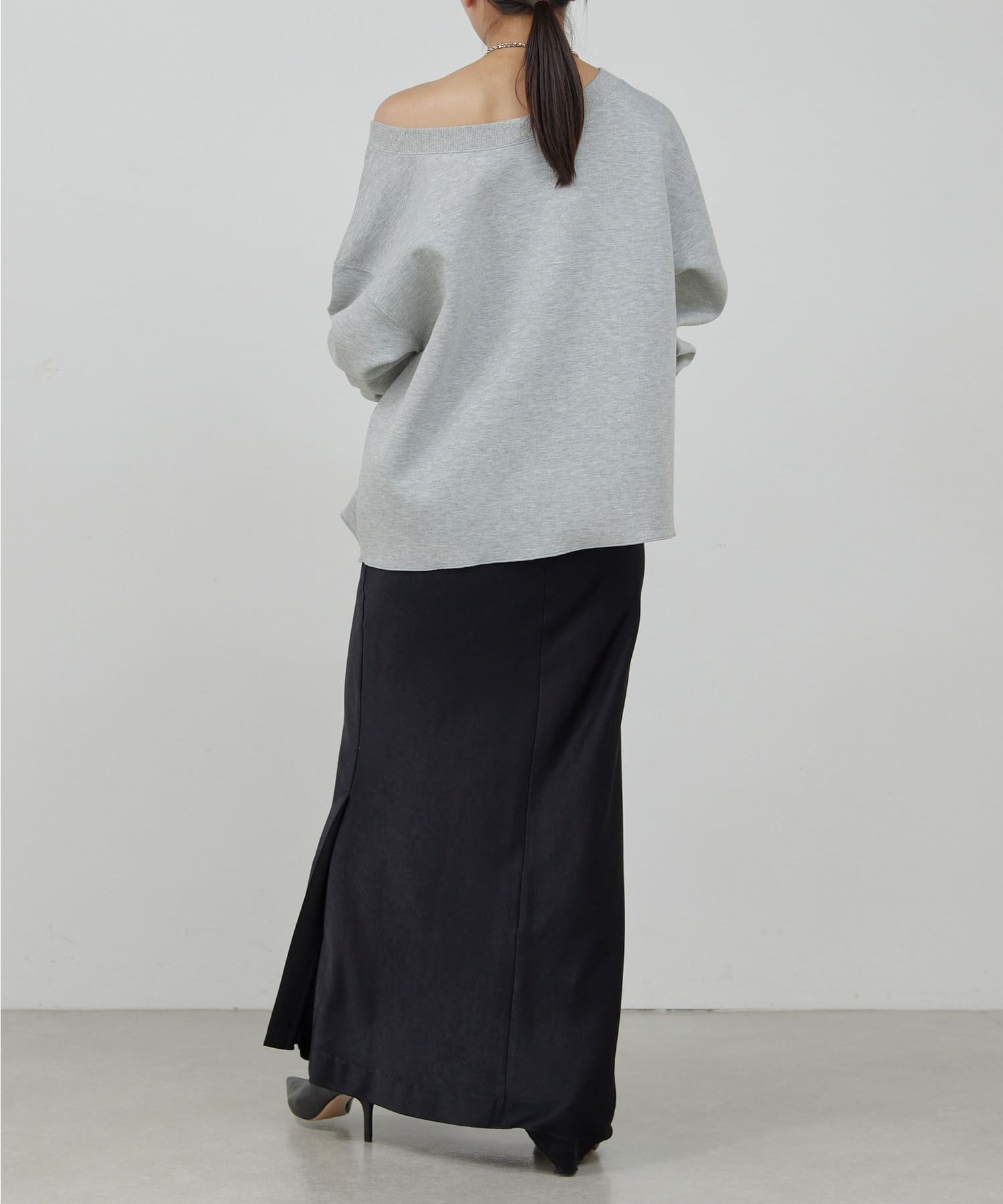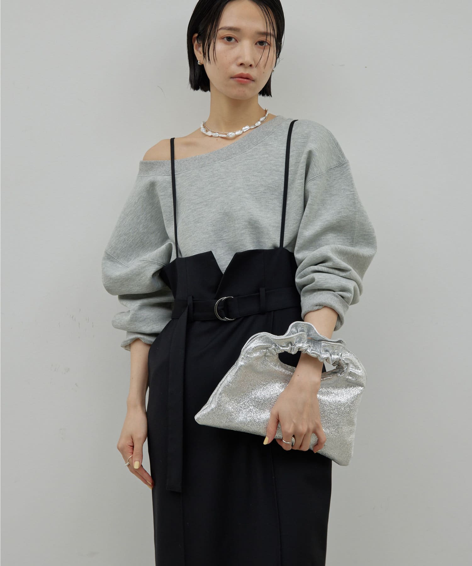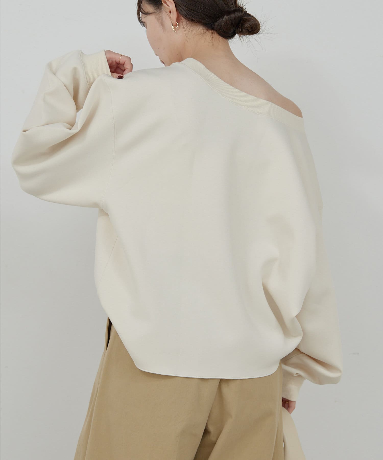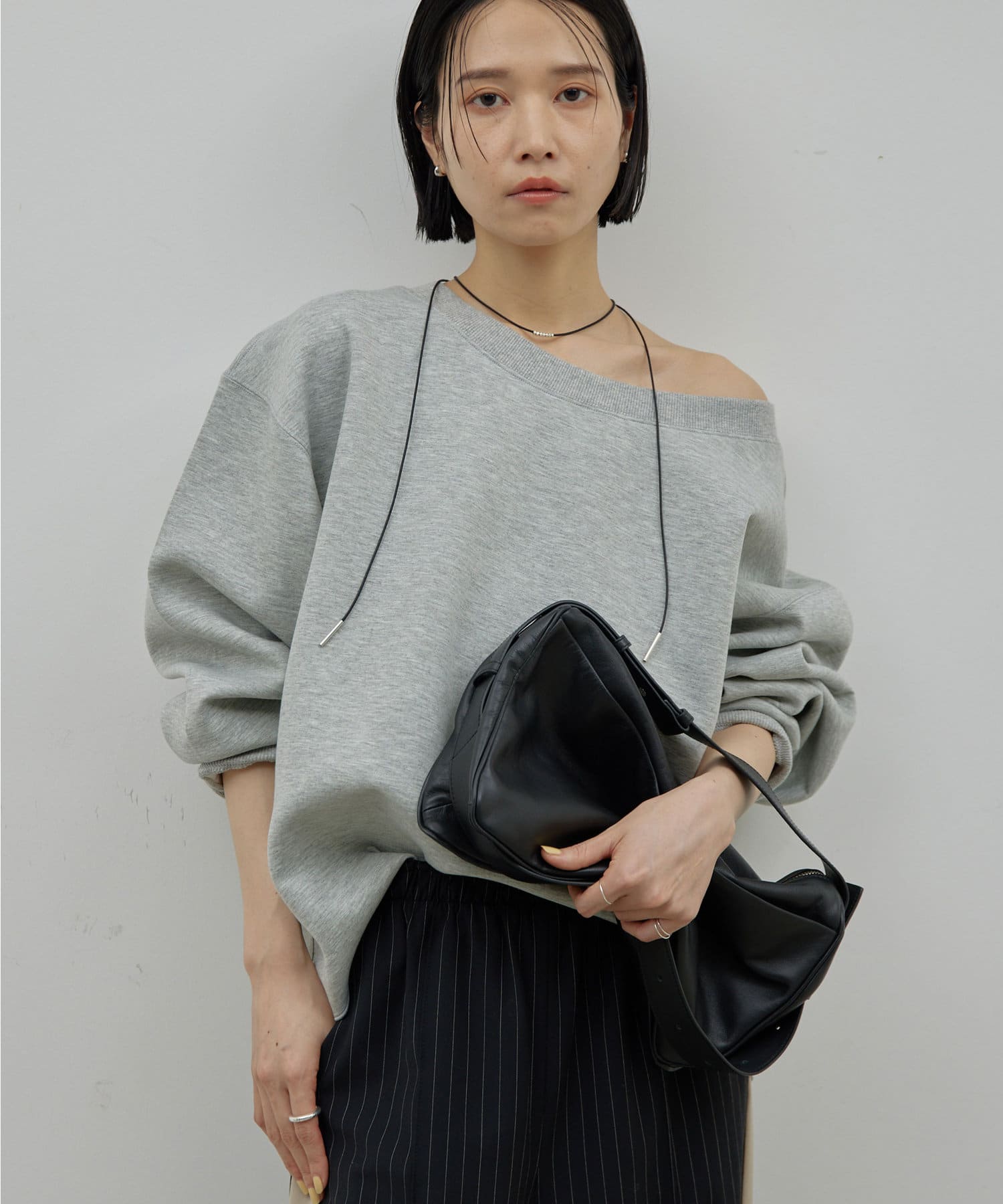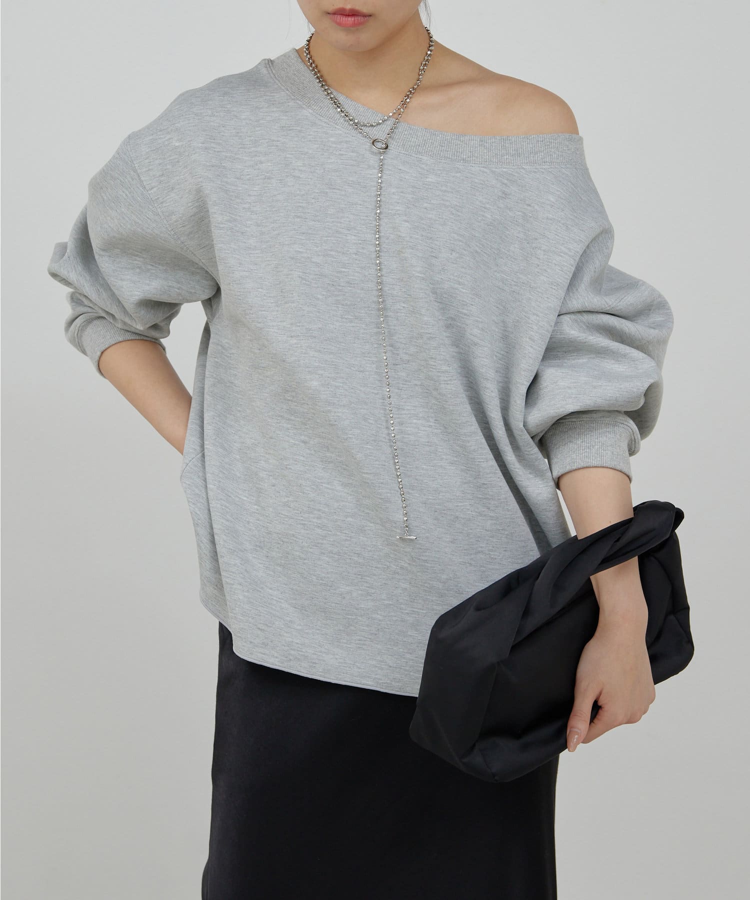 ●肩を抜いてオフショルダーやワンショルダーにした着こなしもおすすめ。