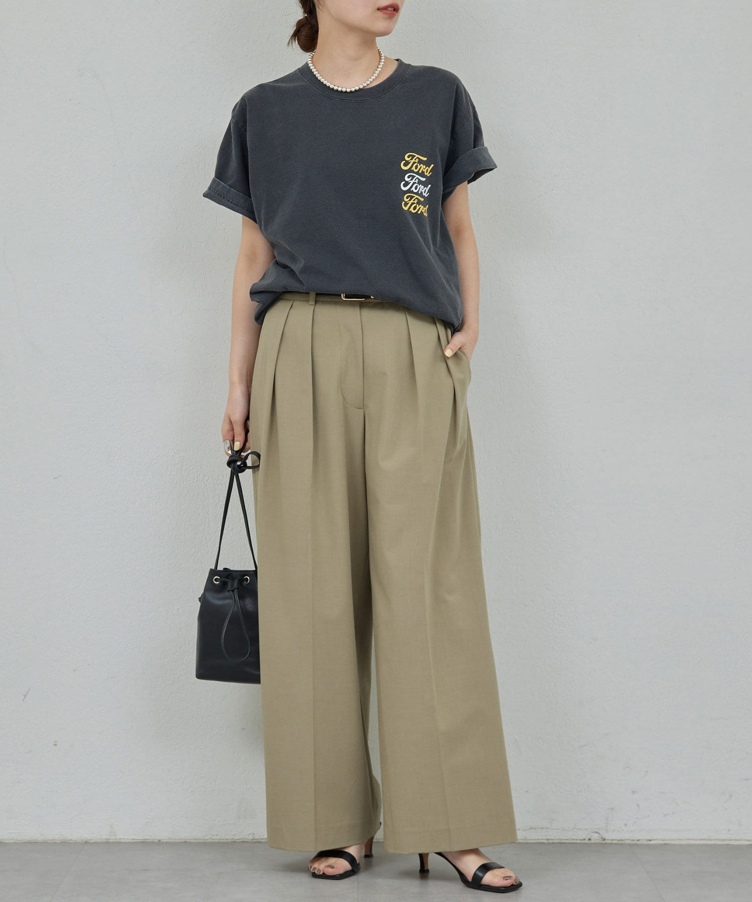 ●ダブルタックデザインがマニッシュな印象に。