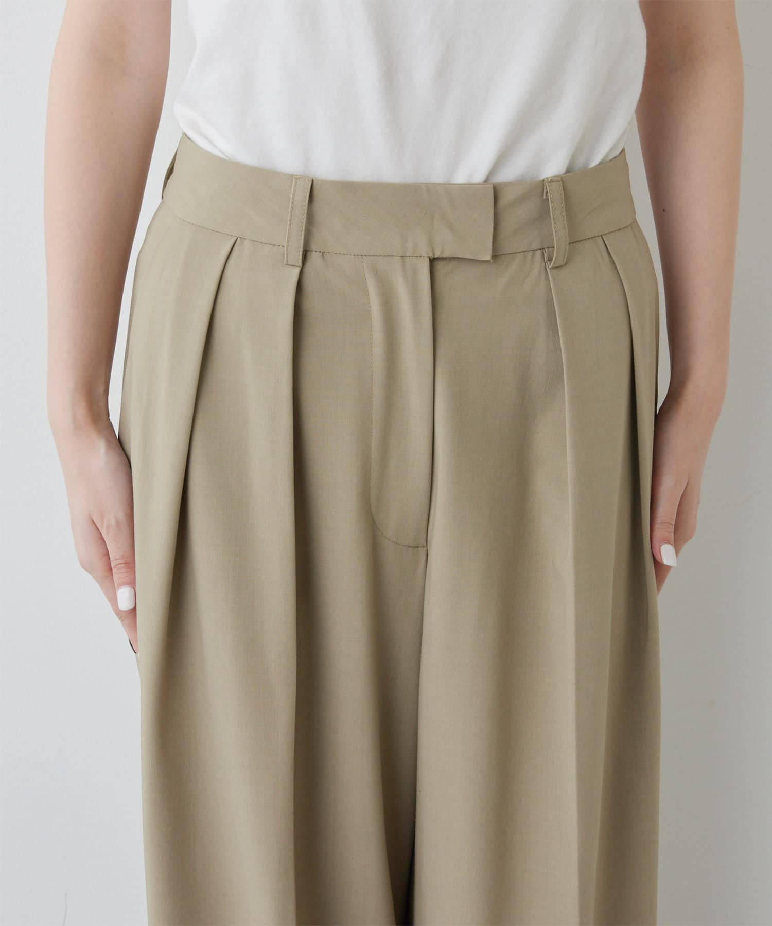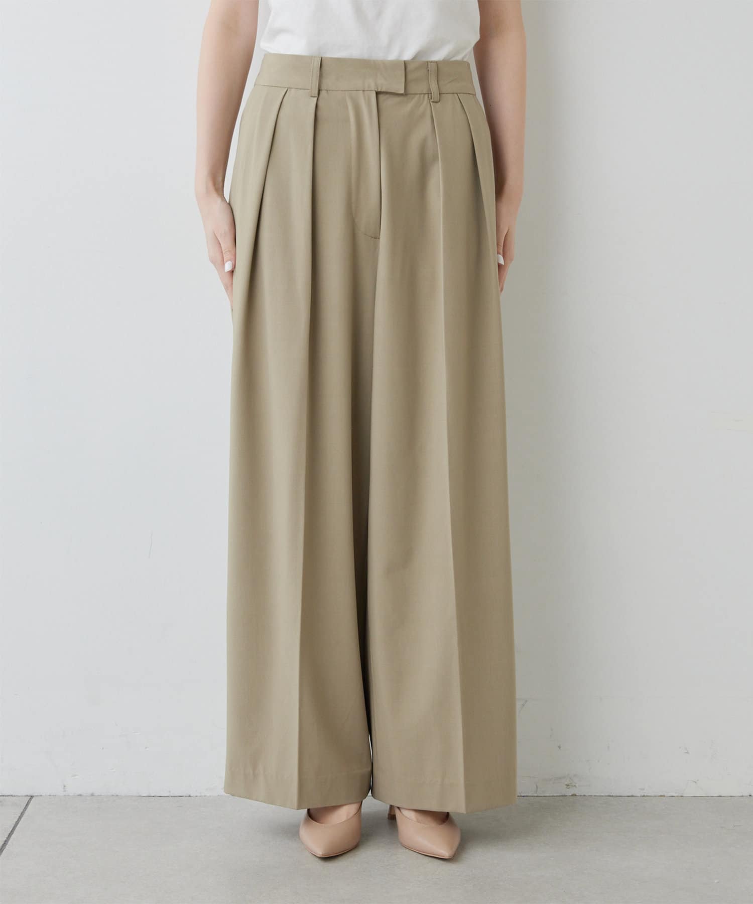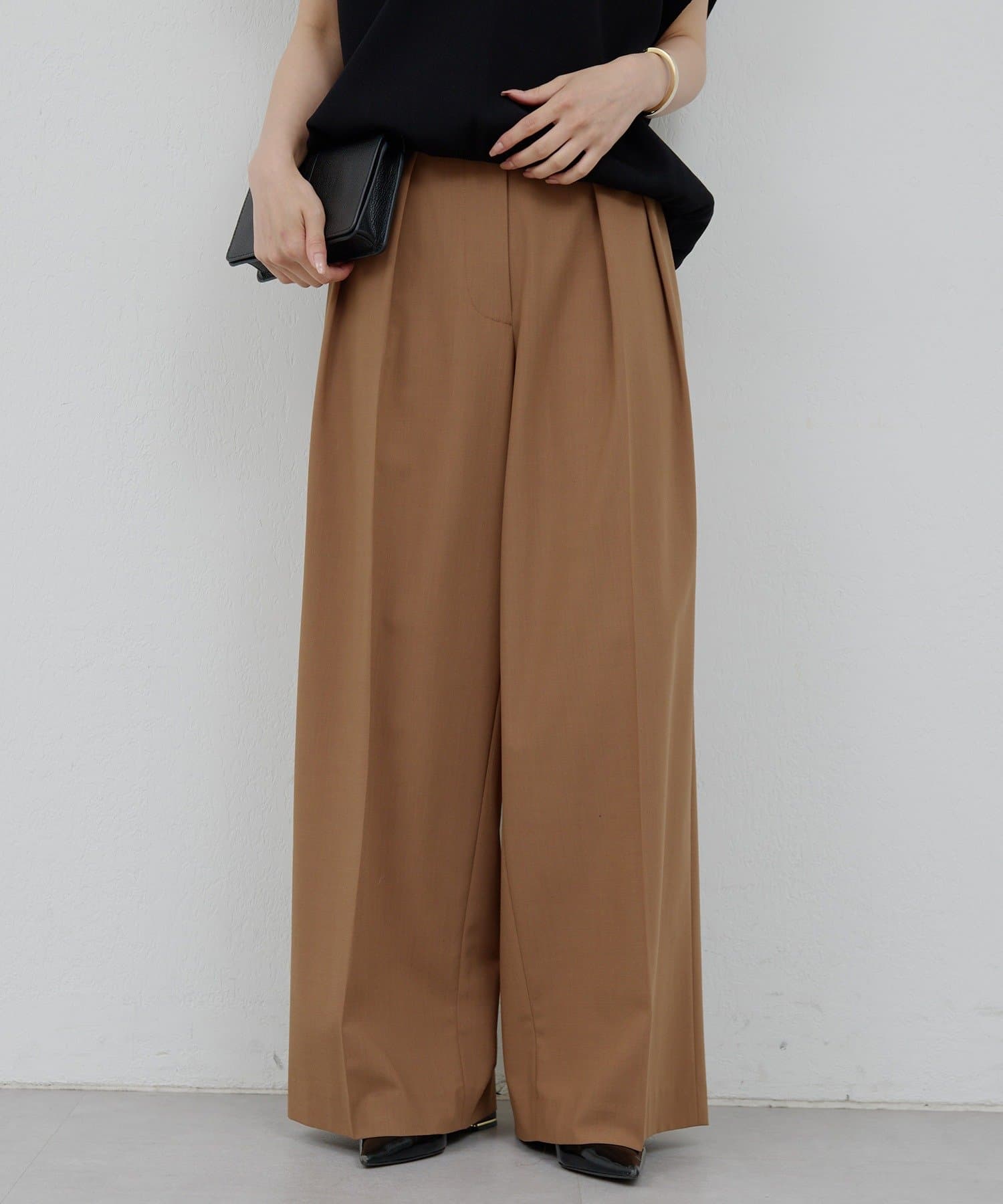 ●1点投入でこなれるタック入りスラックスパンツ。