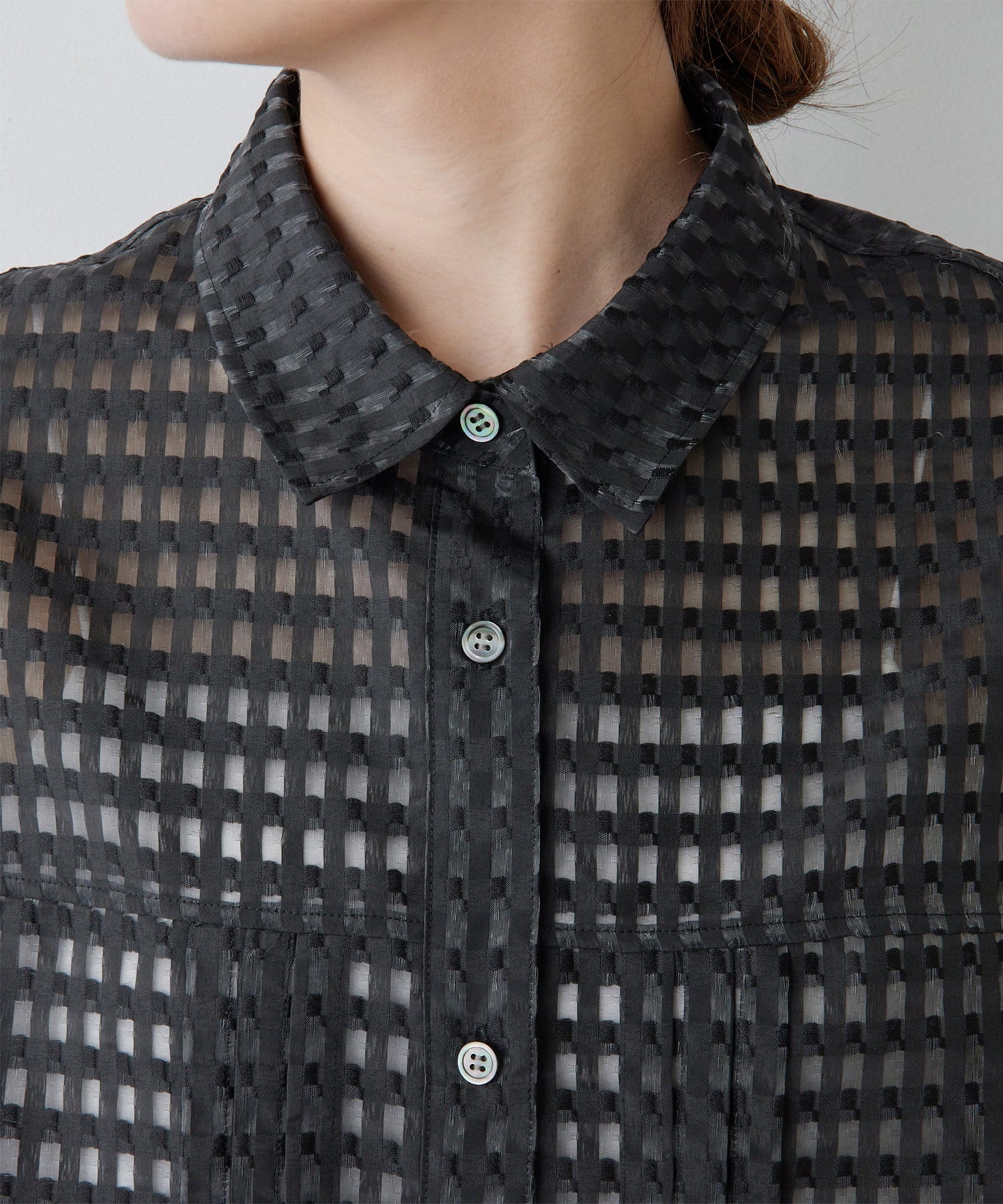 ●ギンガムチェックが目を惹くボリュームシャツ。