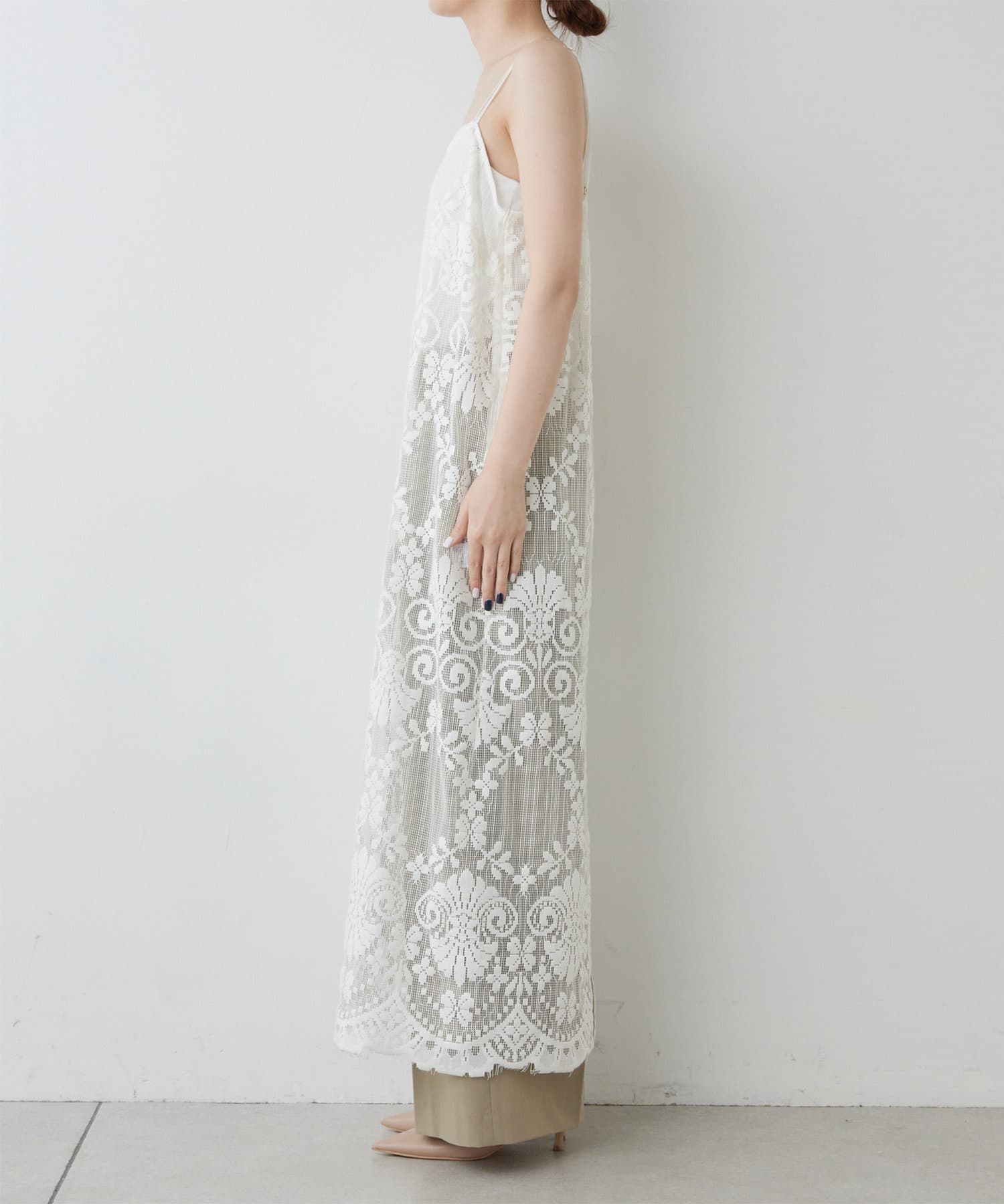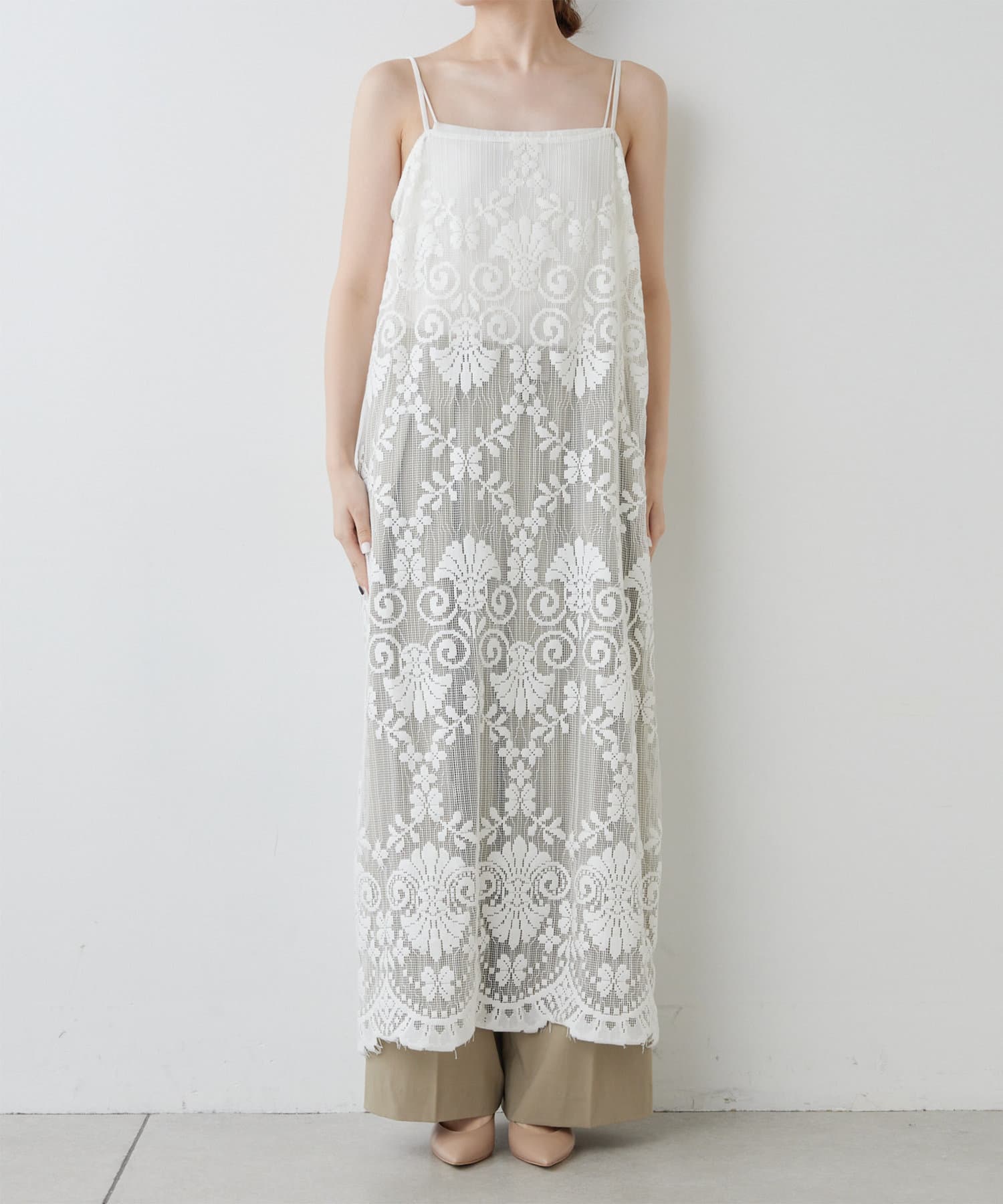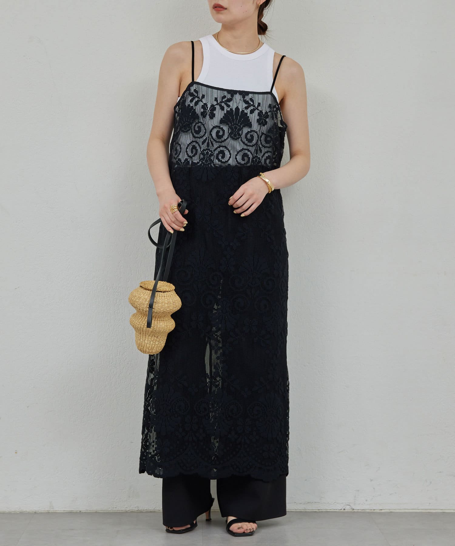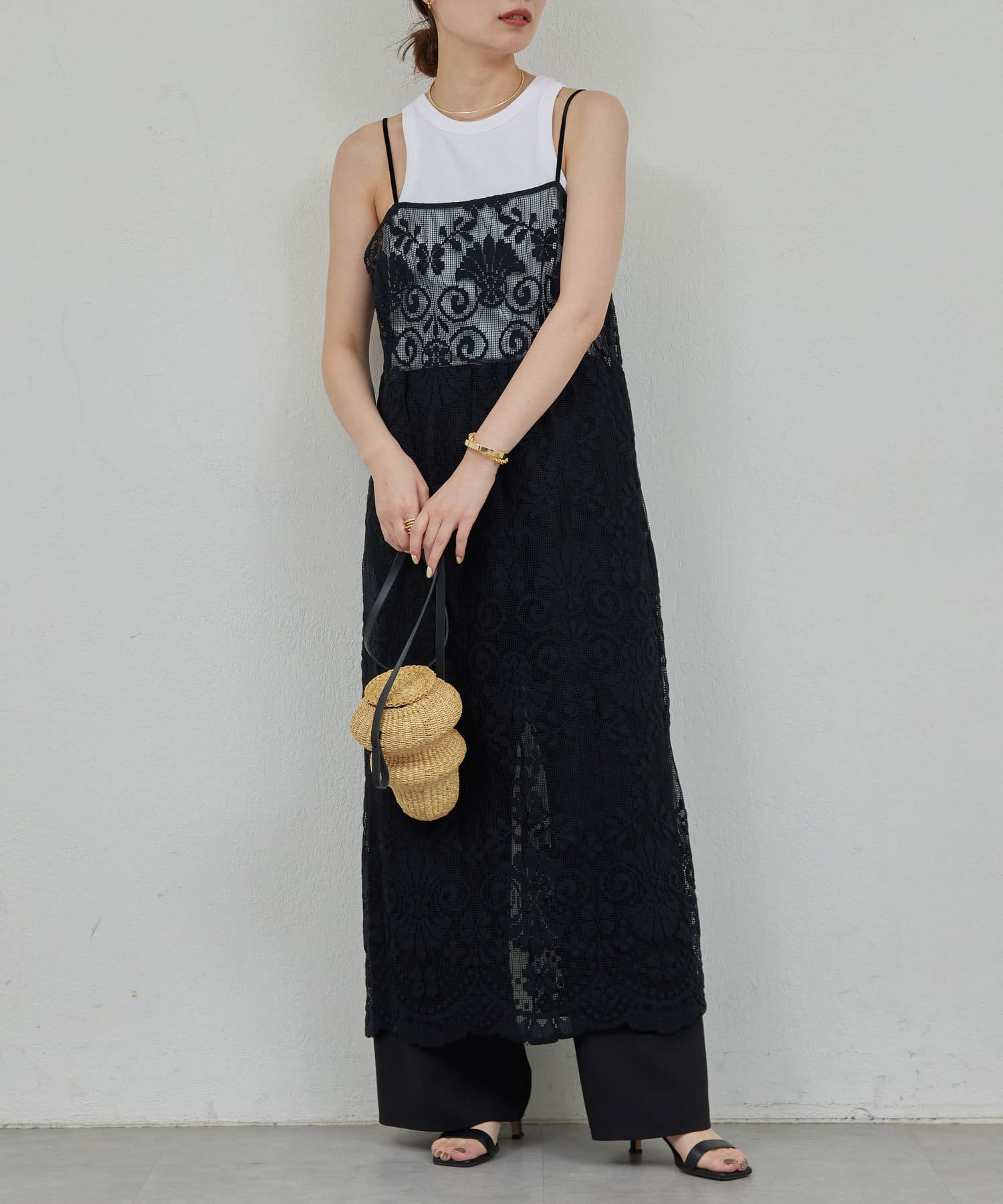 今年らしいレイヤードスタイルが完成するレースワンピース