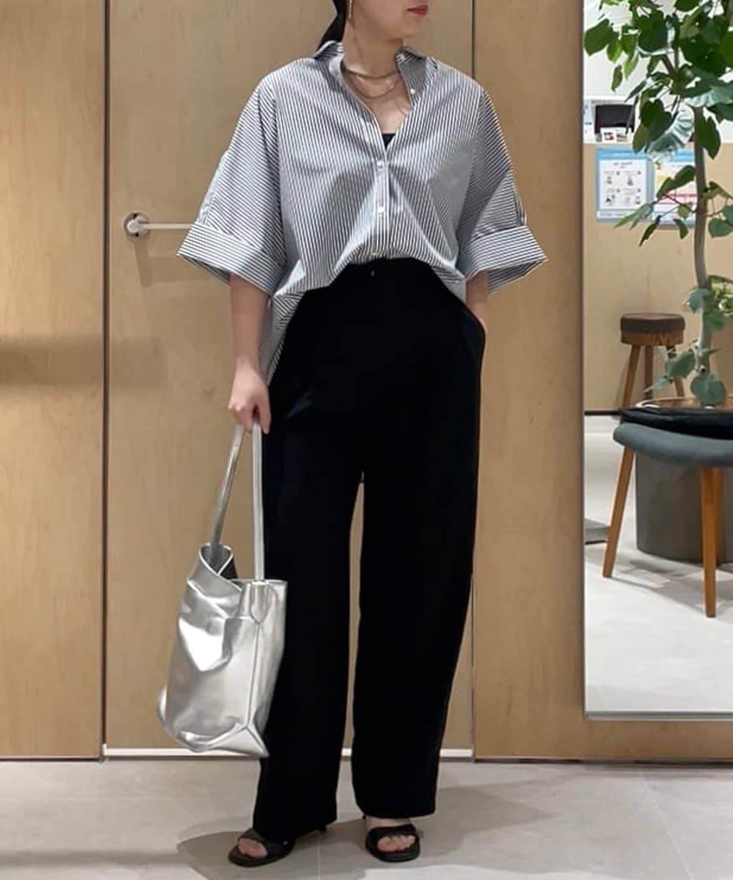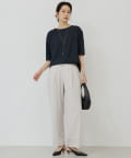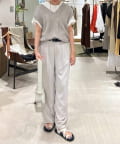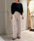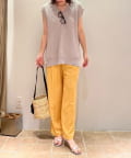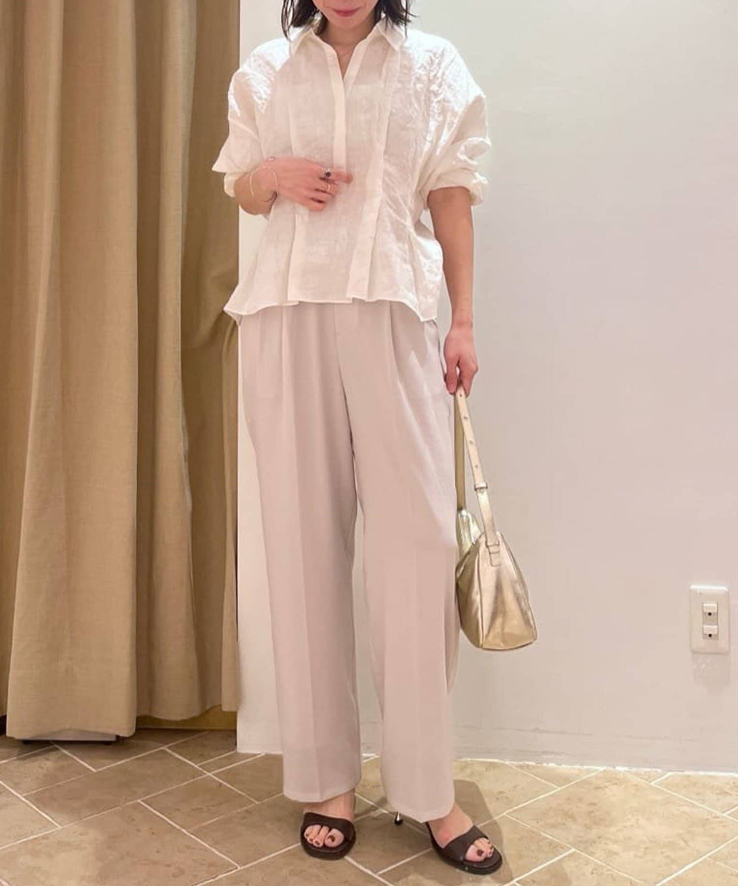 購入場所:店舗同素材のテーパードパンツが気に入りヘビロテしている為こちらも購入。涼しげなのはそのまま形が綺麗〜。もうこれから夏のパンツはコレと決めました。
