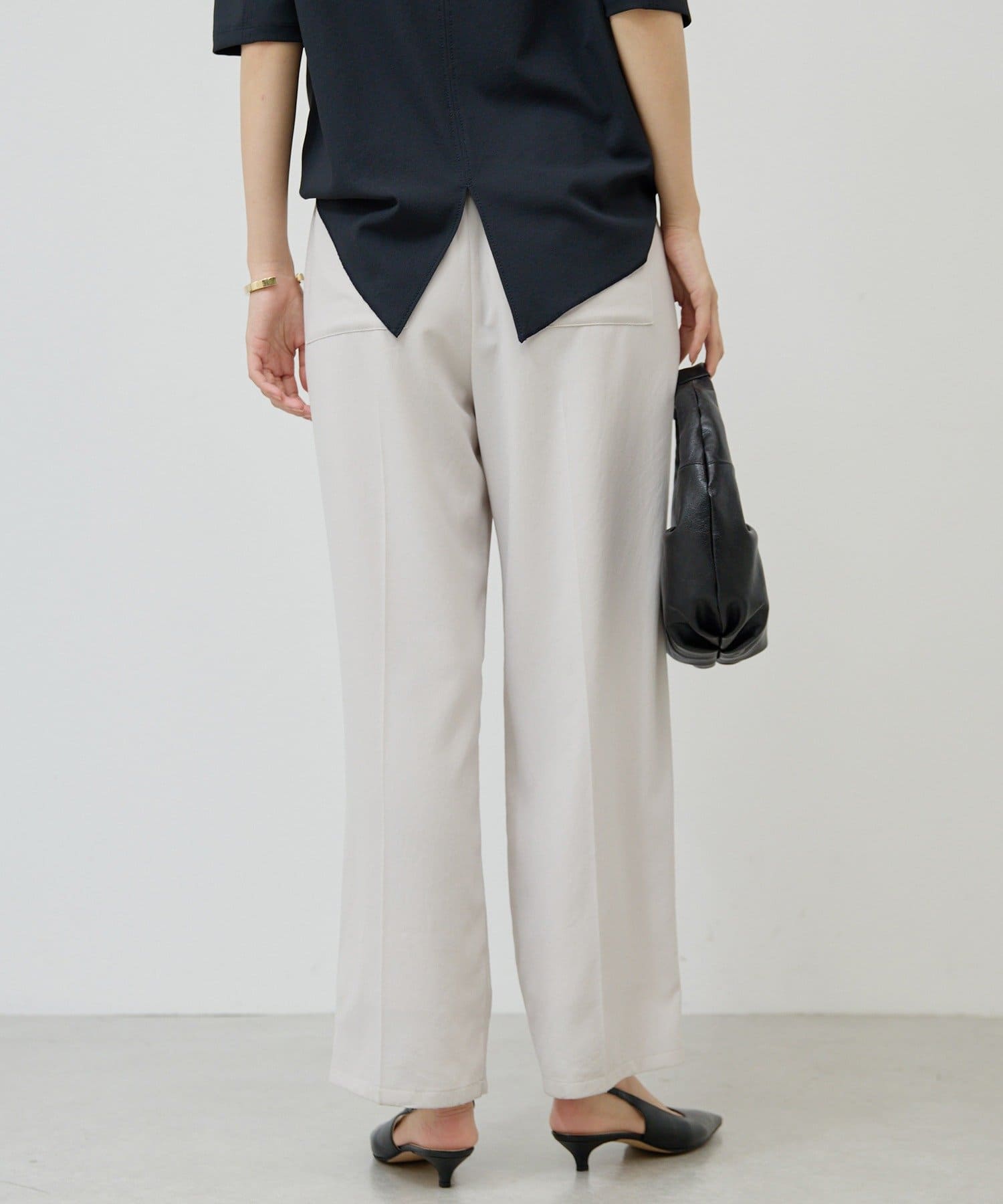 ●ウエストは後ろのみゴム仕様で、フロントの見え感はキープしつつラクチンな穿き心地。