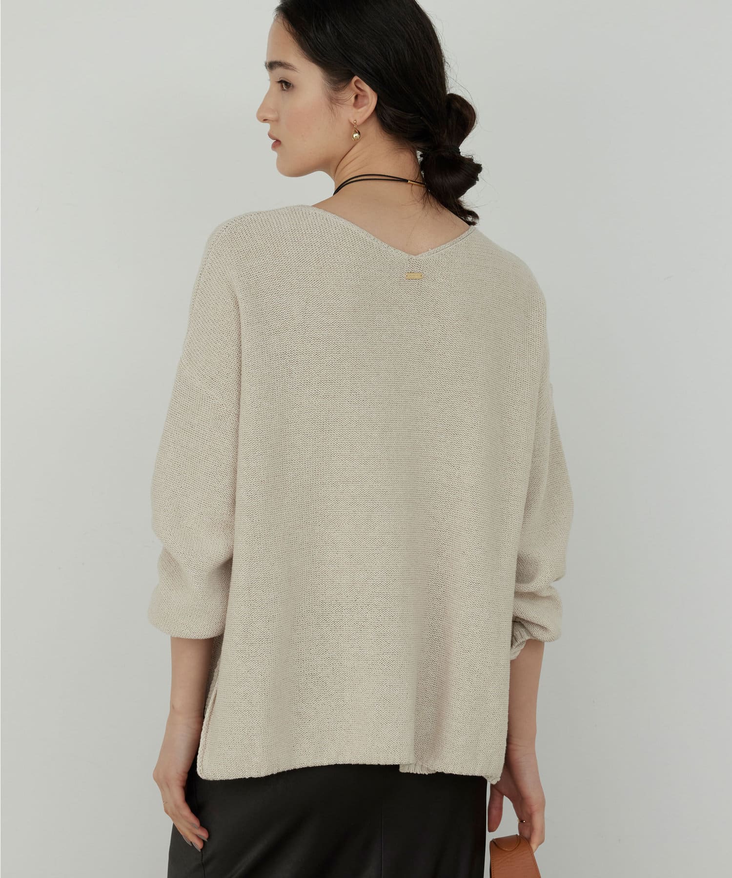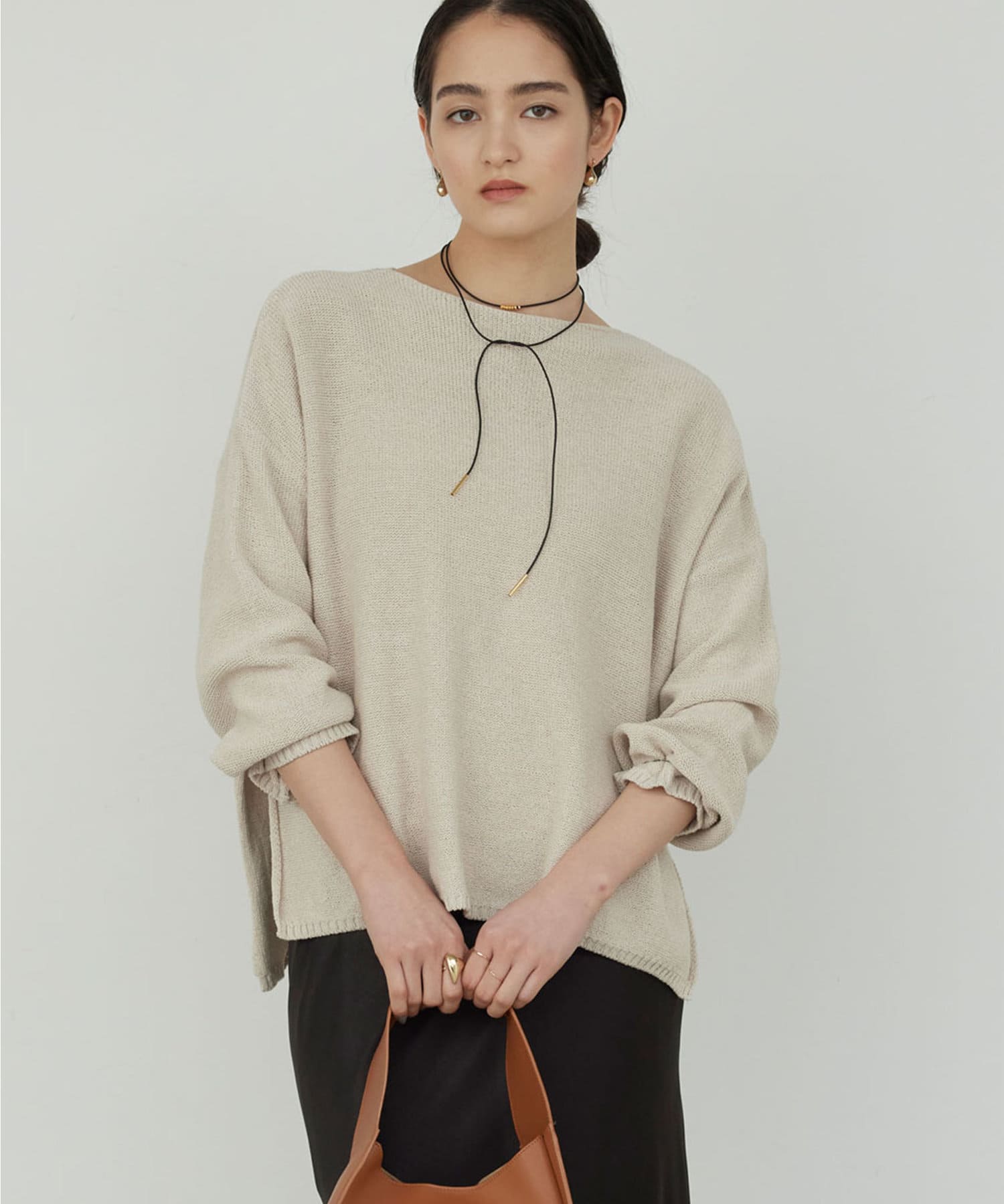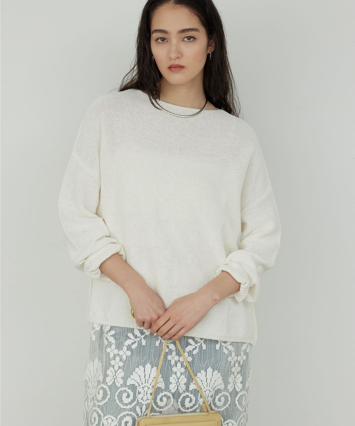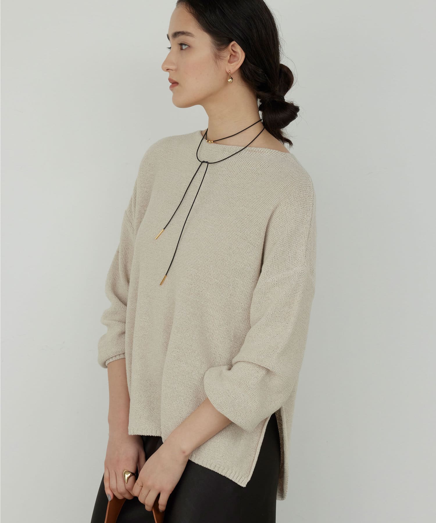 ●コットンリネンの清涼感のある素材を使用したラグランニット。
