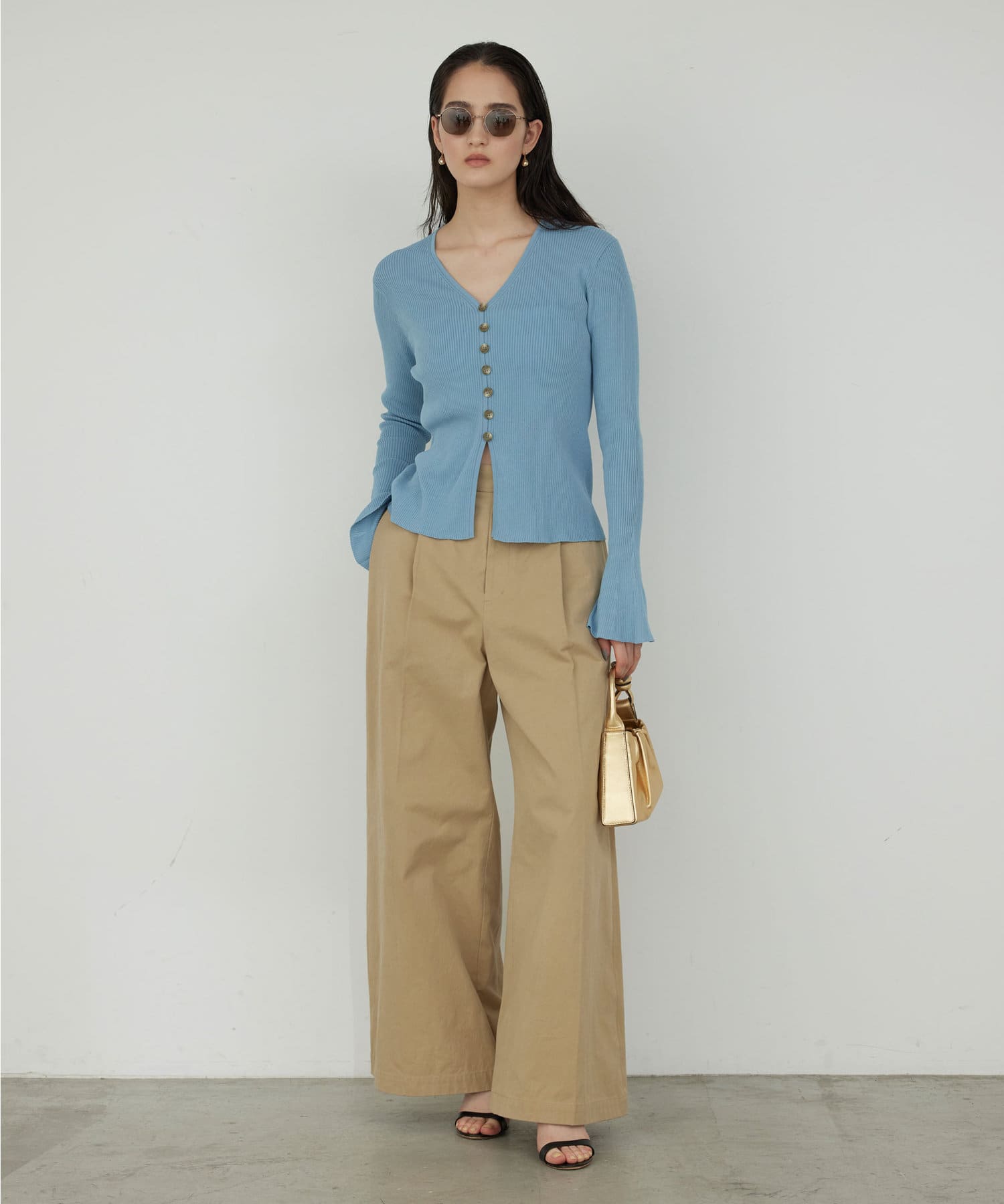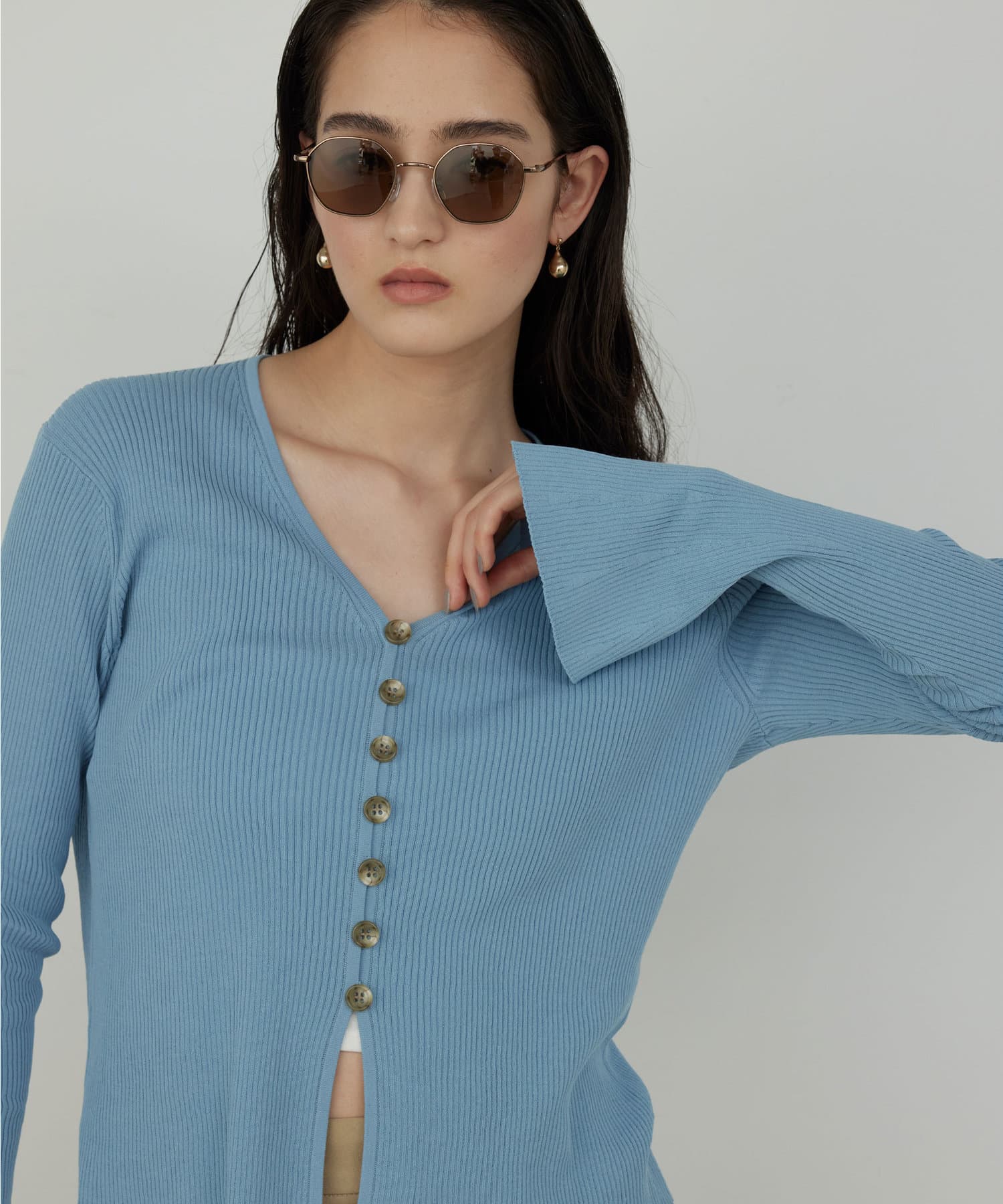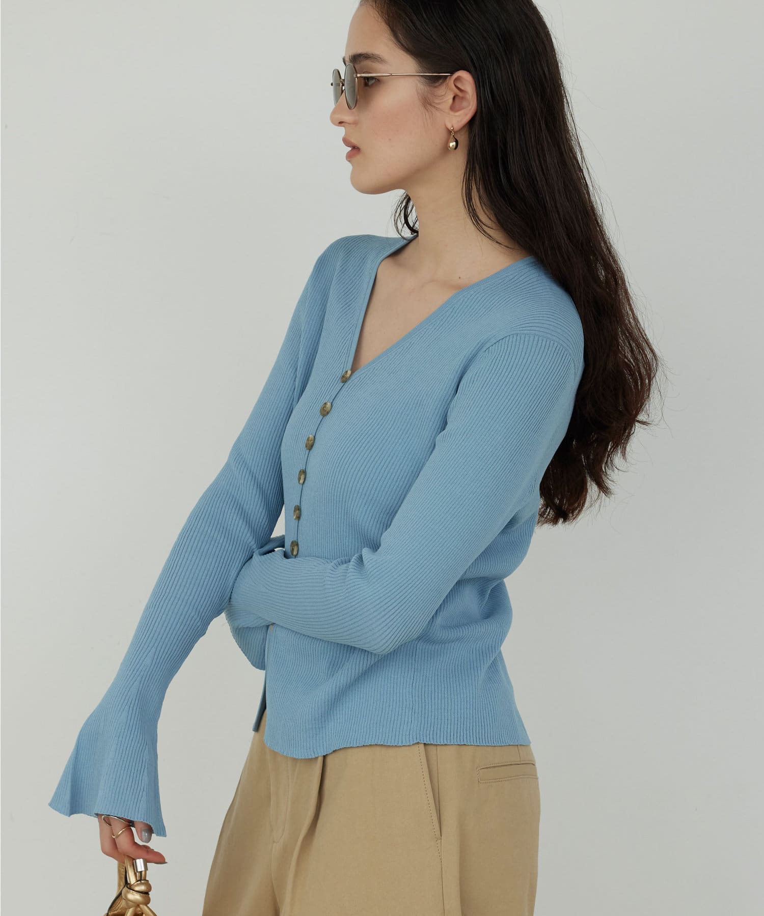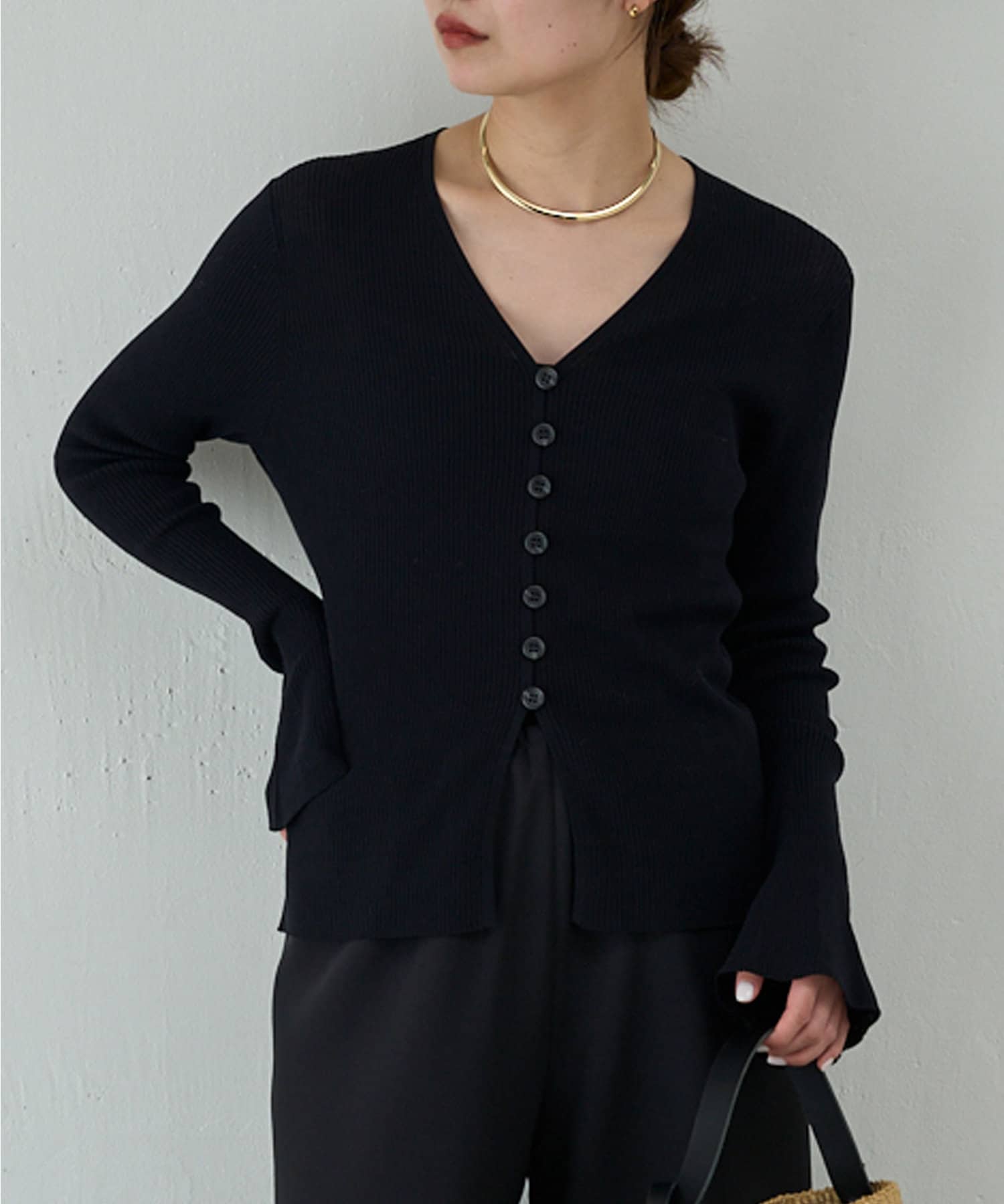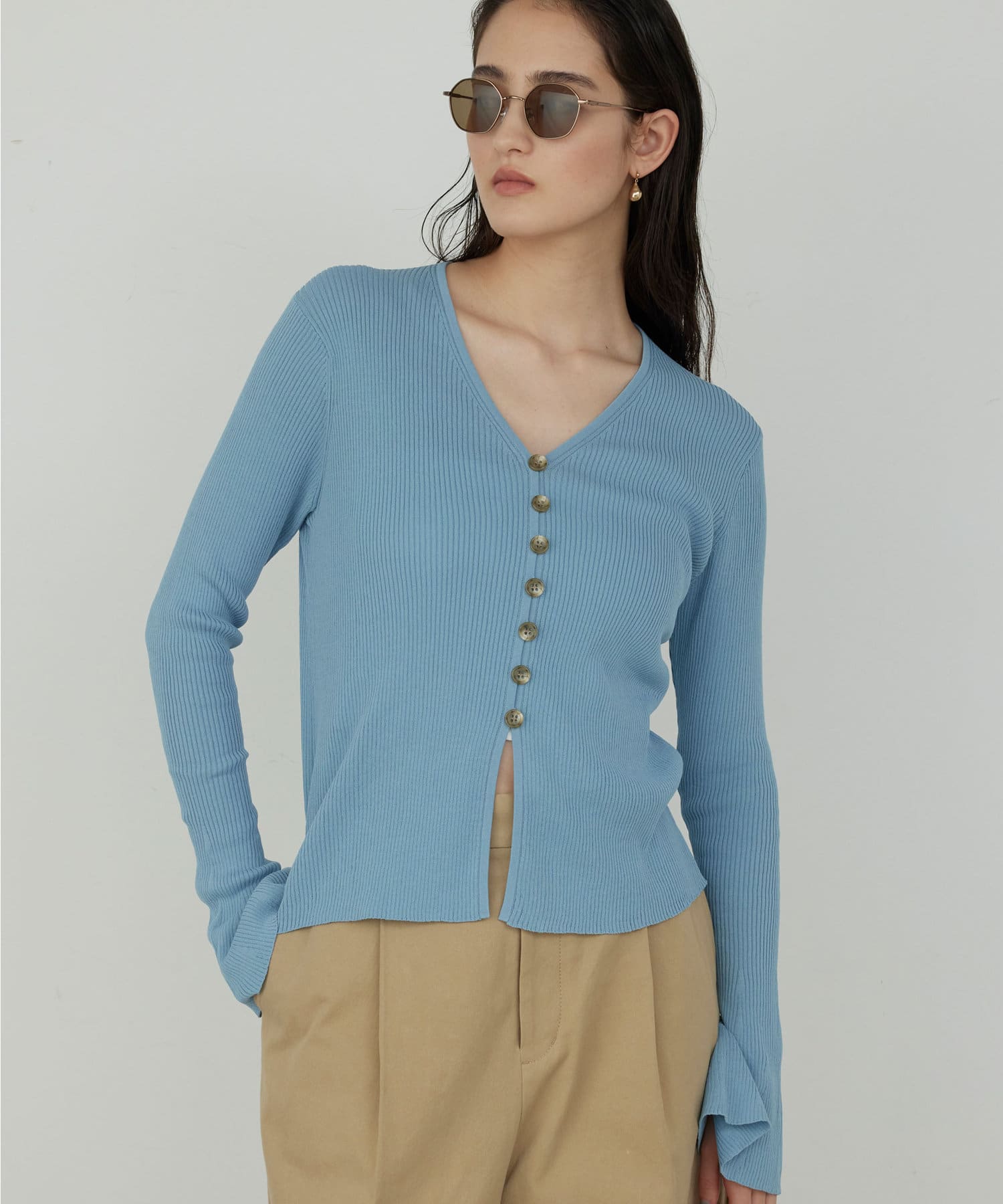 ベルスリーブリブカーディガン