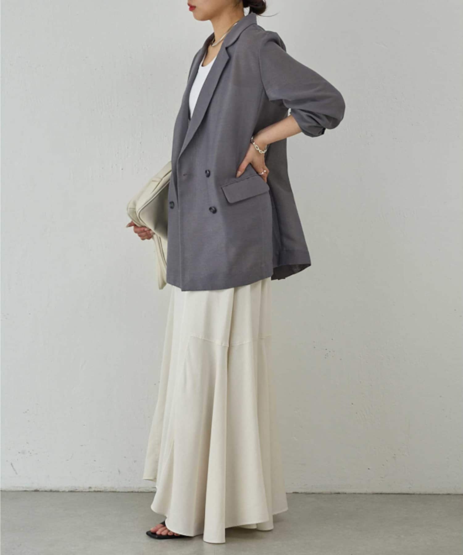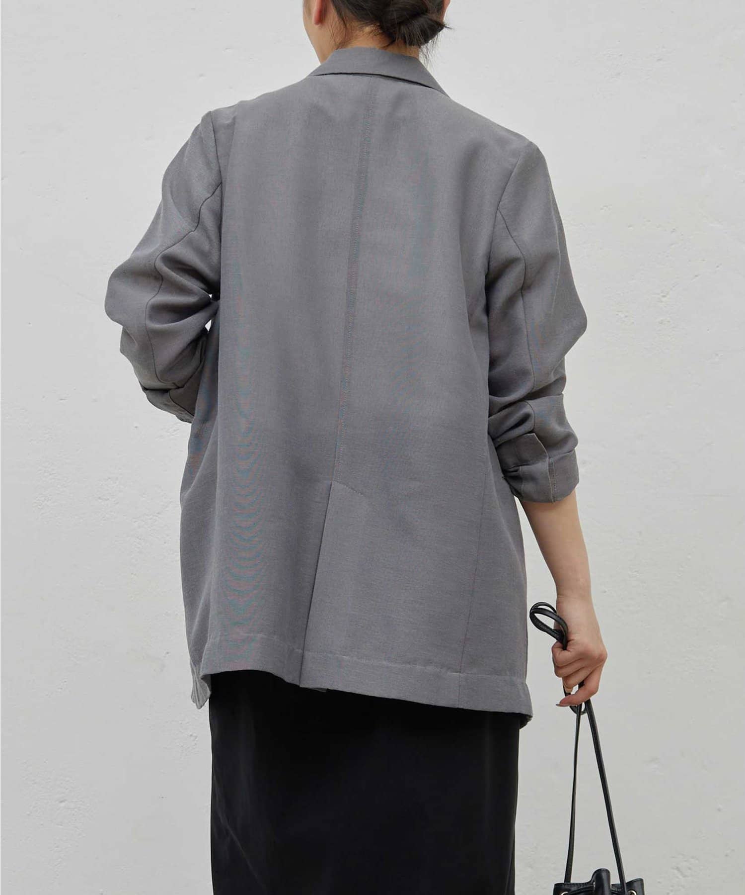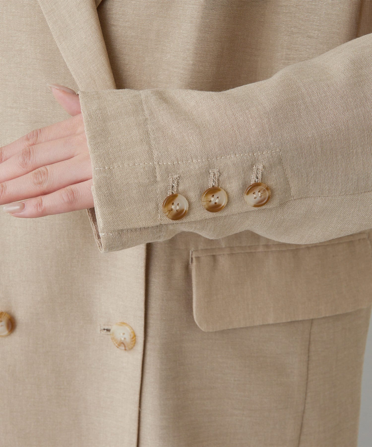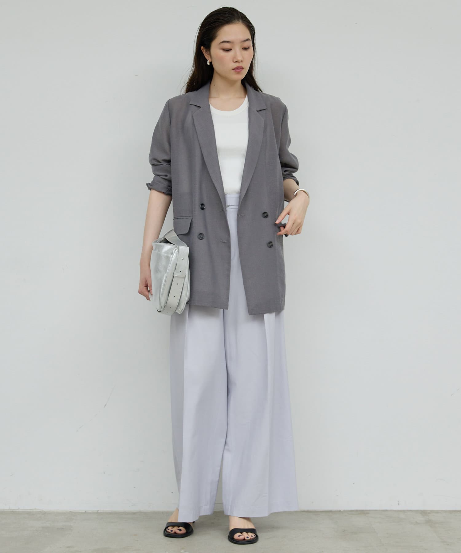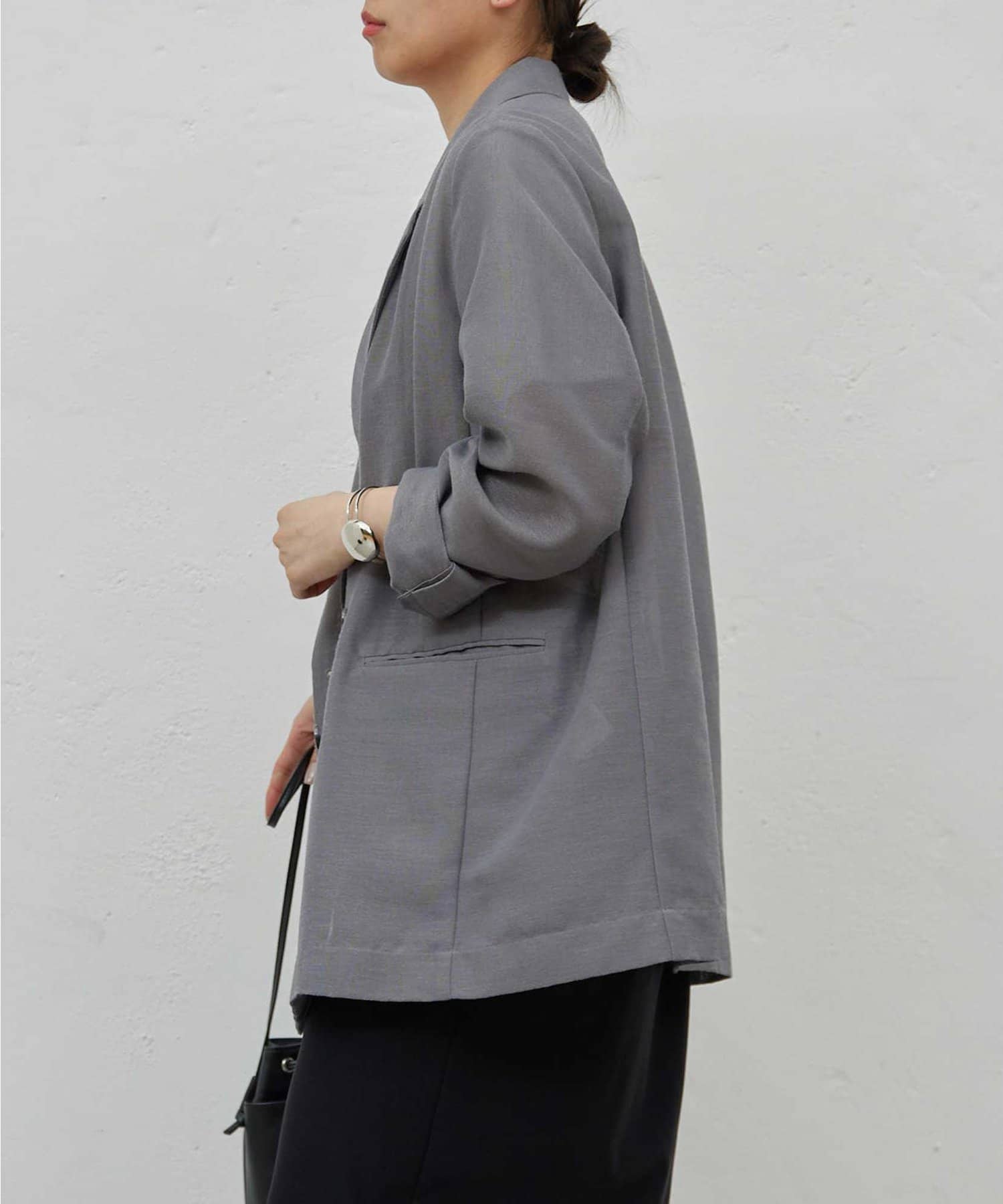 ●ダブルブレストでマニッシュな印象のシアージャケット。