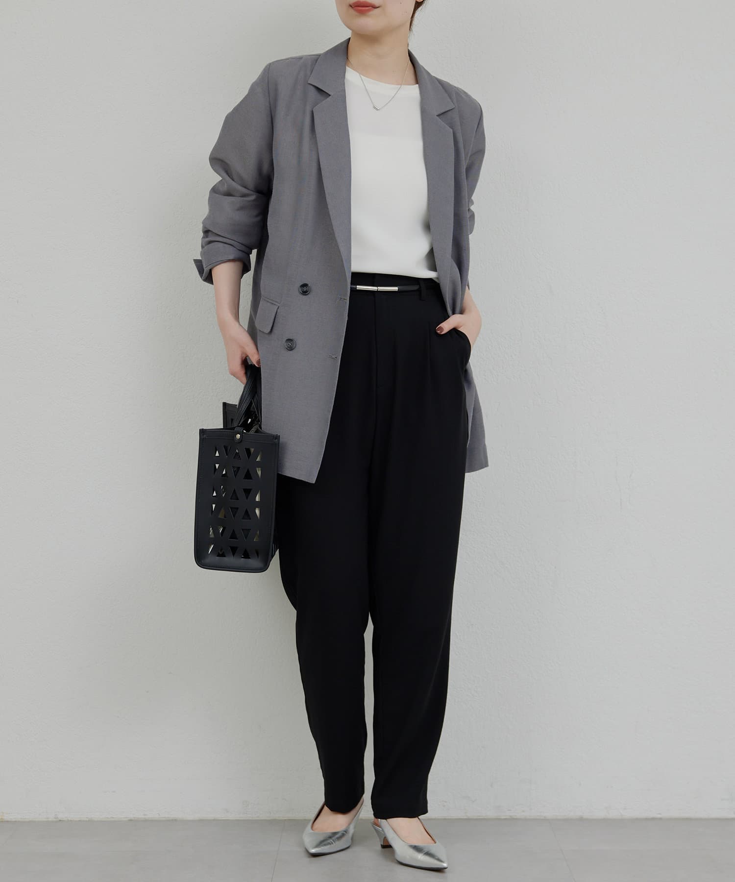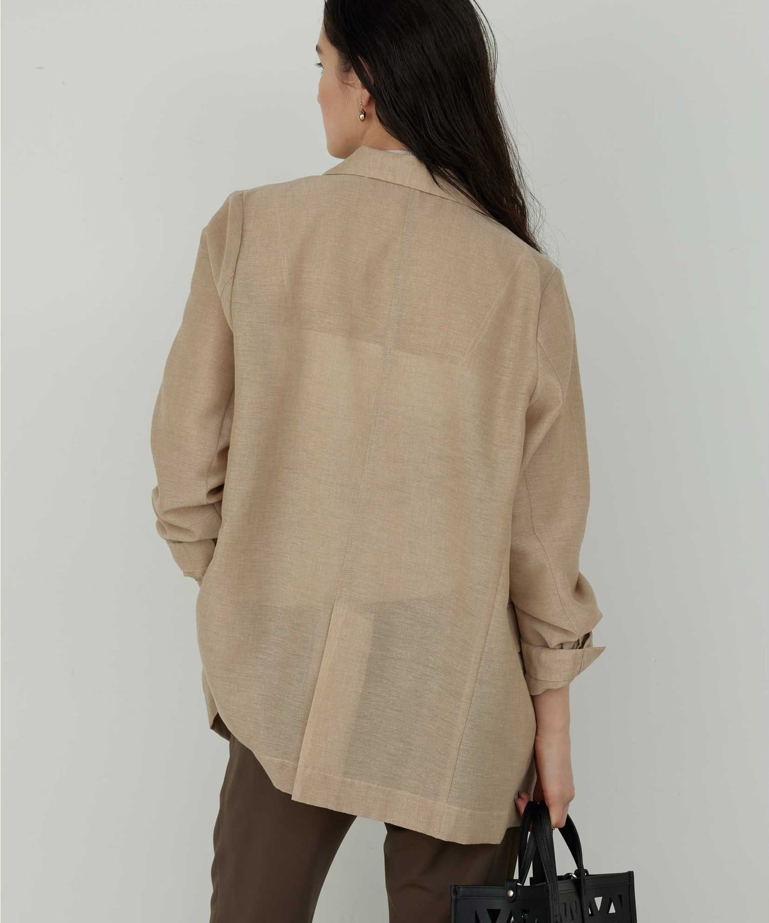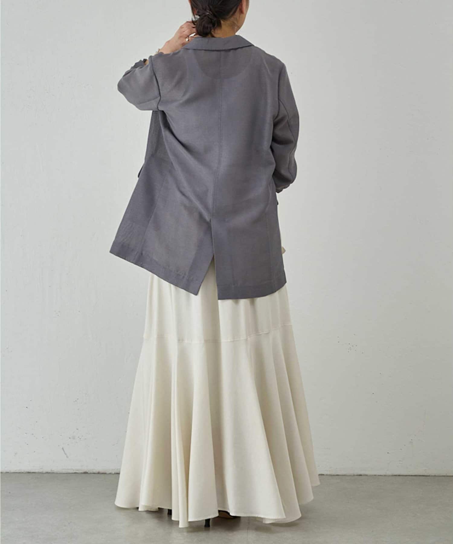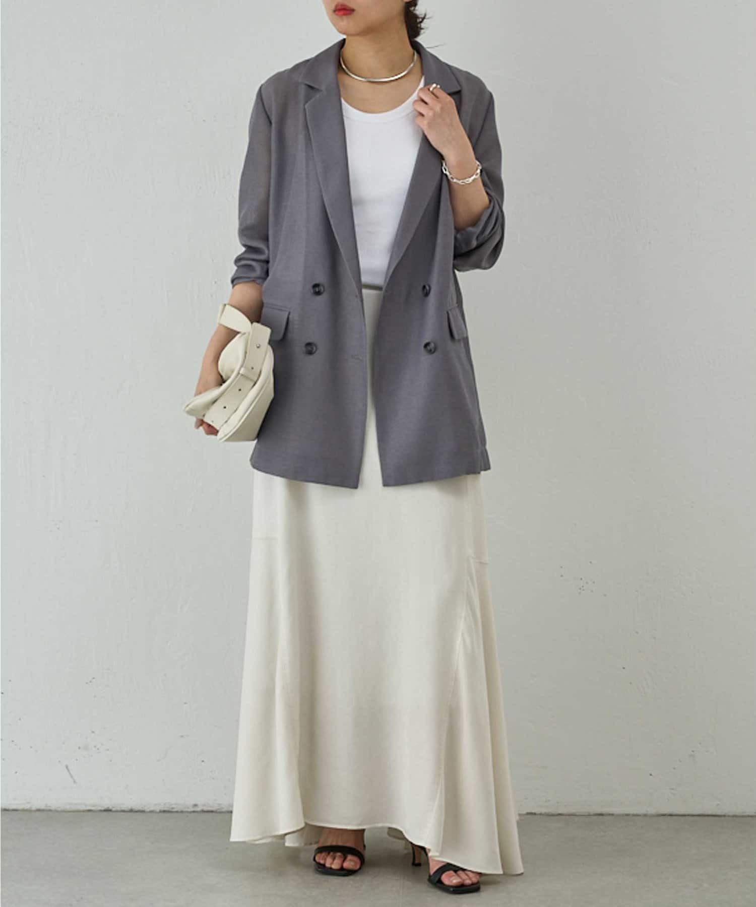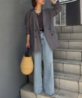 ●ダブルブレストでマニッシュな印象のシアージャケット。