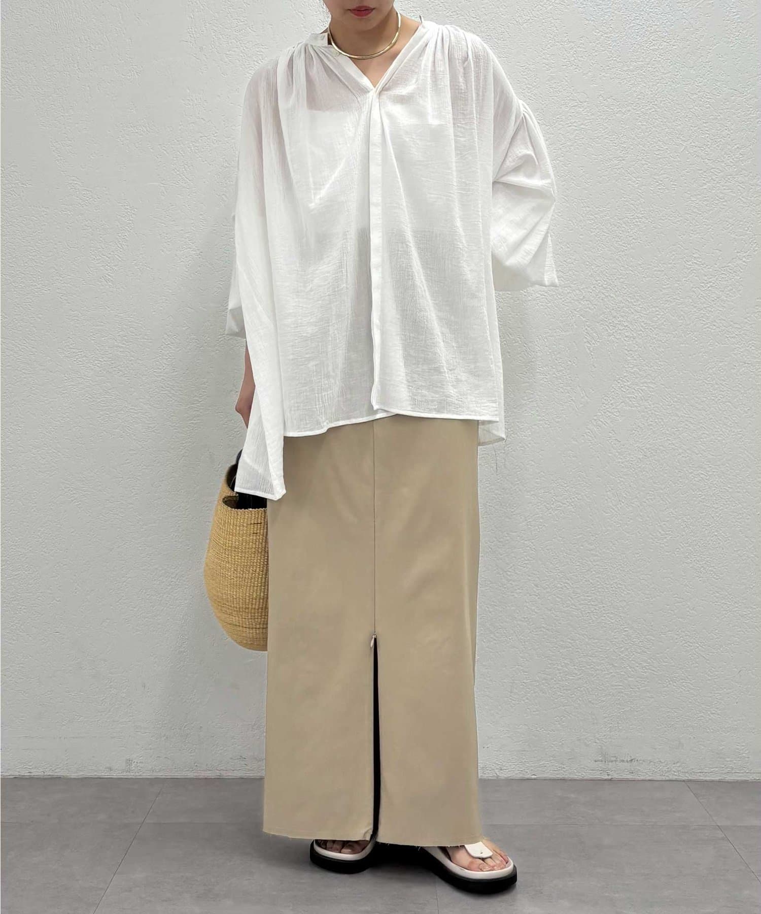 ※裾はカットオフデザインです。糸が出てきた場合は無理に引き抜いたりせず、目立たない長さにカットしていただいて大丈夫です。