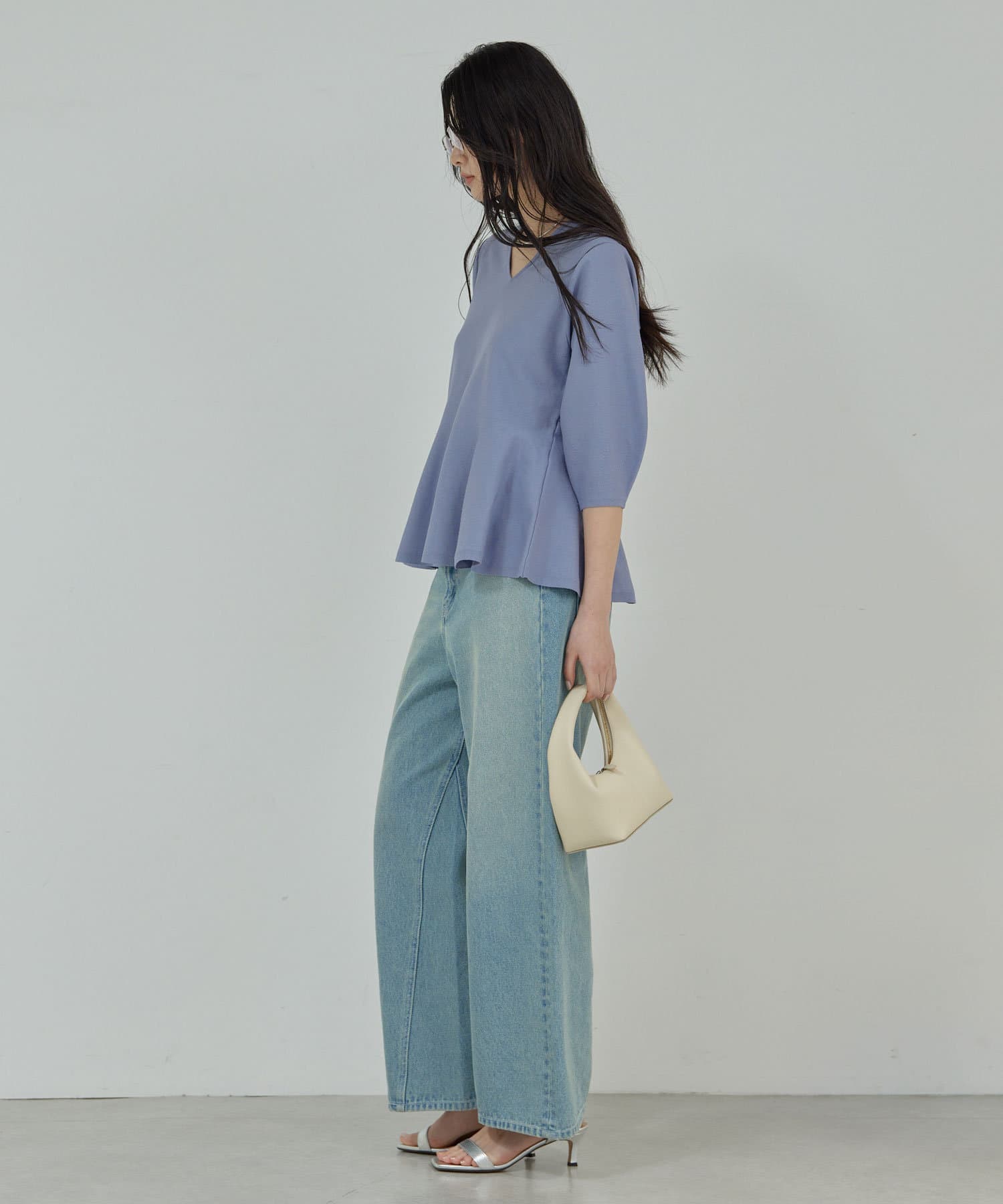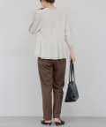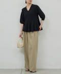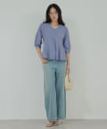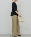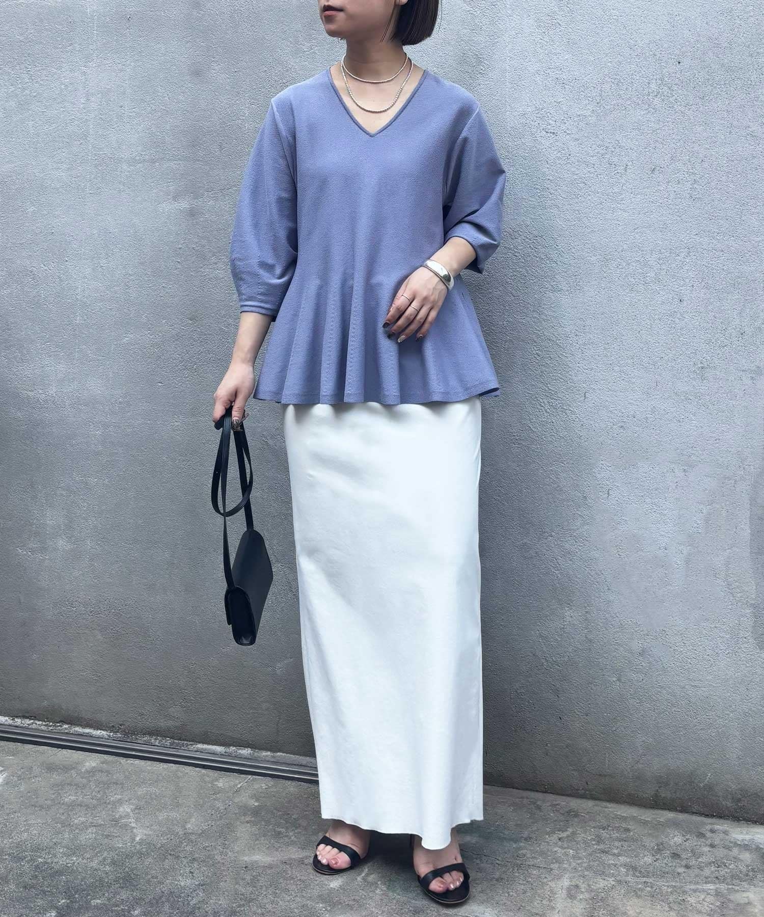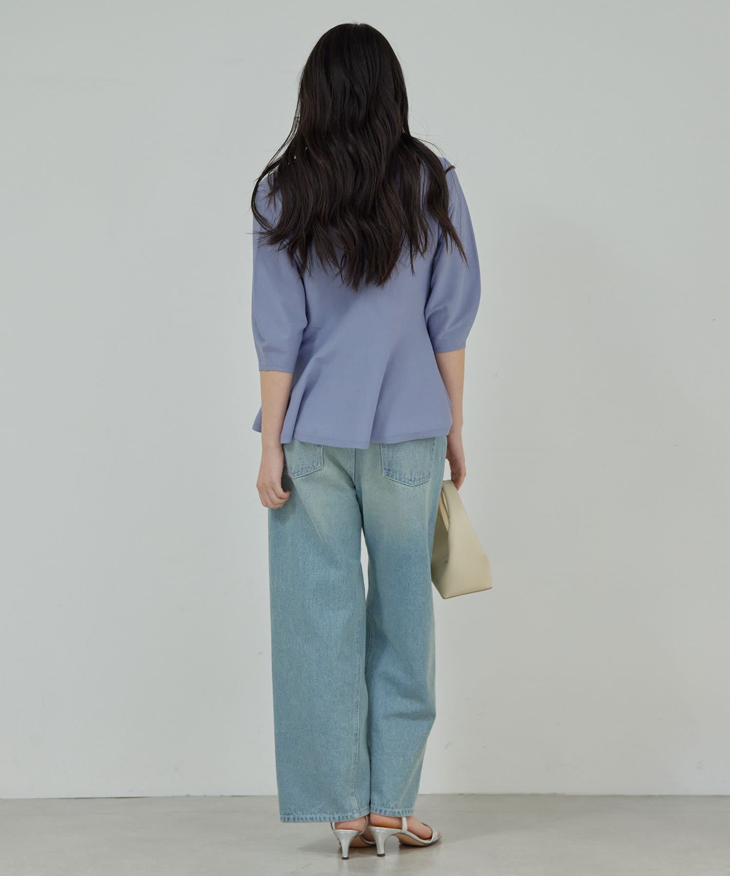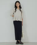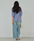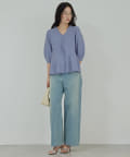 ●デニムやスラックス、Iラインシルエットスカートなどシンプルなボトムと合わせるのがおすすめ。
