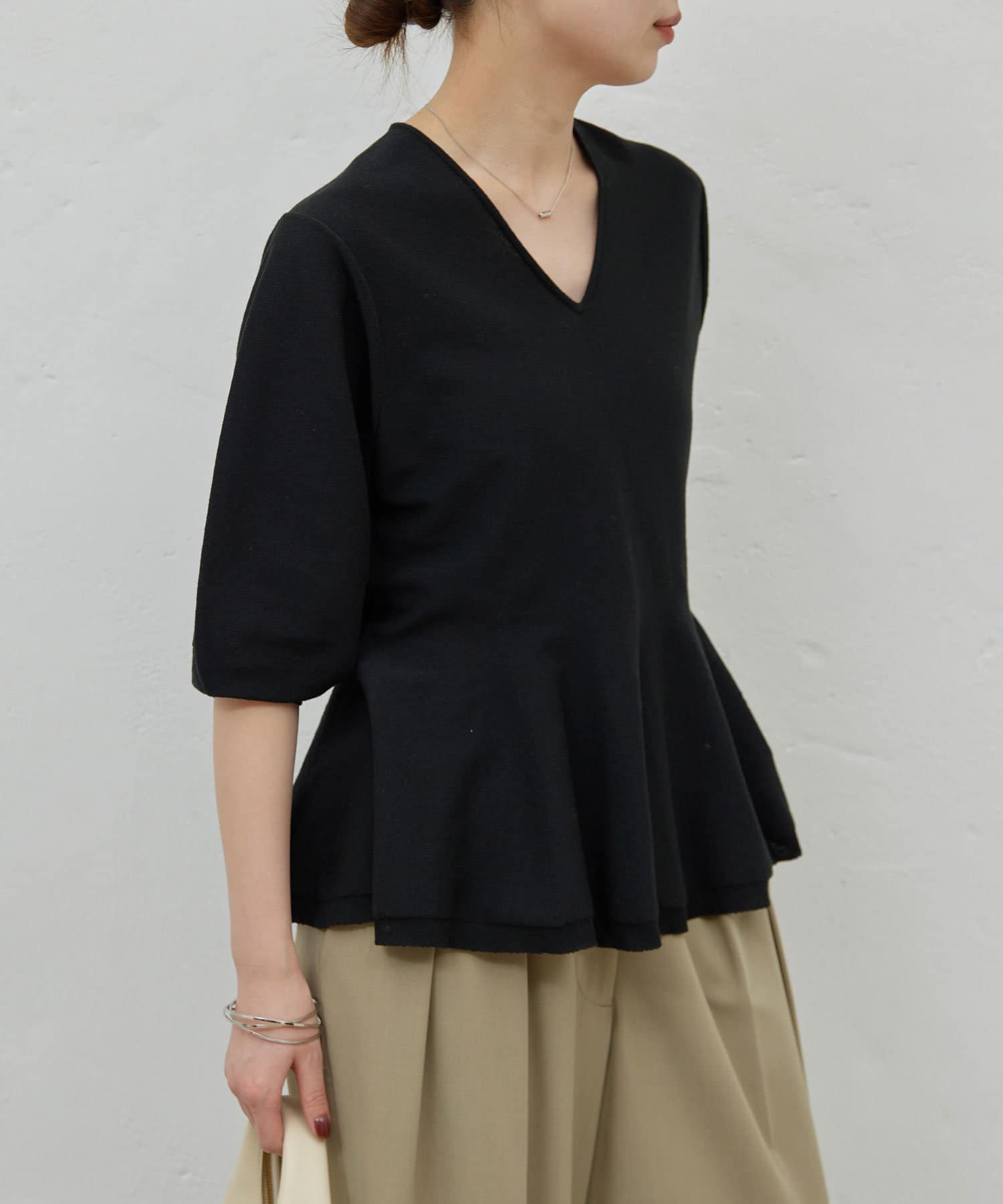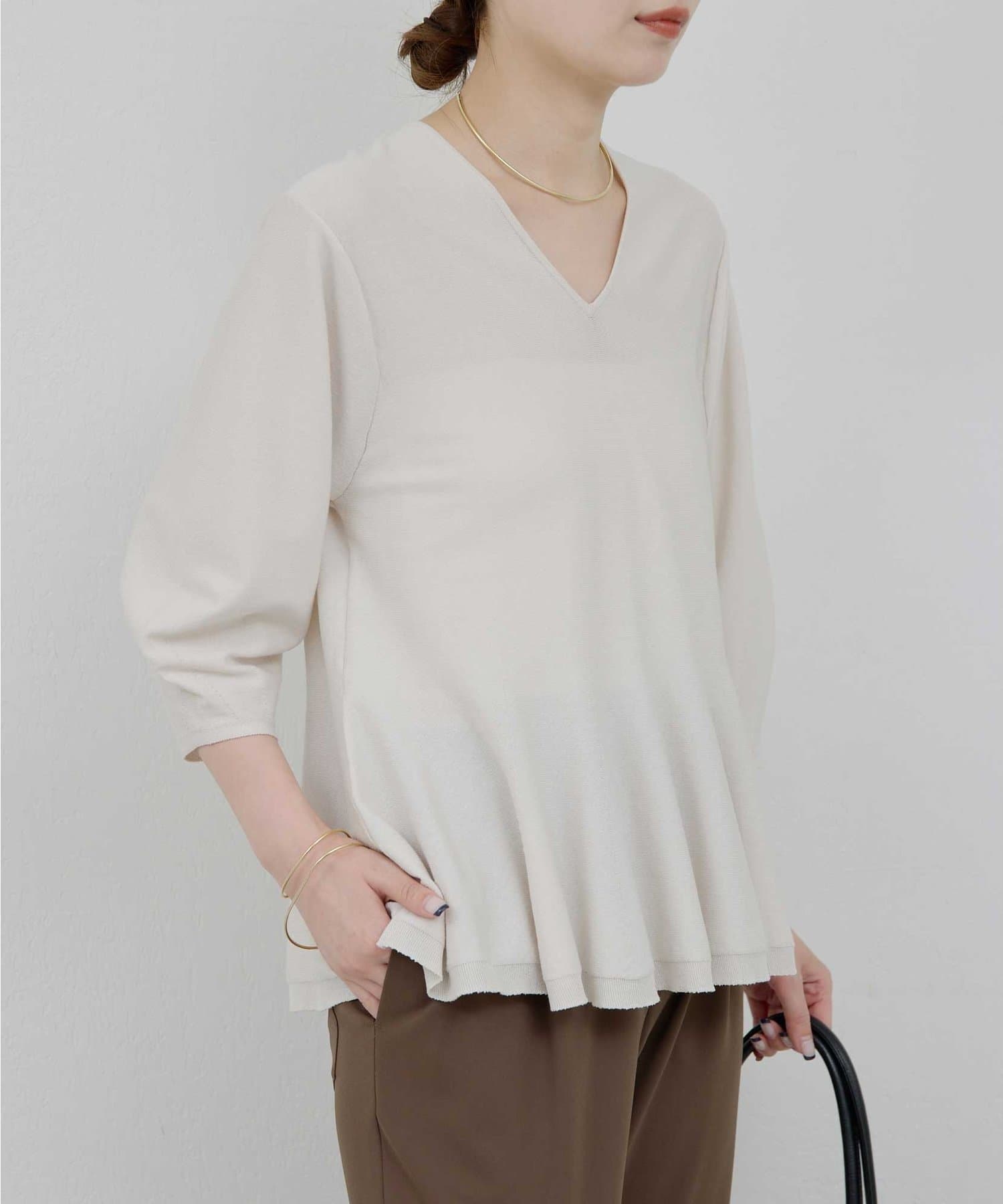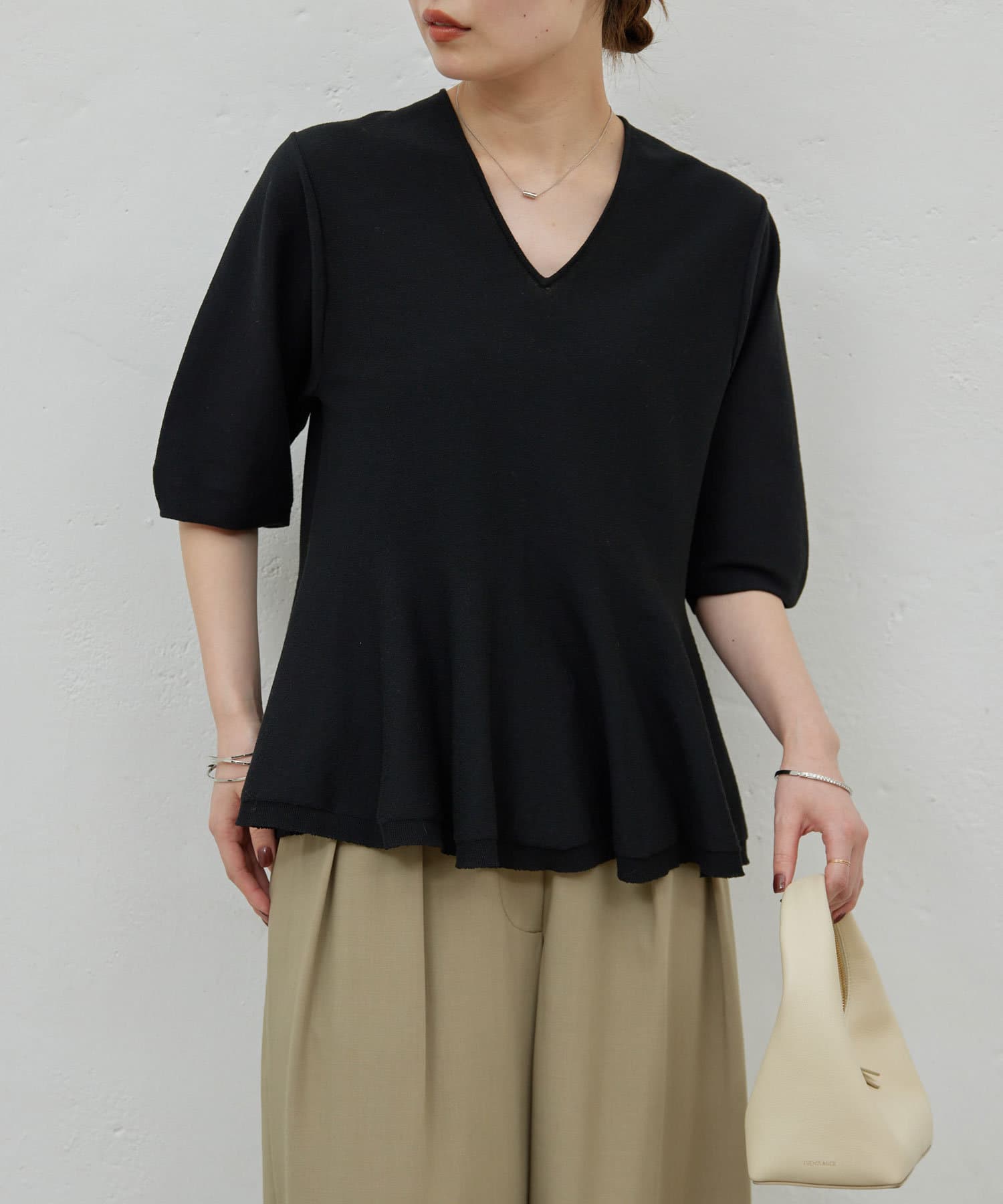 ●顔まわりを綺麗に見せる程よい開きのVネック。