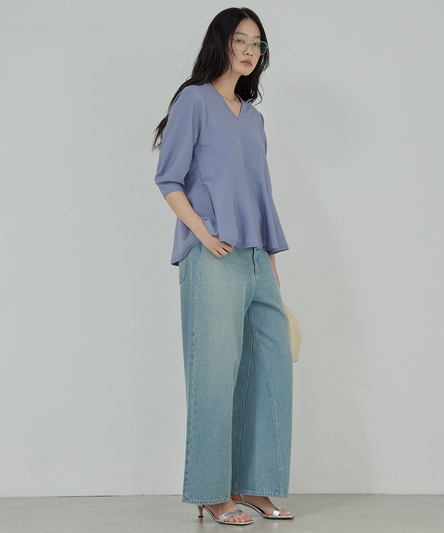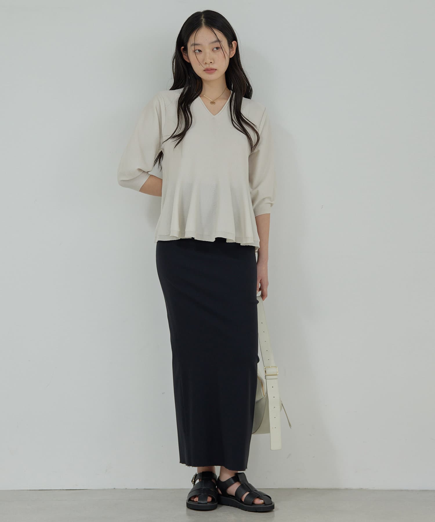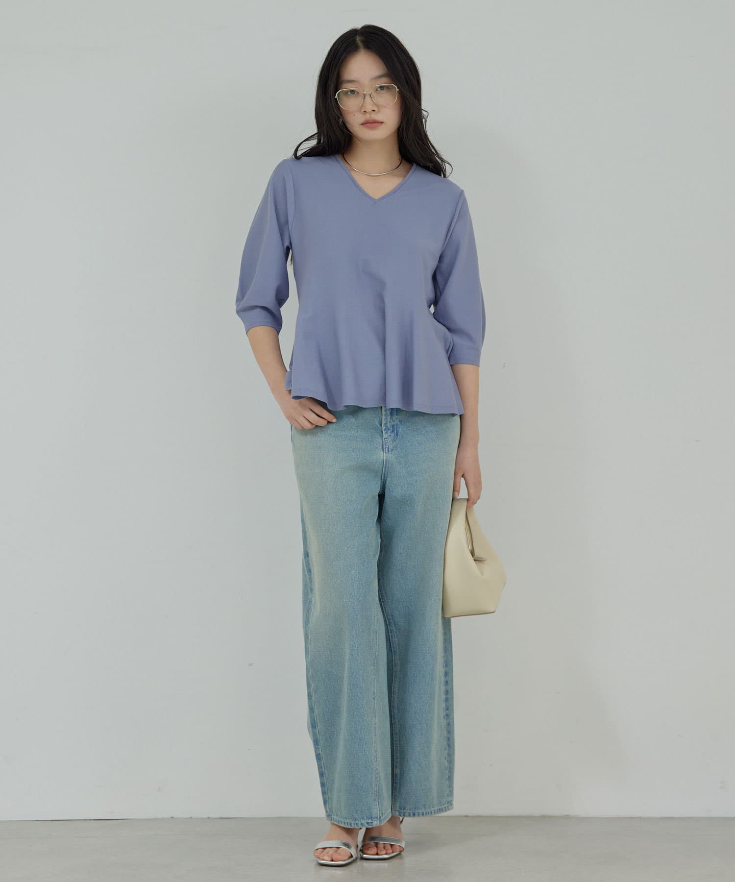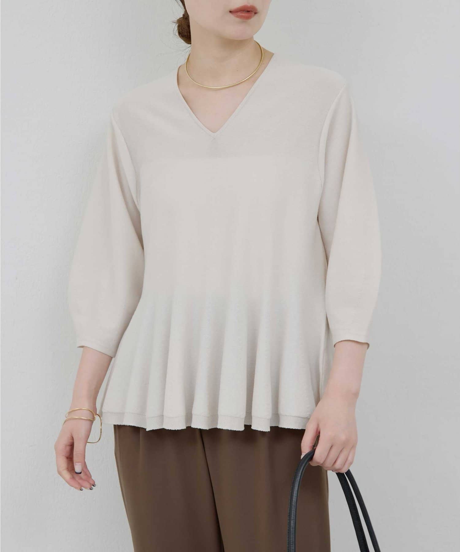 ●顔まわりを綺麗に見せる程よい開きのVネック。