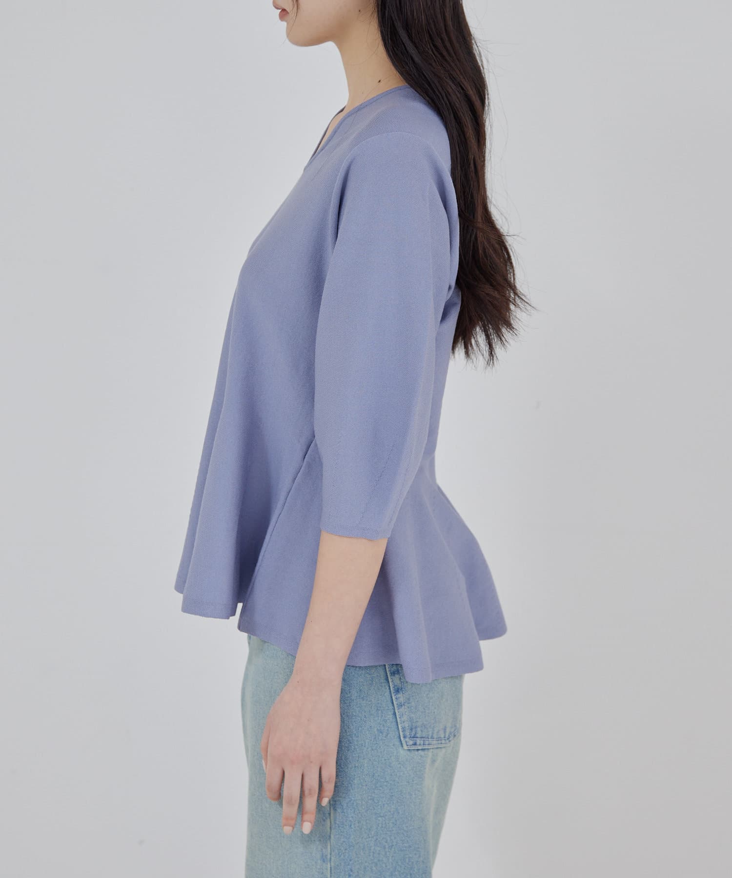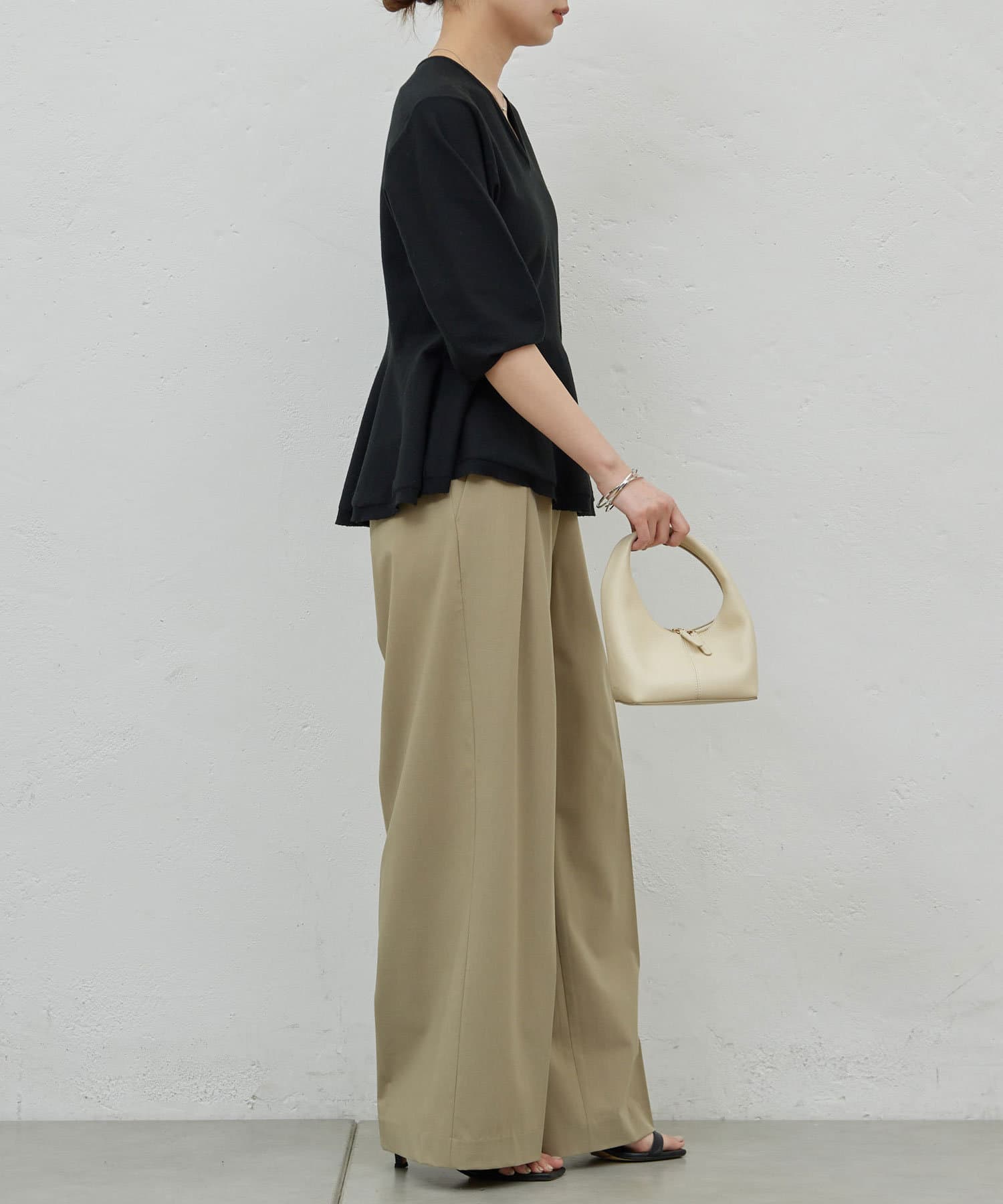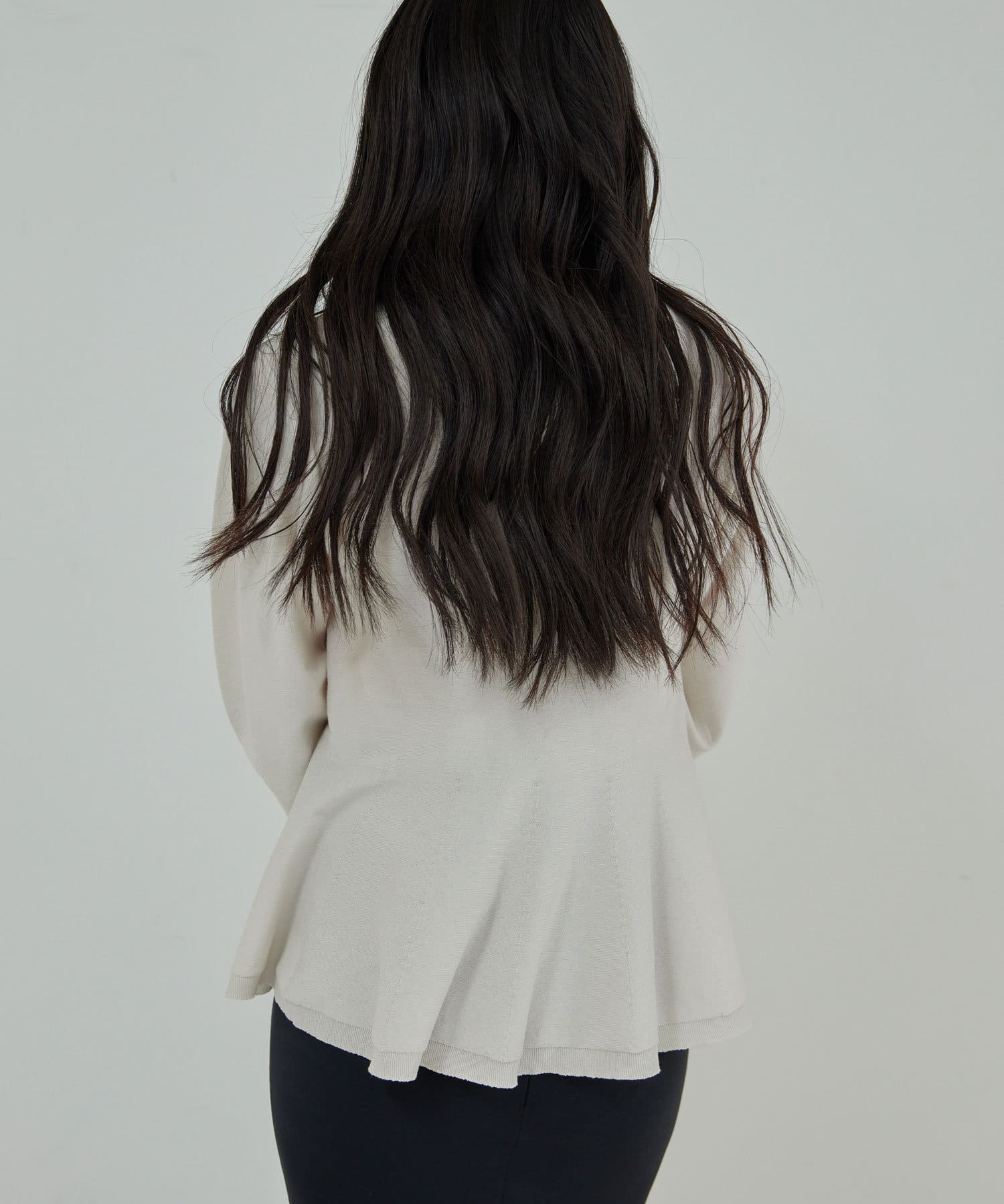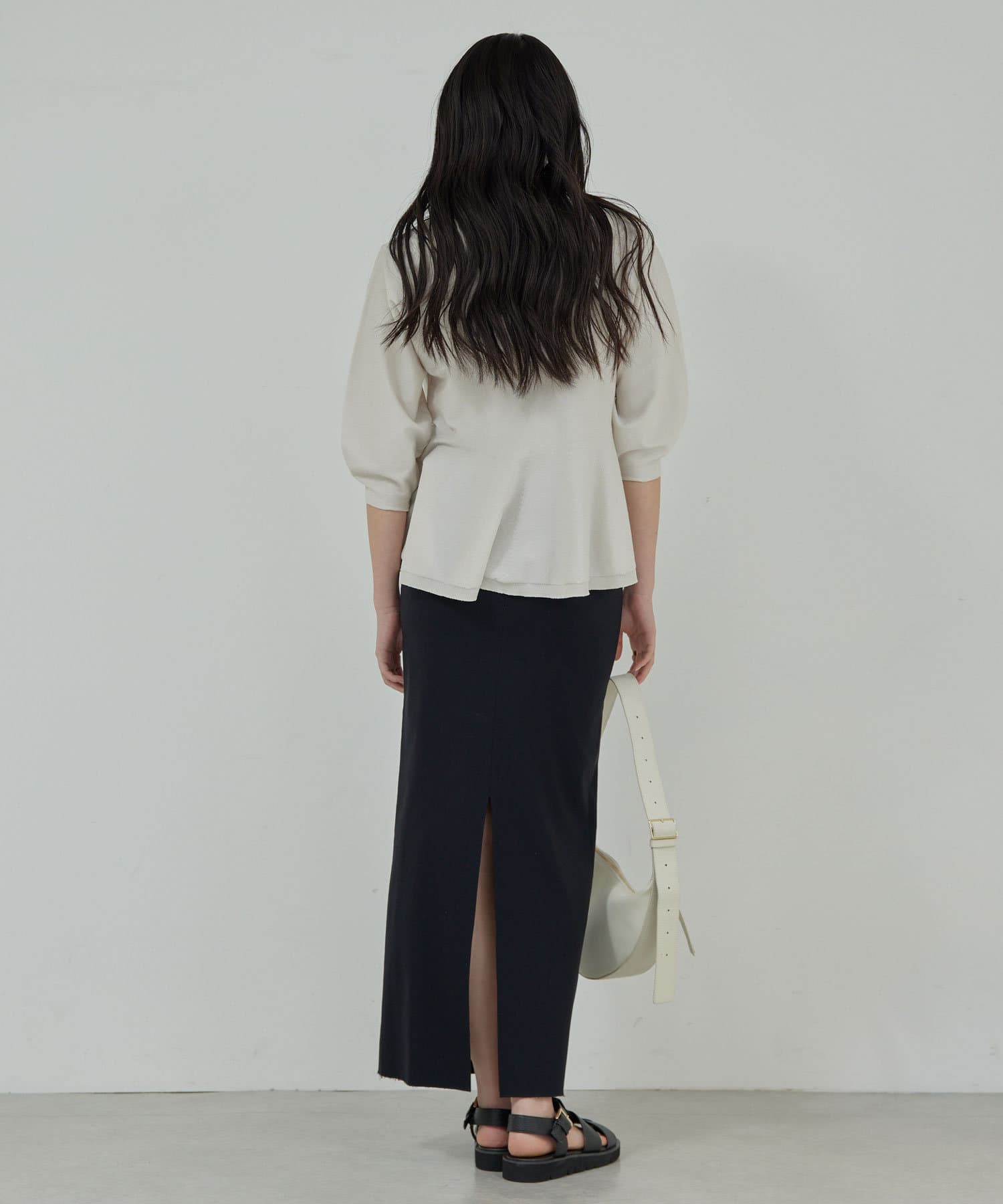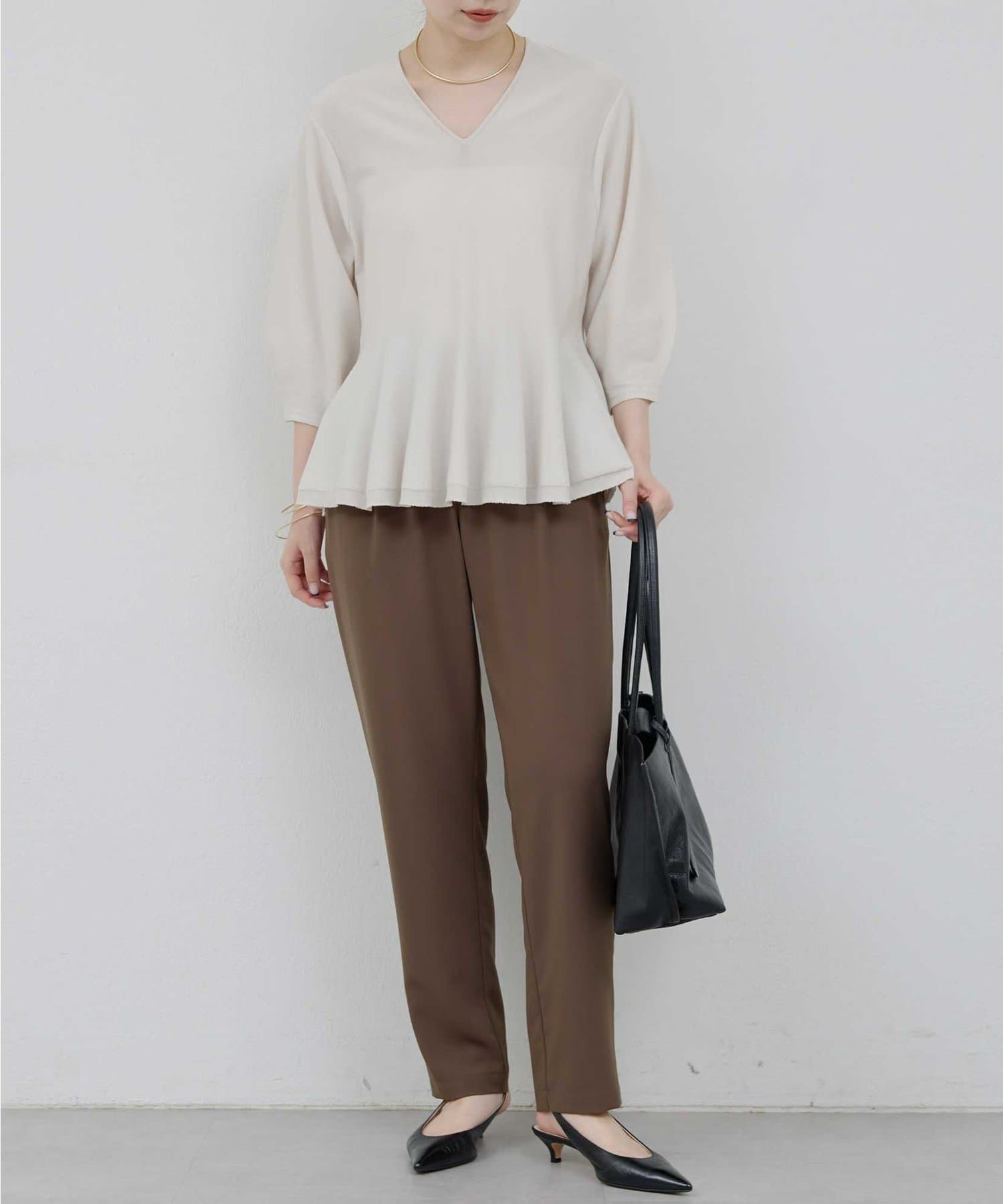 ●着やせ効果も期待できるメリハリのあるペプラムデザイン。