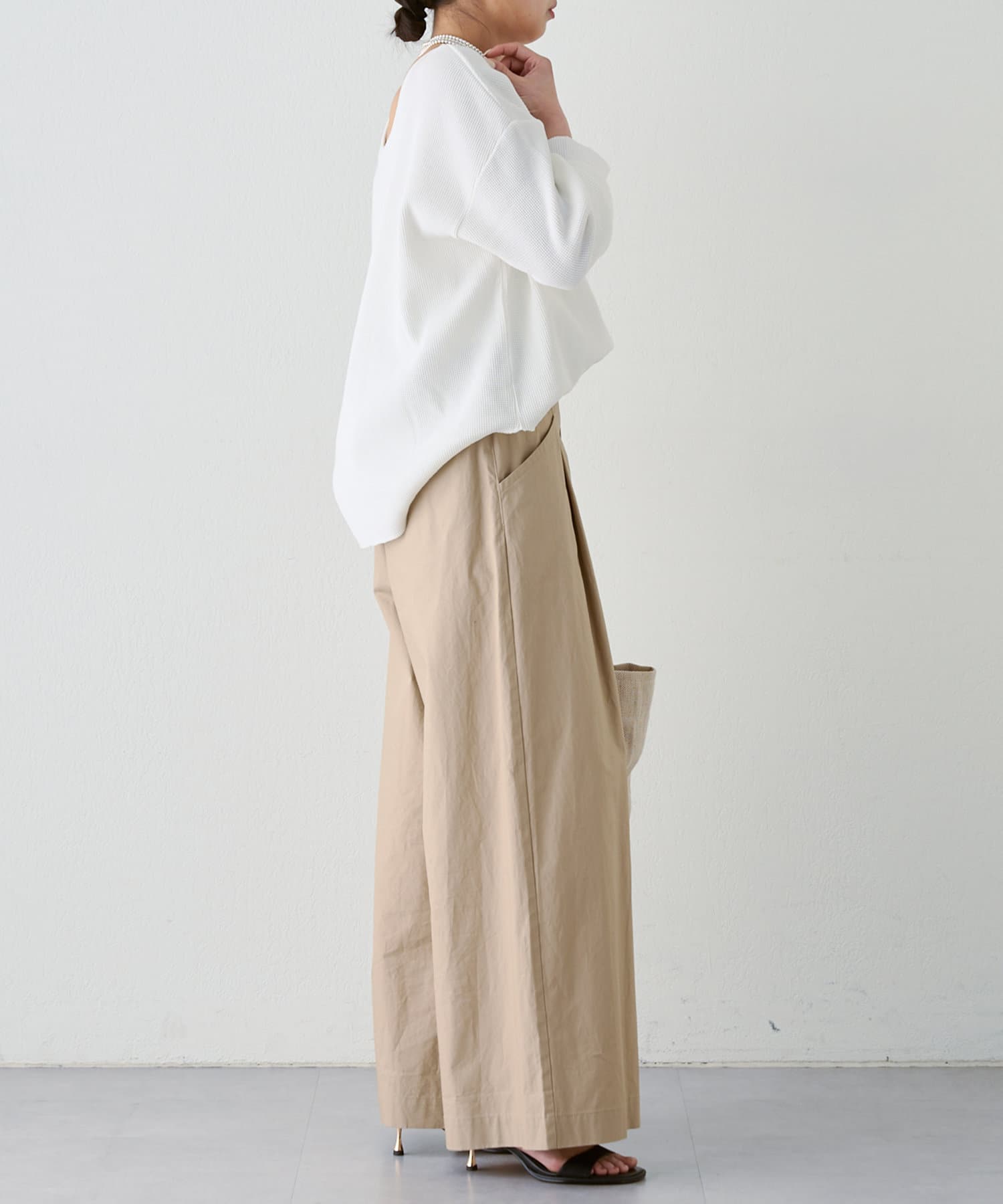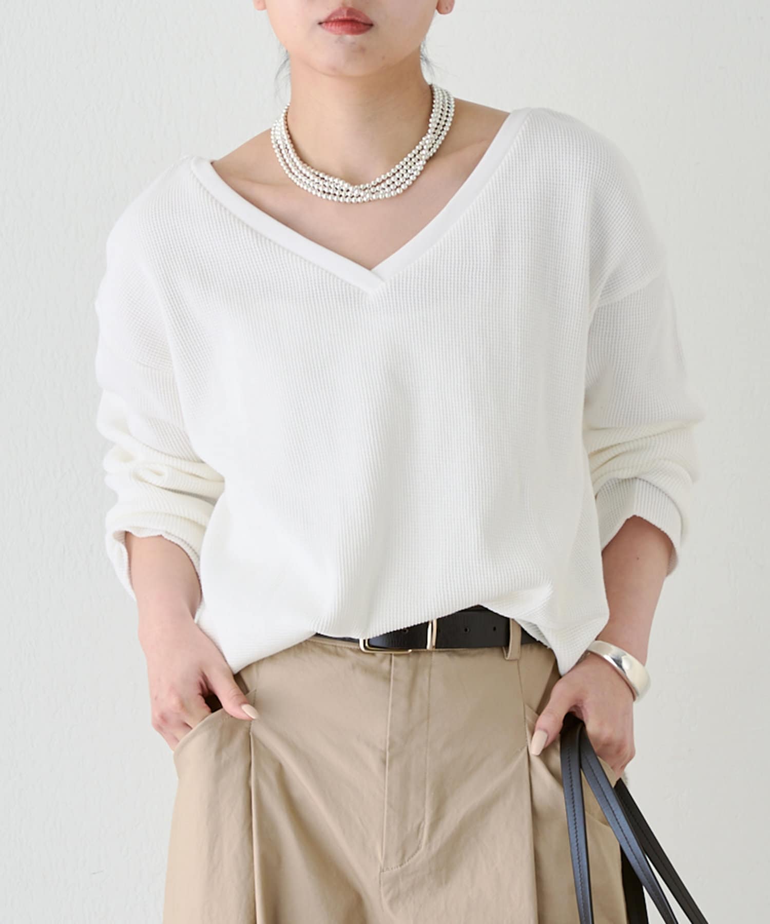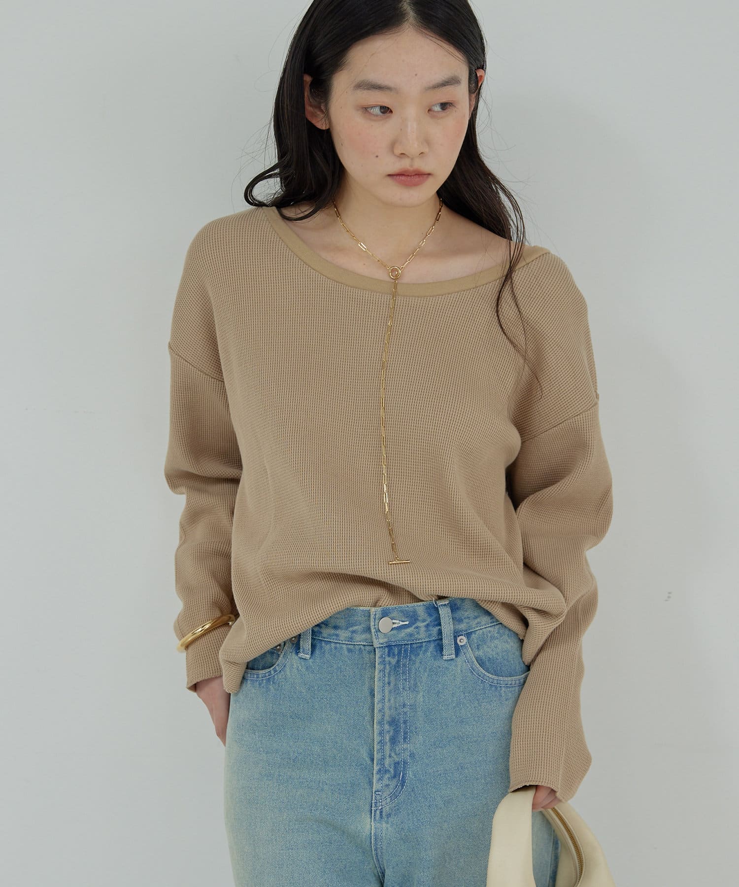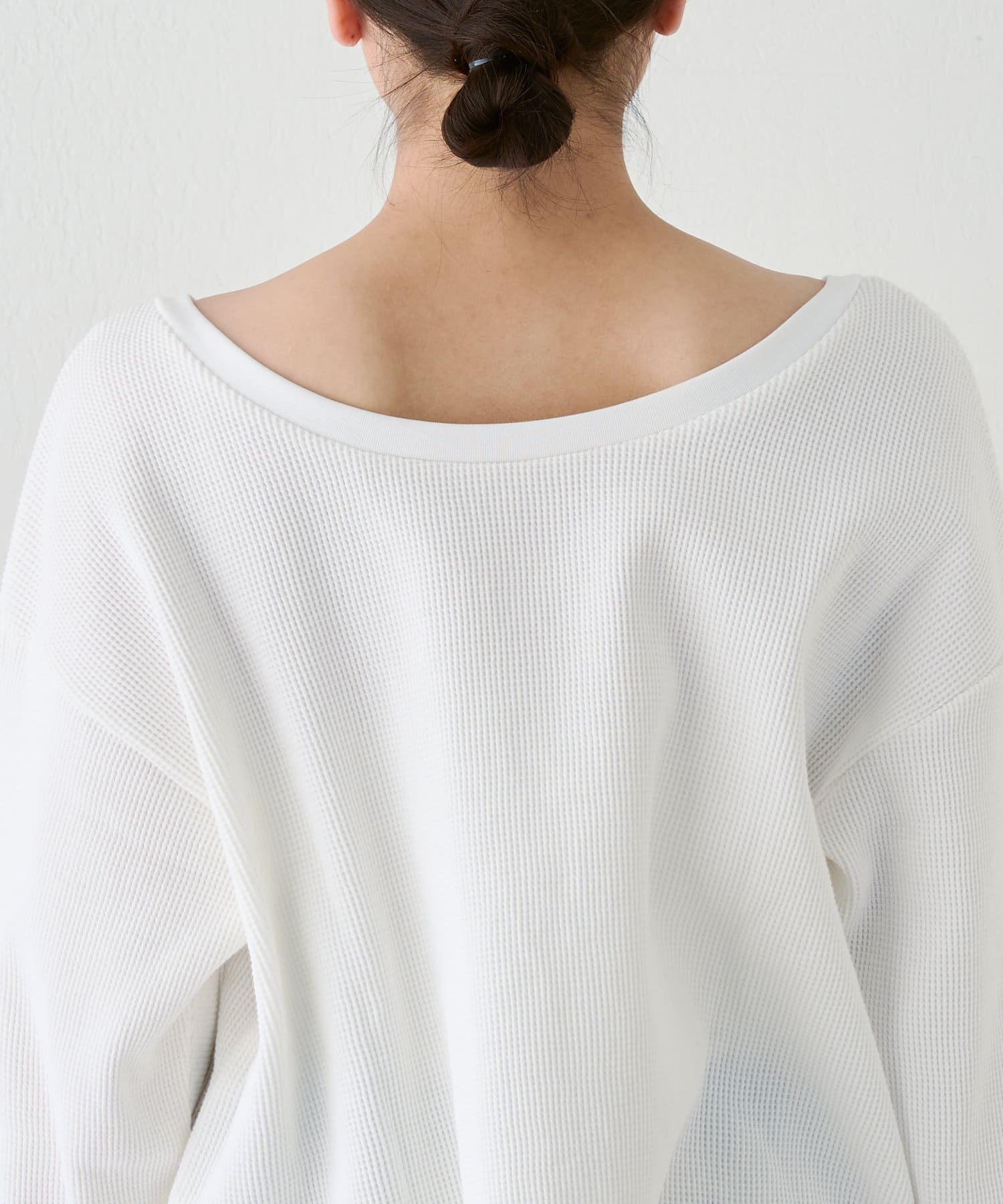 ●広めのネックデザインが女性らしい抜け感をプラス。