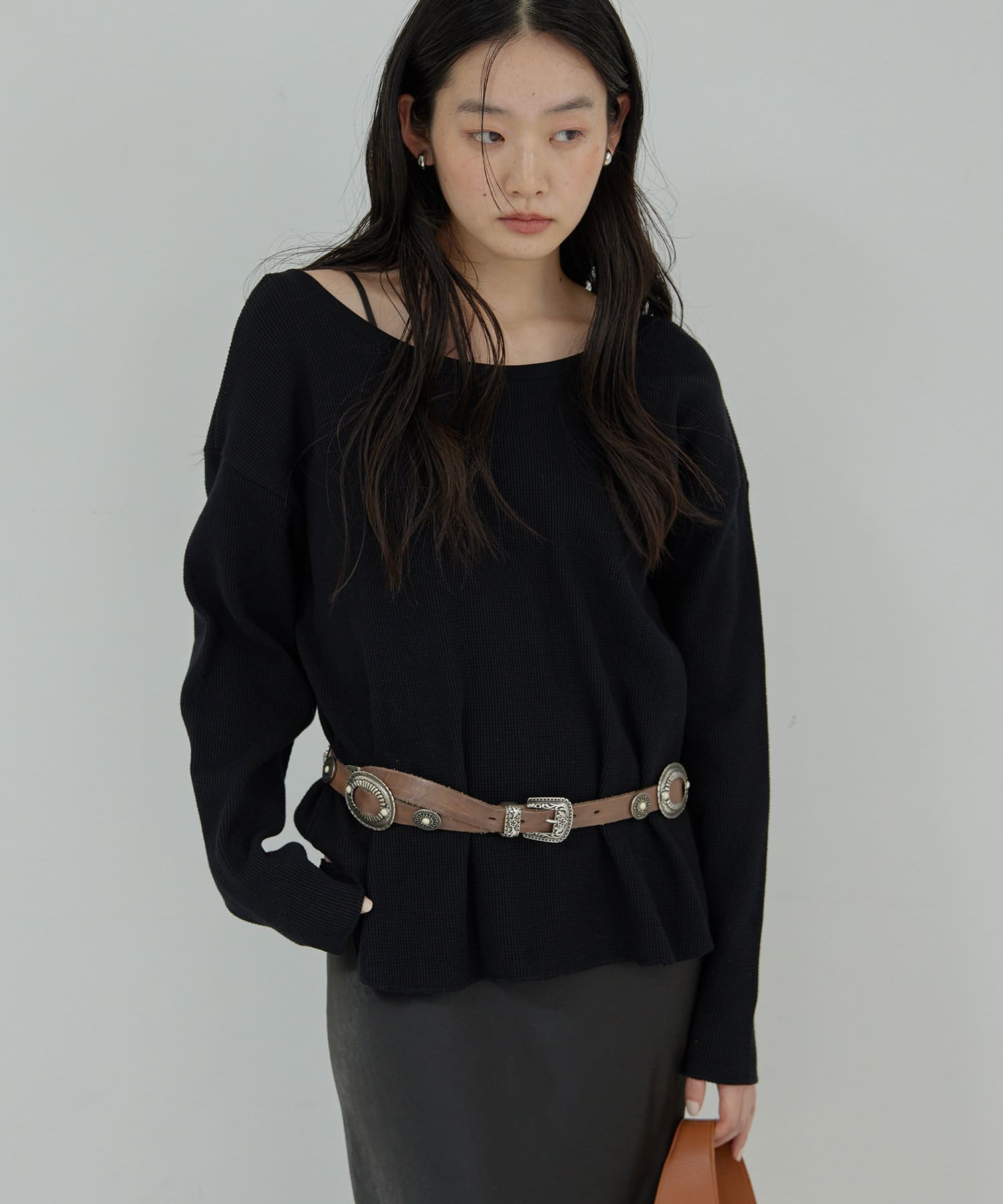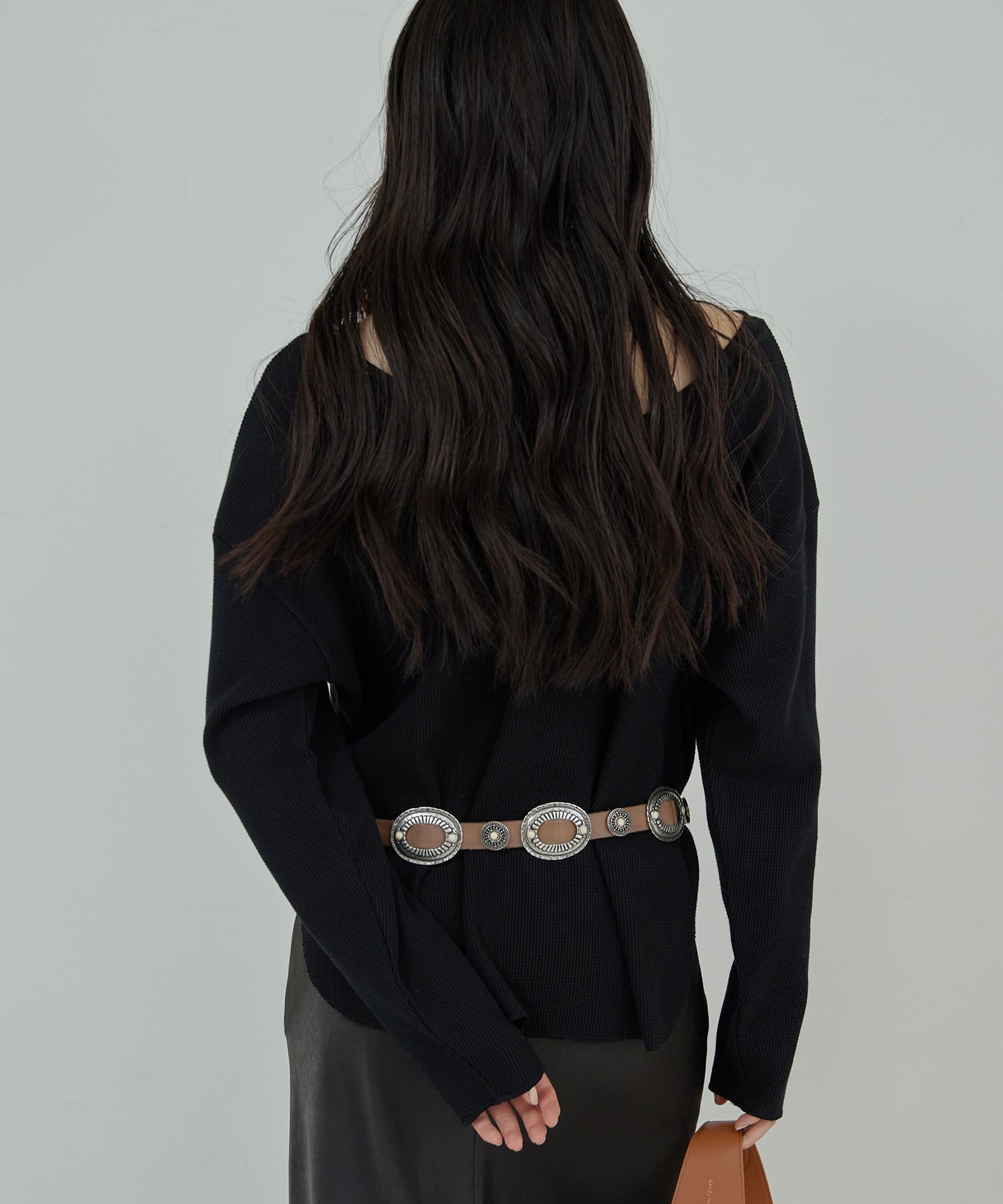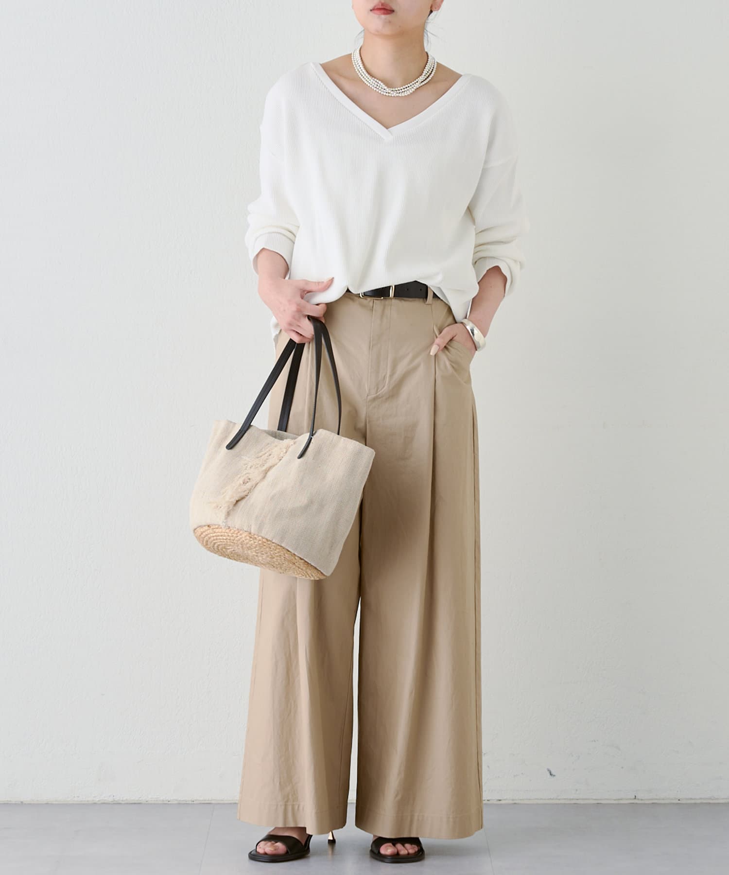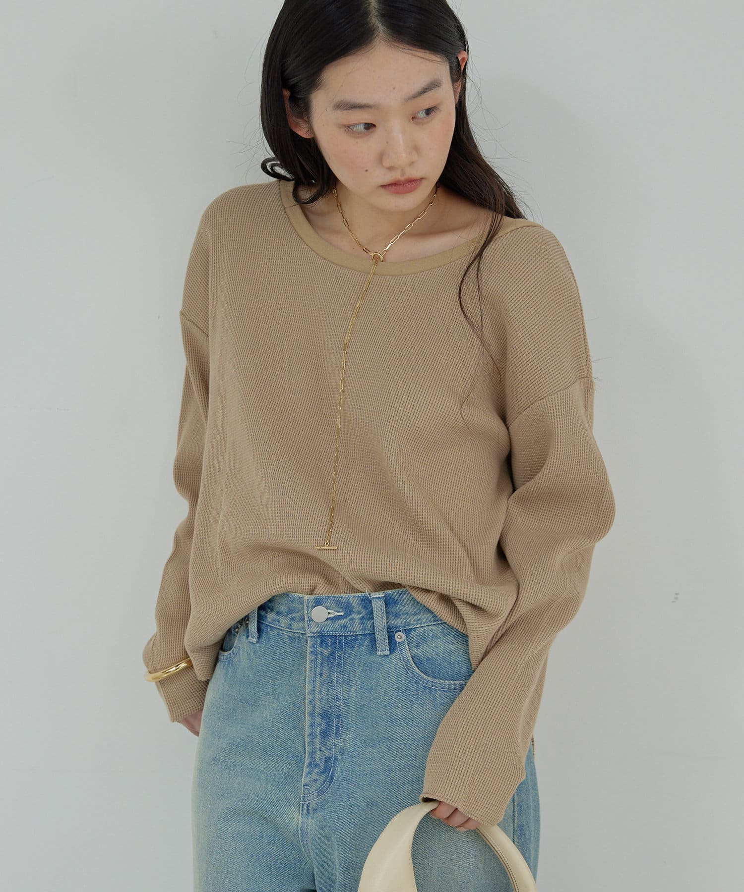 ●広めのネックデザインが女性らしい抜け感をプラス。