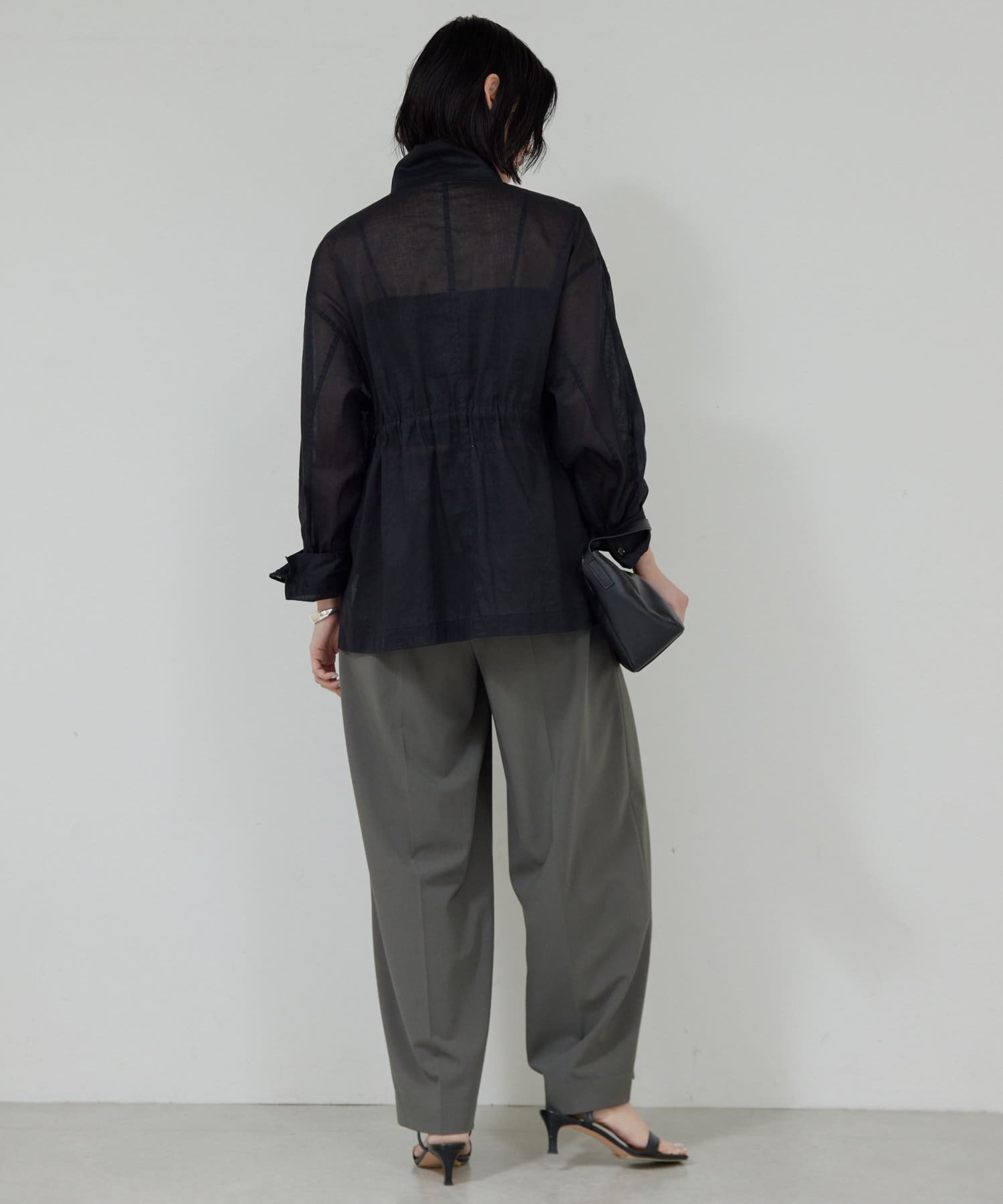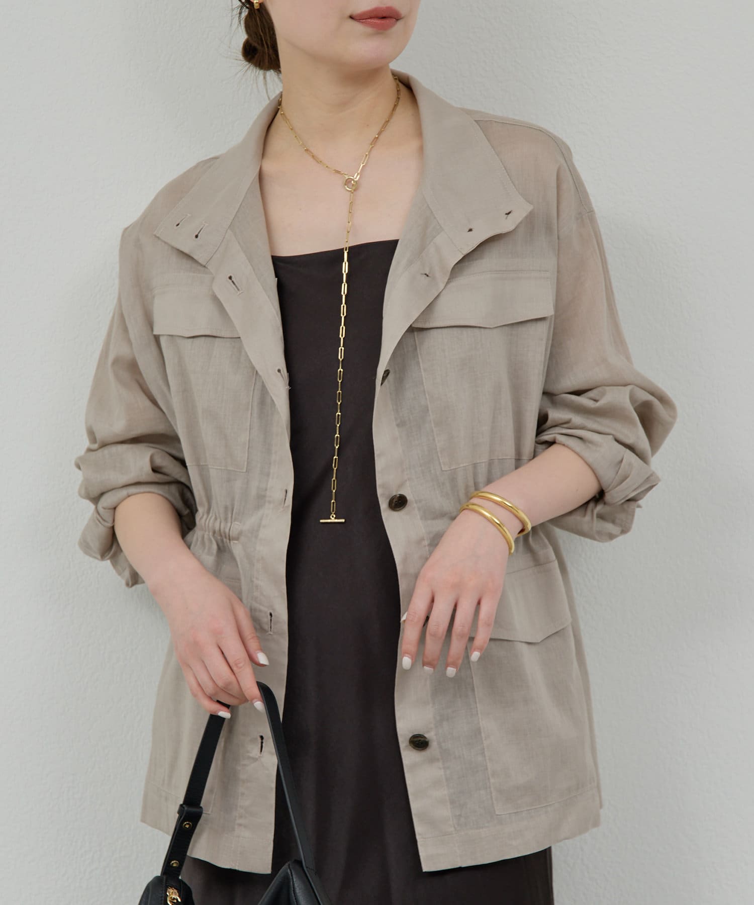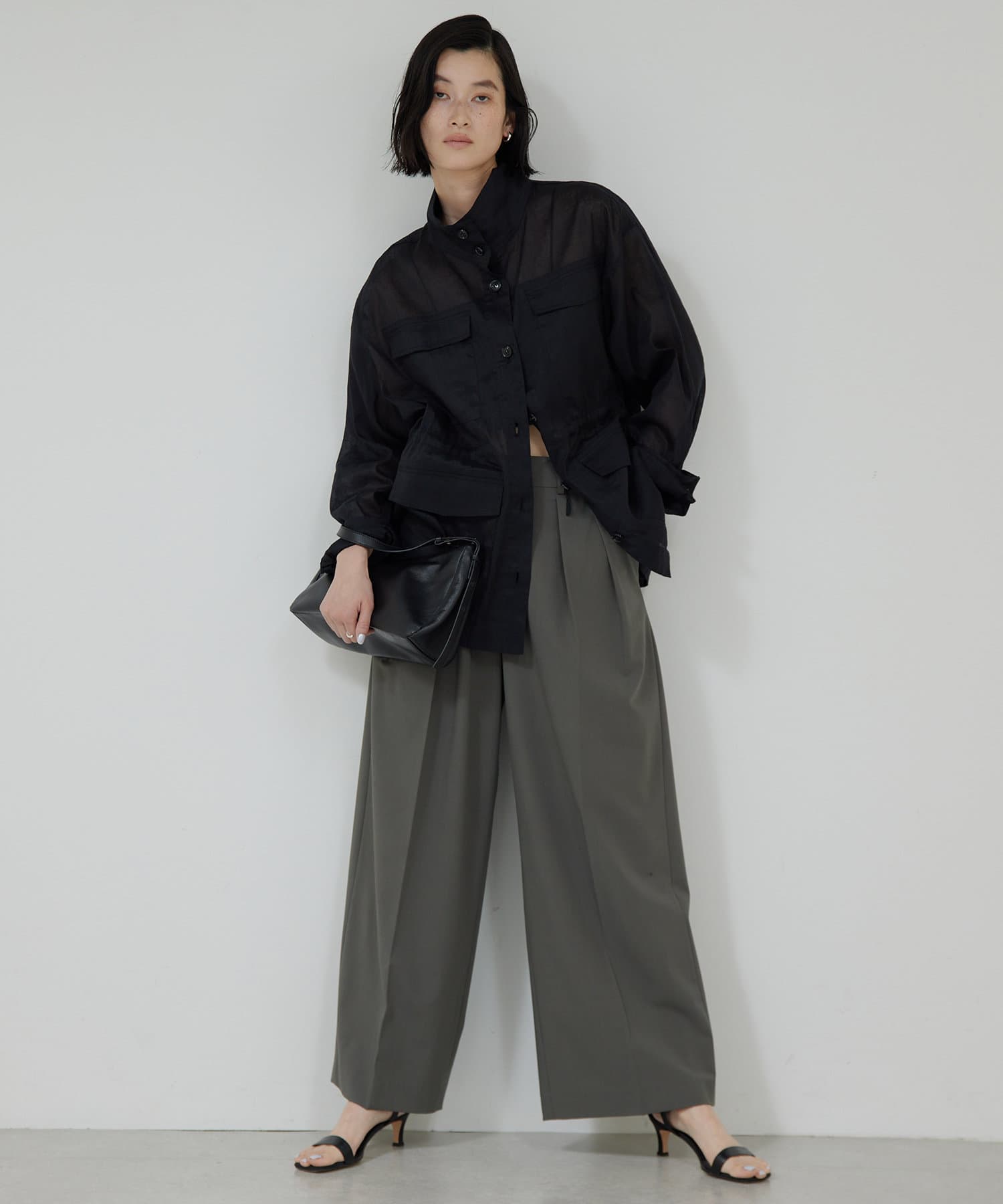 ●スタンドネックでモードに、シャツ襟でカジュアルにも。スタイリングの幅が広がる1枚。